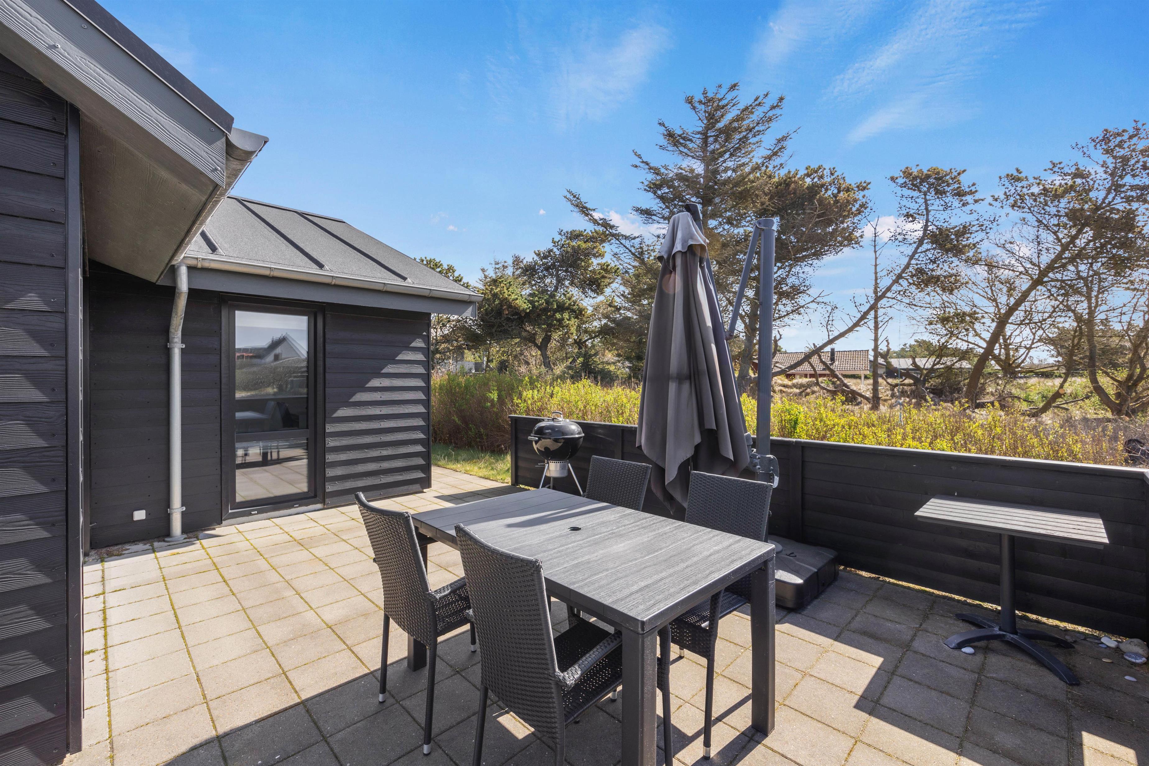 Sommerhuset ligger kun 400 meter fra havet, så selv om I vælger at tilbringe dagen med at dase på solsengene på den store solterrasse, kan I stadig nyde duften af hav og lyden af bølgebrus.