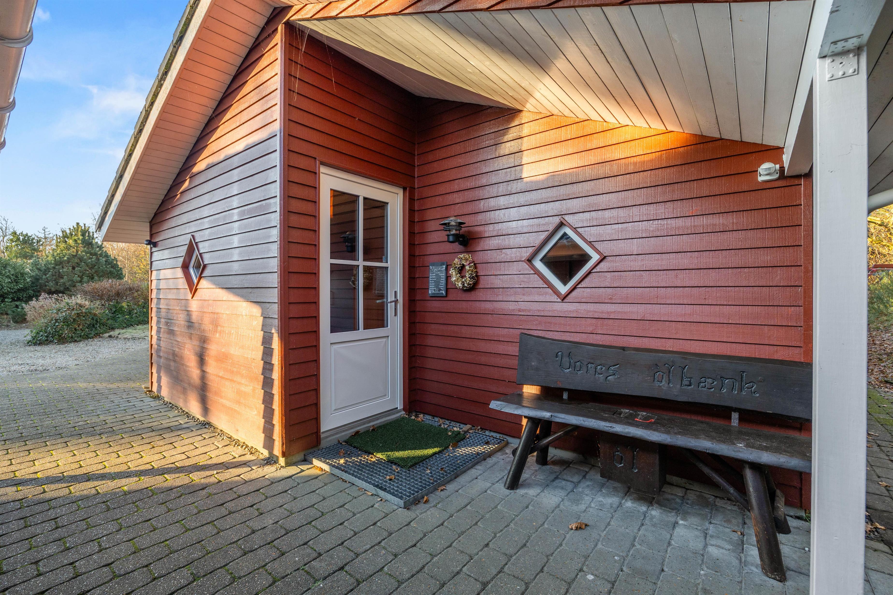 Den åbne og overdækkede terrasse skaber et ideelt sted til at nyde morgenkaffen eller lange sommermiddage i den friske luft. Den omkringliggende naturgrund indbyder til leg og afslapning, perfekt for både voksne, børn og jeres firbenede ven.