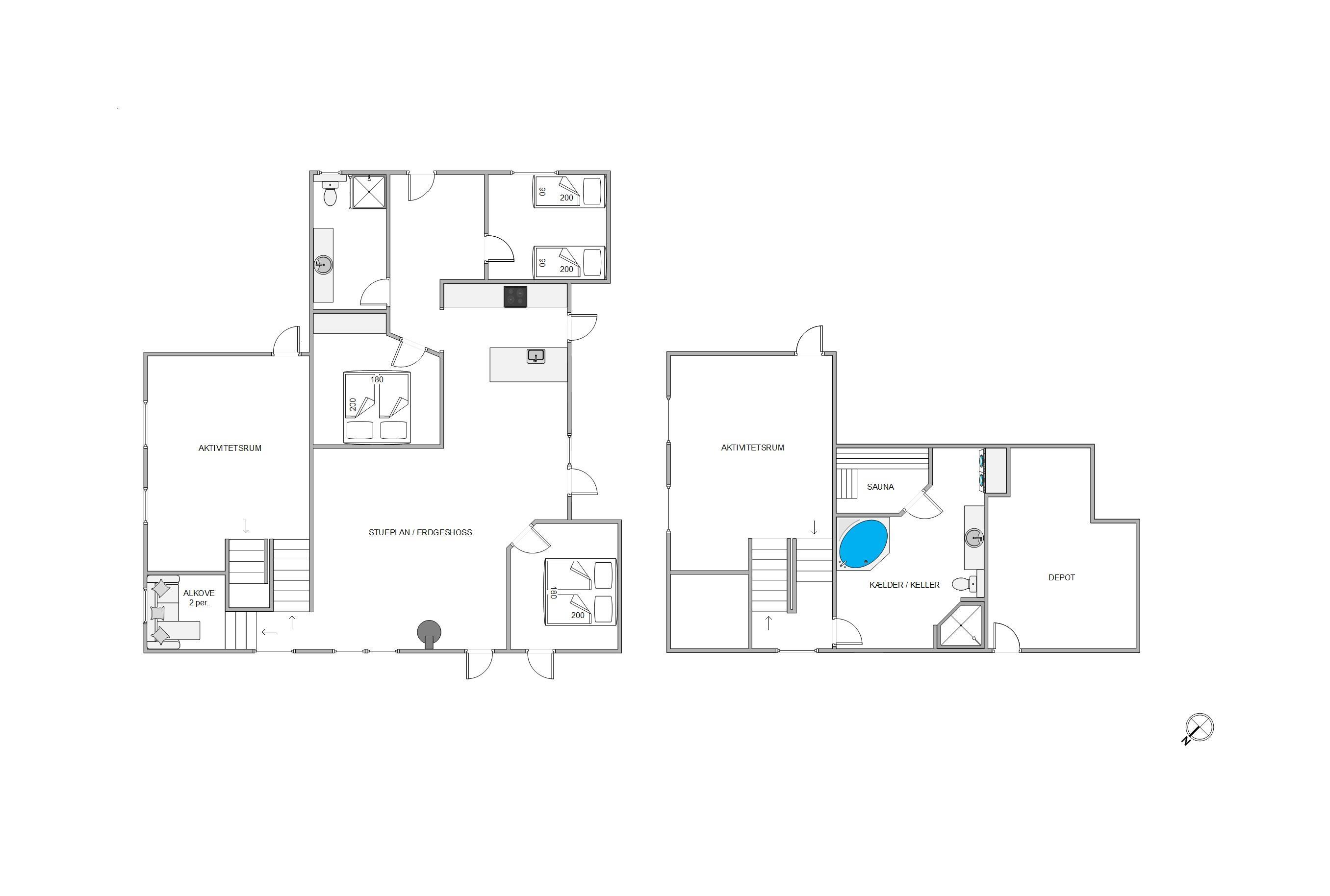 Sommerhuset har 3 rummelige soveværelser, med sovepladser til op til 8 personer. Seks af sovepladserne er reelle sengepladser, mens de 2 sidste er komfortable sovepladser på en udtrækssovesofa, der egner sig bedst til børn. Sommerhusets 2 badeværelser har indlagt gulvvarme. Det større badeværelse byder en luksuriøs tømmespa samt en skøn sauna, der giver jer mulighed for fuldstændig afslapning efter en dag fyldt med aktiviteter ved Vestkysten.