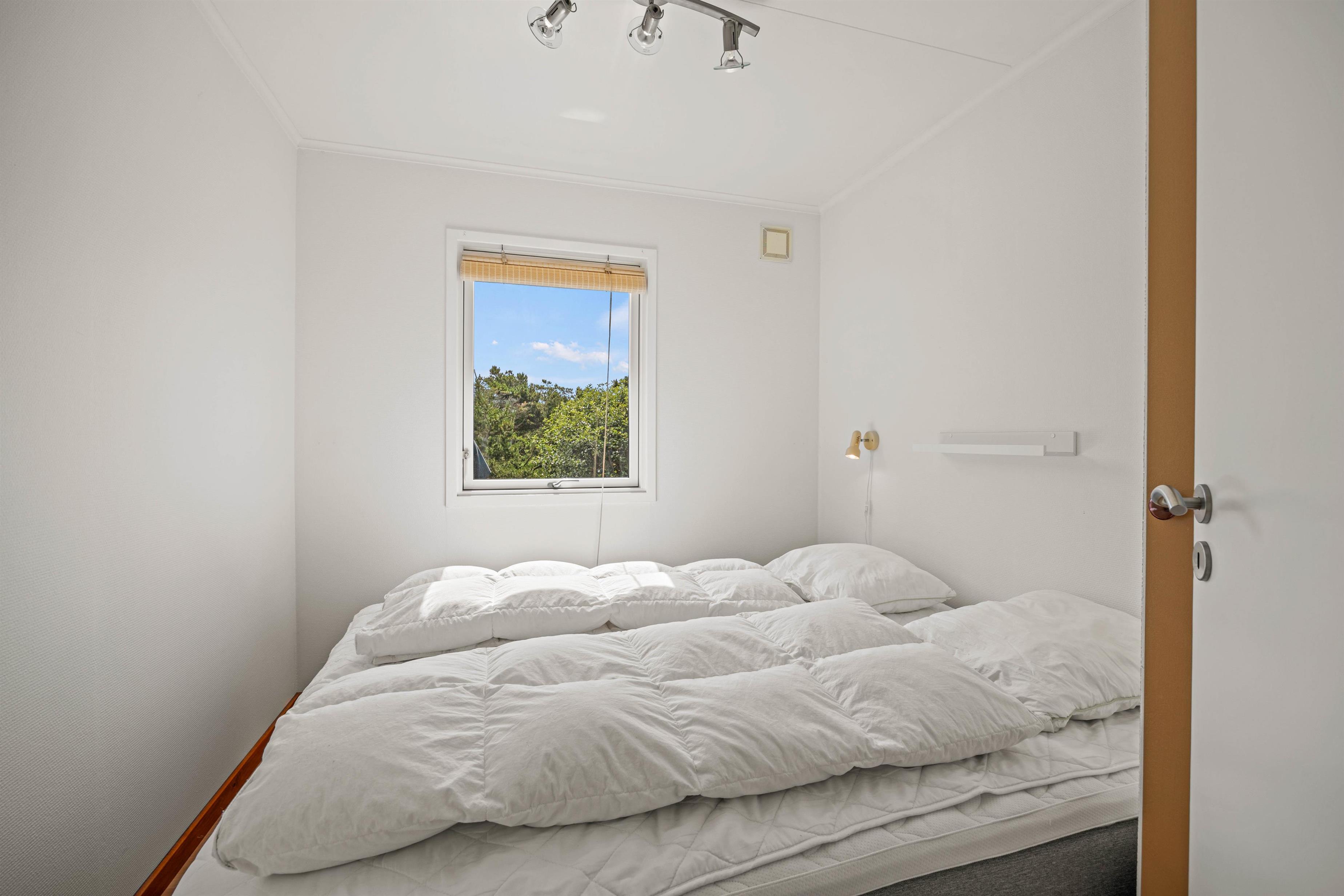 Med plads til op til 4 personer og 2 husdyr er dette hyggelige sommerhus perfekt for en lille familie eller et par, der ønsker at nyde afslappende dage i Henne Strand. Sommerhuset råder over to separate soveværelser; ét med en komfortabel dobbeltseng og det andet med 2 enkeltsenge. Badeværelsets gulvvarme sikrer, at I altid kan starte dagen på bedste vis. Den installerede luft til luft varmepumpe sørger for en behagelig temperatur året rundt.