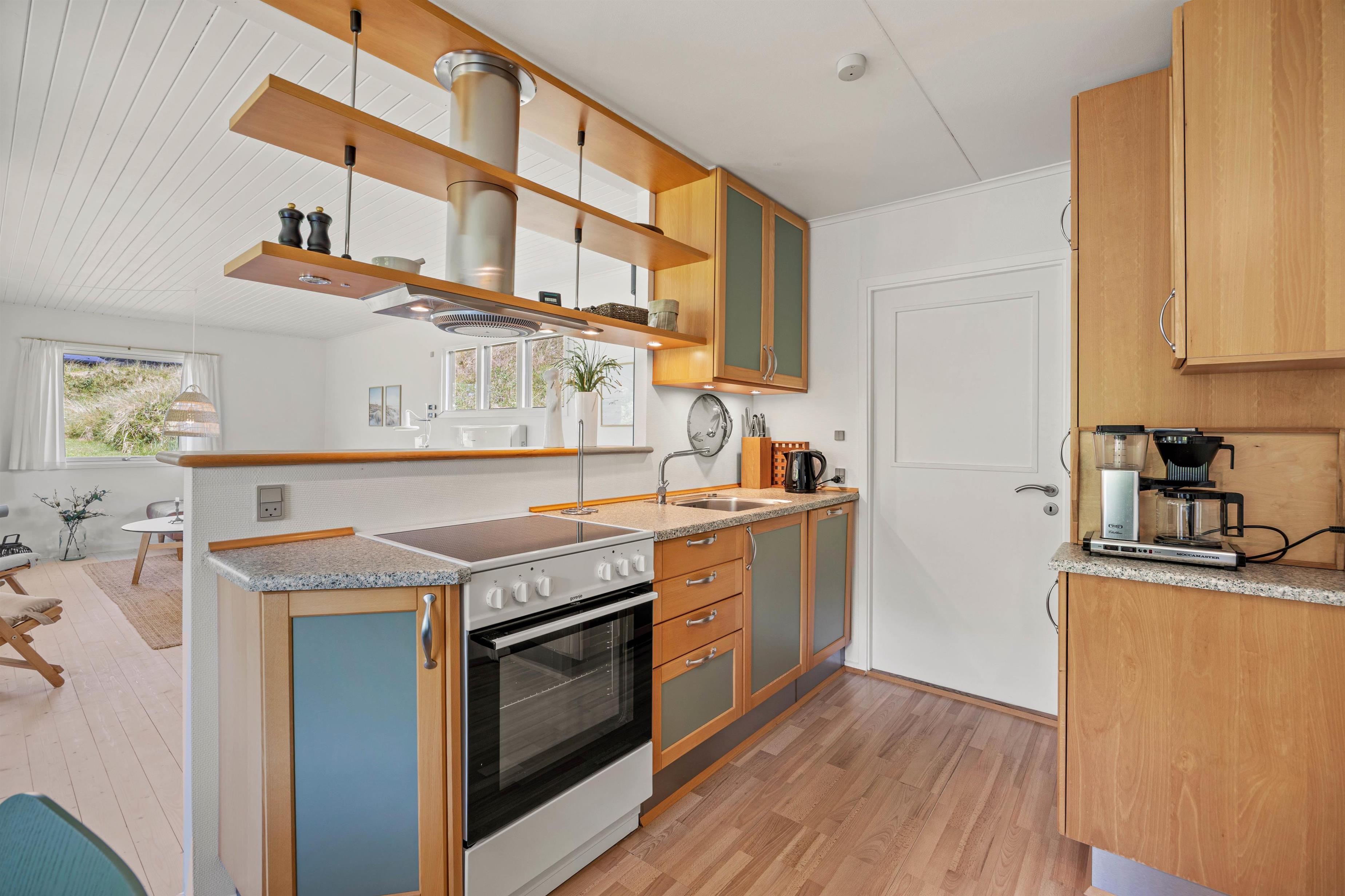 At lave mad bliver en fornøjelse i det veludstyrede køkken, komplet med mikroovn og opvaskemaskine. Det åbne køkken- og stueområde, hvortil der er et lille trin op, skaber en hyggelig atmosfære for alle at samles om måltider eller slappe af efter en dag ved stranden.