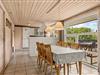 En dejlig fliseterrasse omgiver feriehuset. Terrassen er den perfekte base på de solrige dage, hvor havemøbler og liggestole kan findes frem. Her kan I nyde en kop kaffe, læse en bog og samle familien til en skøn grillaften. Tilbered en lækker sommermenu og nyd hertil et køligt glas vin.