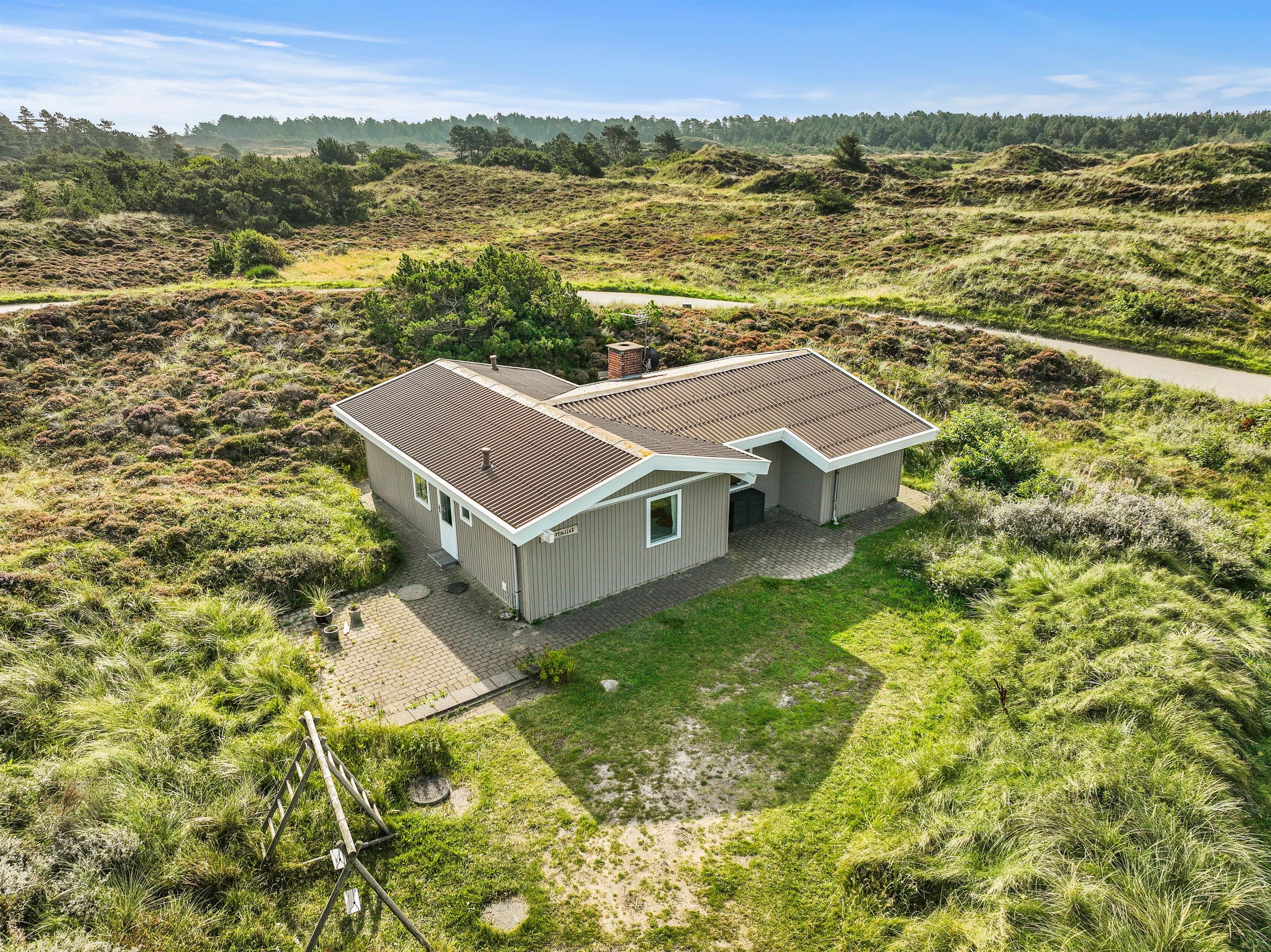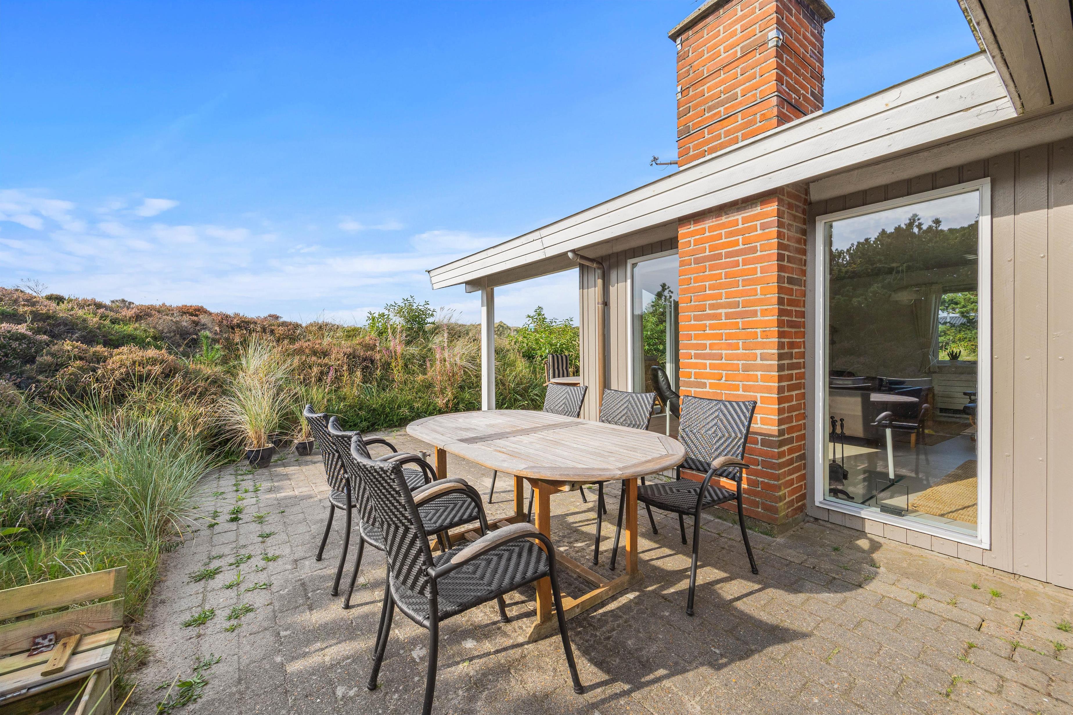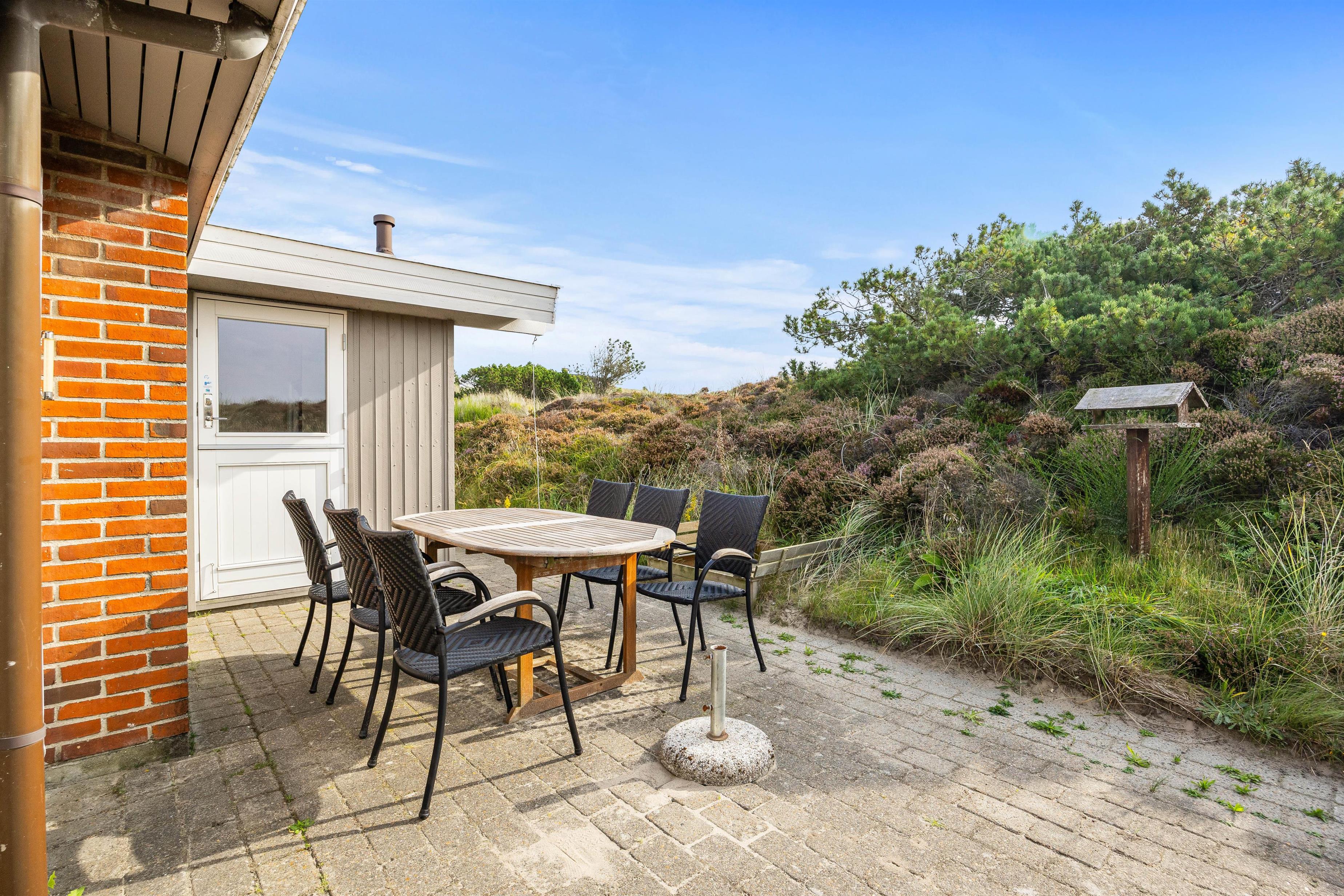 Den åbne og afskærmede terrasse er møbleret og klar, så I kan nyde det gode vejr, og til de lune aftener står grillen parat. Huset er omgivet af lyngbeklædt hede, og her får I masser af fred og ro til at slappe af helt uforstyrret.