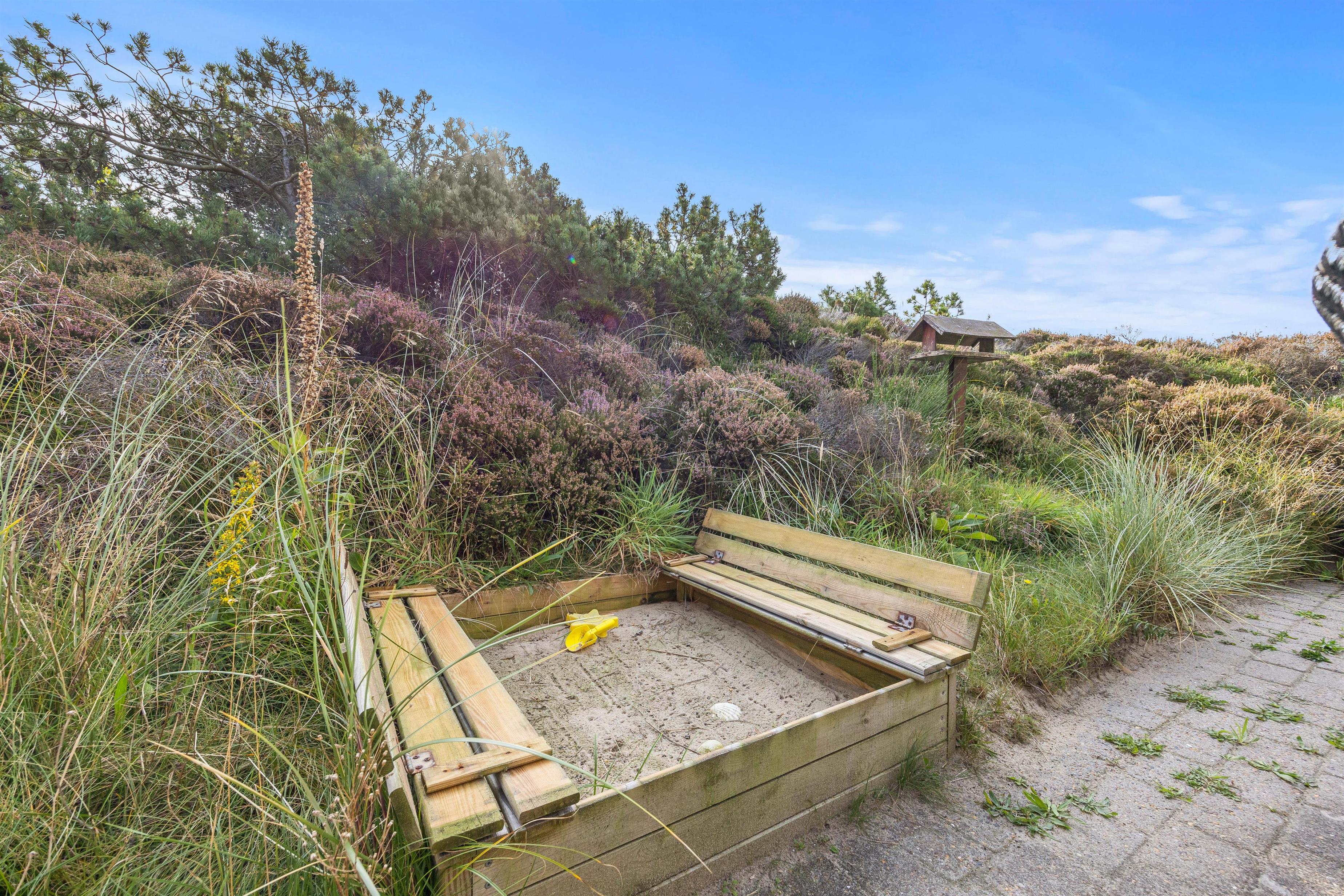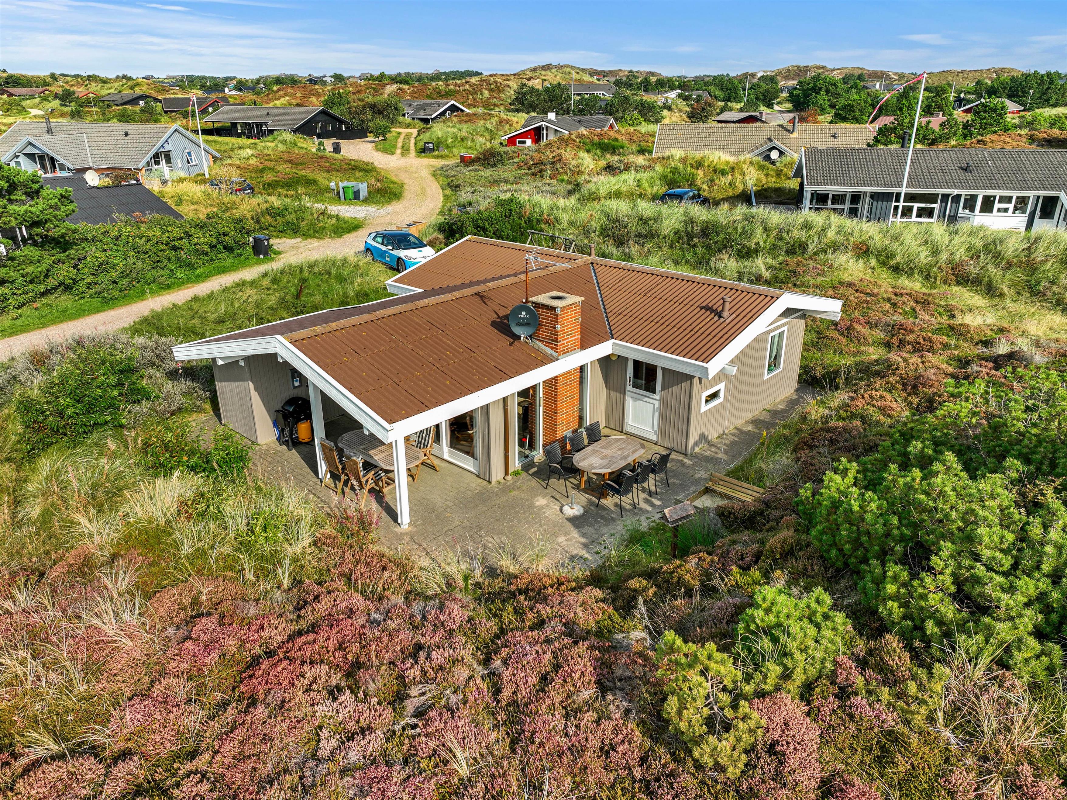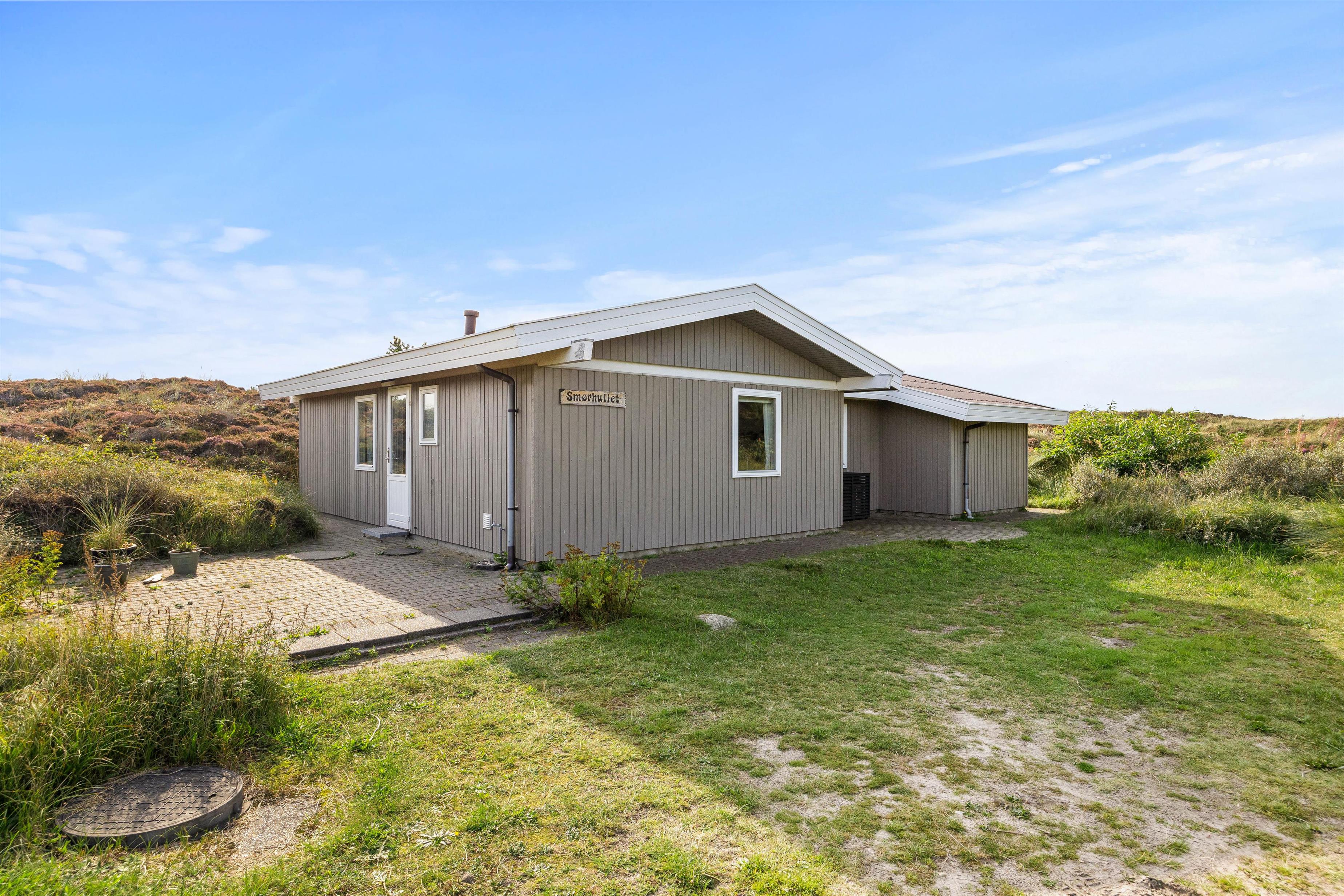 Den åbne og afskærmede terrasse er møbleret og klar, så I kan nyde det gode vejr, og til de lune aftener står grillen parat. Huset er omgivet af lyngbeklædt hede, og her får I masser af fred og ro til at slappe af helt uforstyrret.