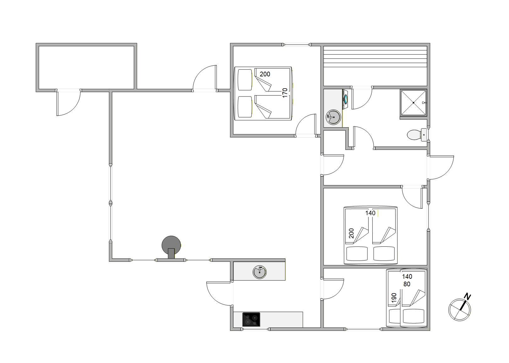 3. soverum/sengestørrelserSeng 140x190+køje øverst 1x80x190