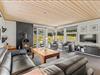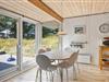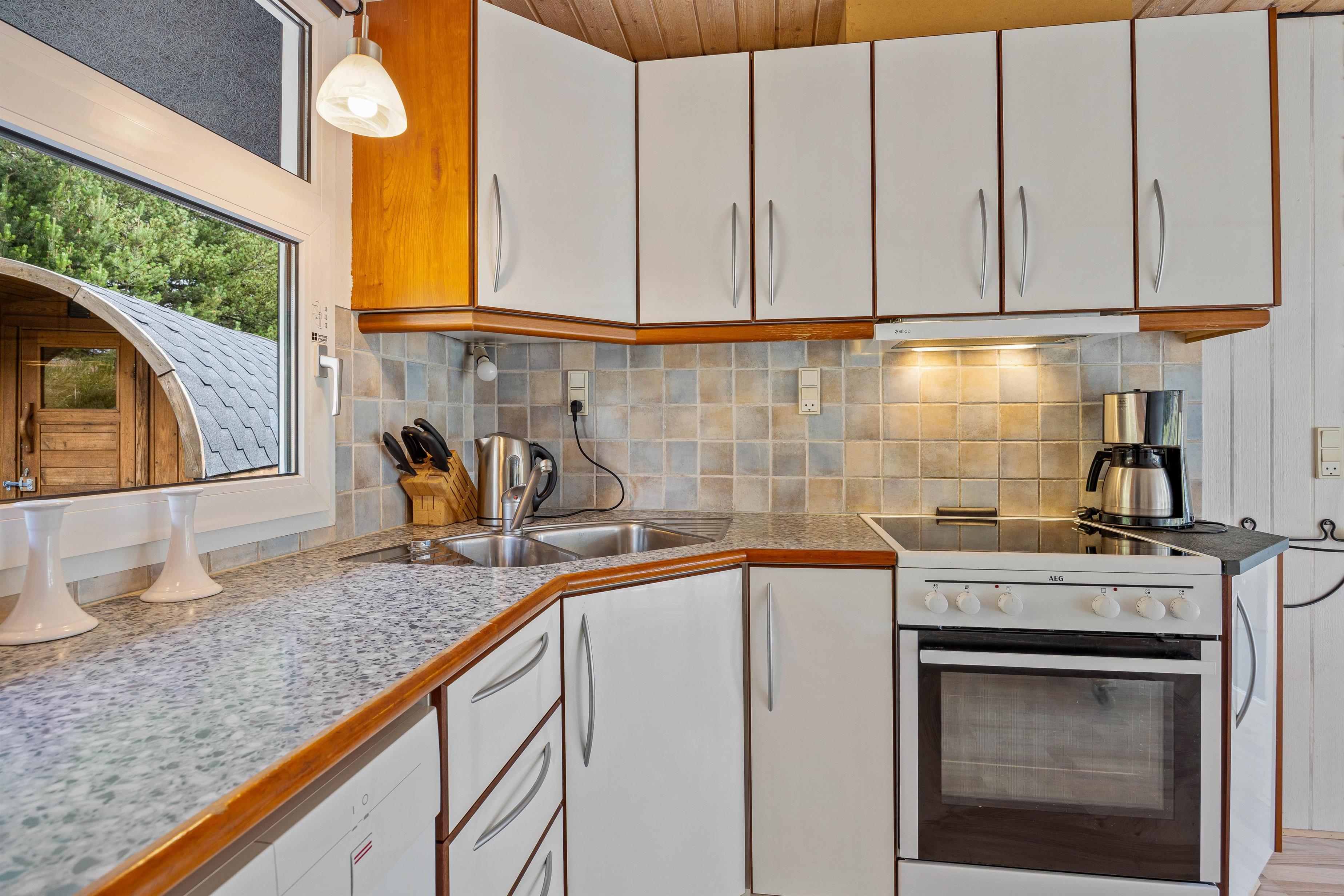 Hjertet i sommerhuset er alrummet, der forener køkken, stue og spiseplads. Alrummet inviterer til mange hyggelige stunder for hele familien under ferien – og selv hvis nogle står i køkkenet, og andre sidder i stuen, kan I stadig nyde hinandens selskab. I alrummet har I desuden en brændeovn, der sørger for at fuldende den hyggelige feriestemning med sine knitrende flammer.