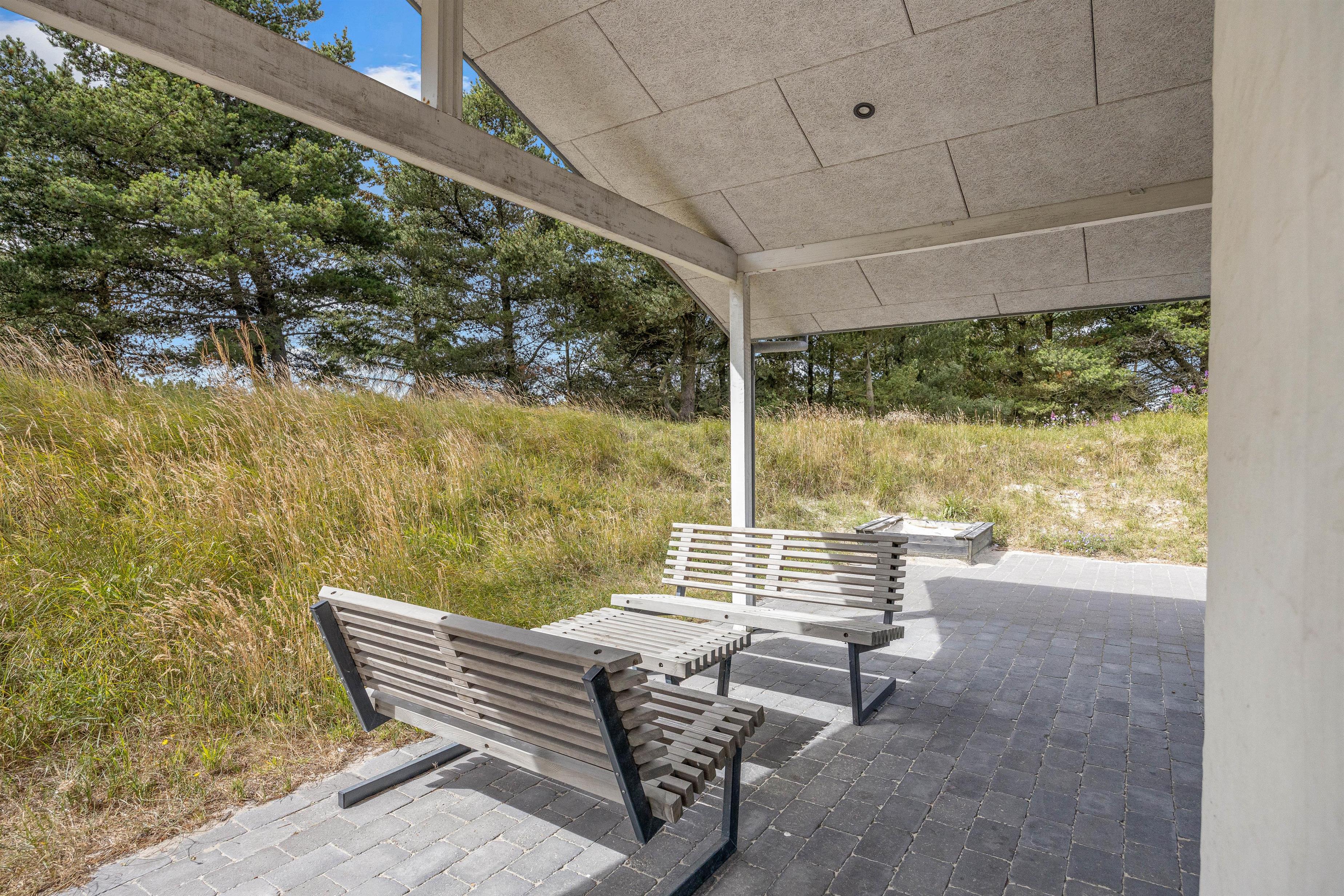 Udendørs byder sommerhuset på en dejlig terrasse, der er delvist overdækket, hvor I kan nyde de solrige feriedage. På terrassen står der både havemøbler og liggestole klar til jer, så I kan sætte jer godt til rette i solen. Vil I hellere sidde i skyggen, kan I rykke ind under terrassens overdækkede del.