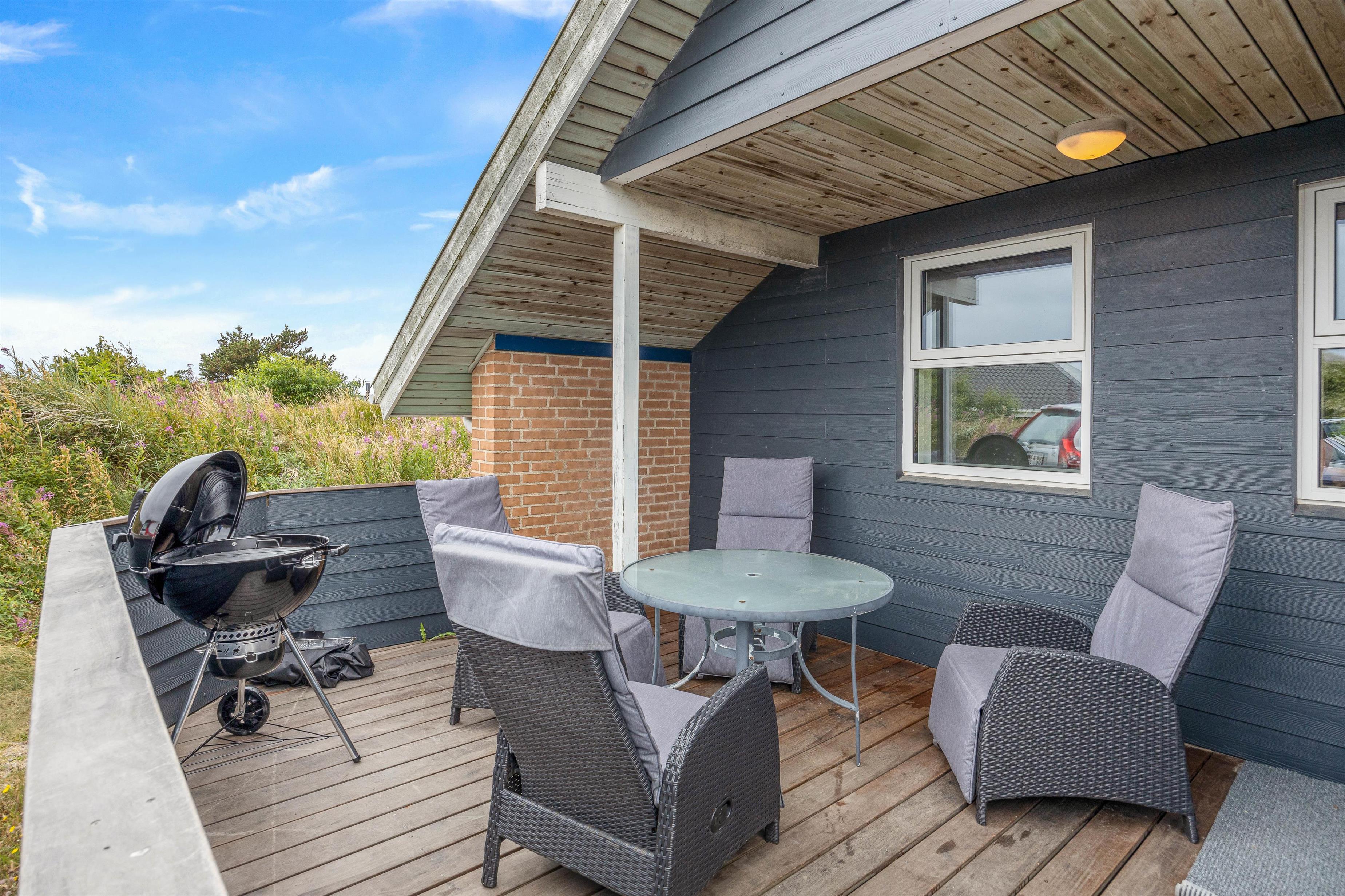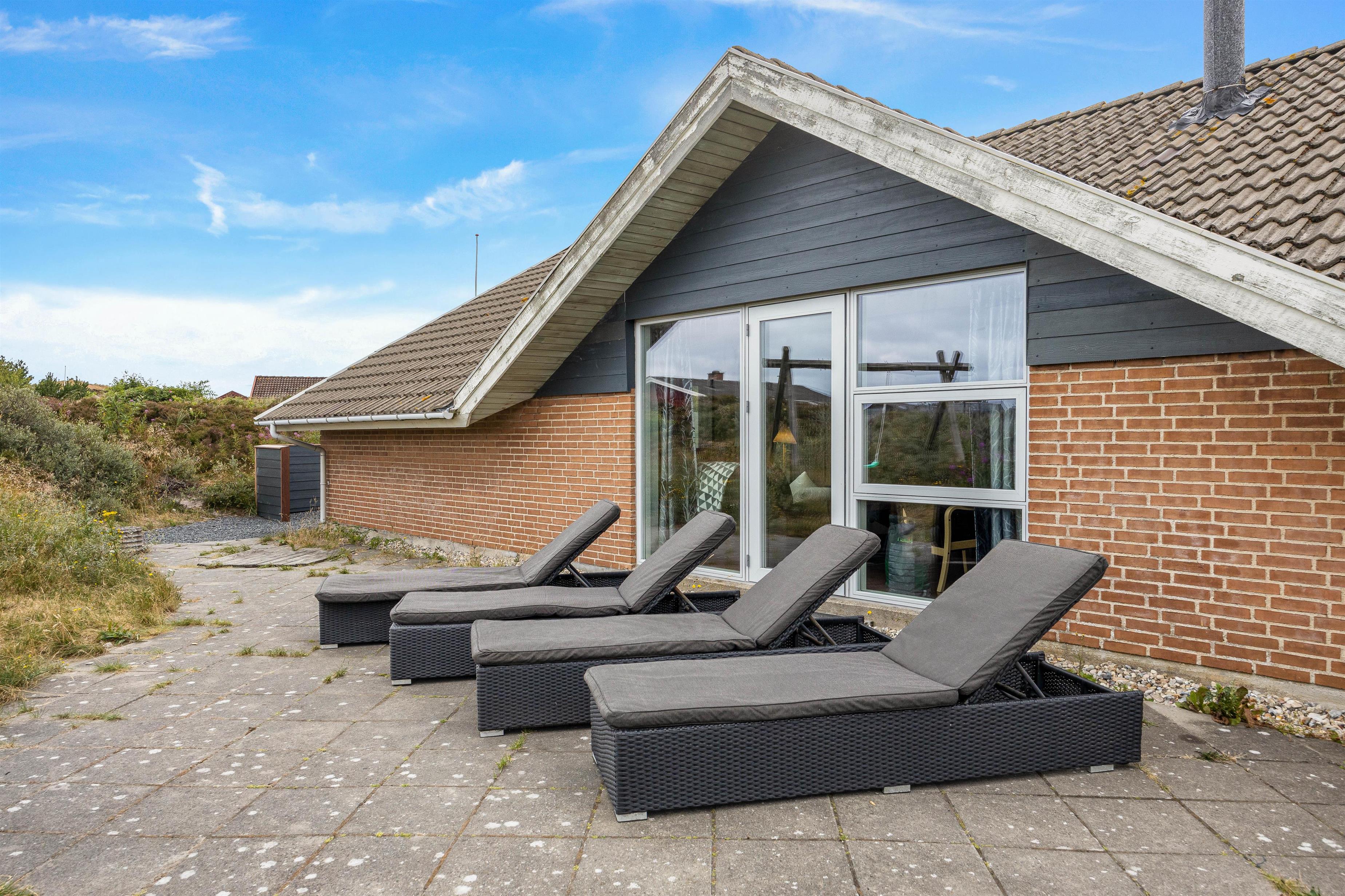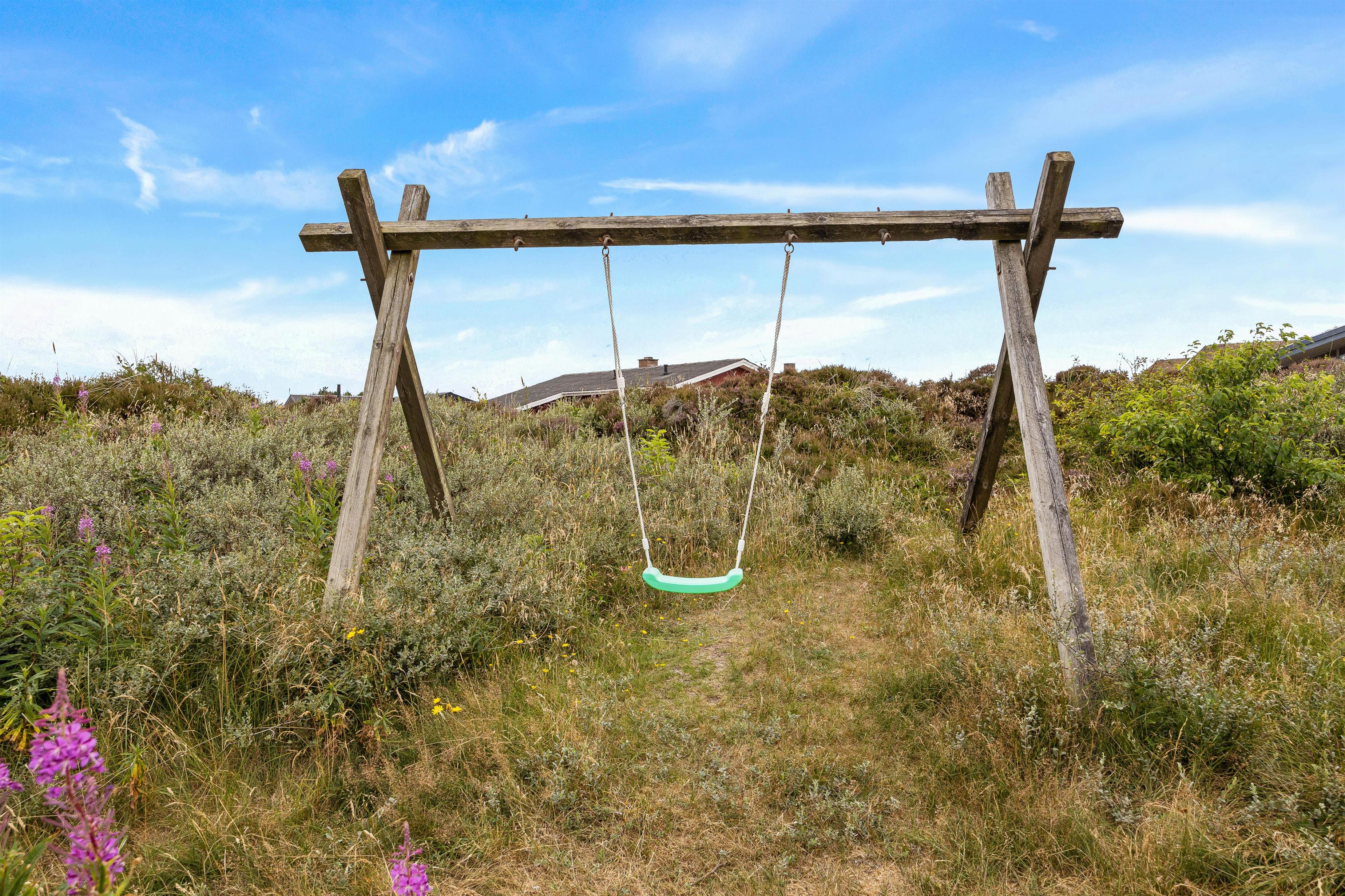 Sommerhuset på Kløvervej 9 i Henne ligger på en 1.600 kvadratmeter stor naturgrund, og på sommerhusets udeområde kan både store og små tilbringe feriens solrige dage. Til børnene er der en gynge, og imens de gynger, kan I finde jer en god plads på terrassen og læne jer tilbage i havemøbler og liggestole.