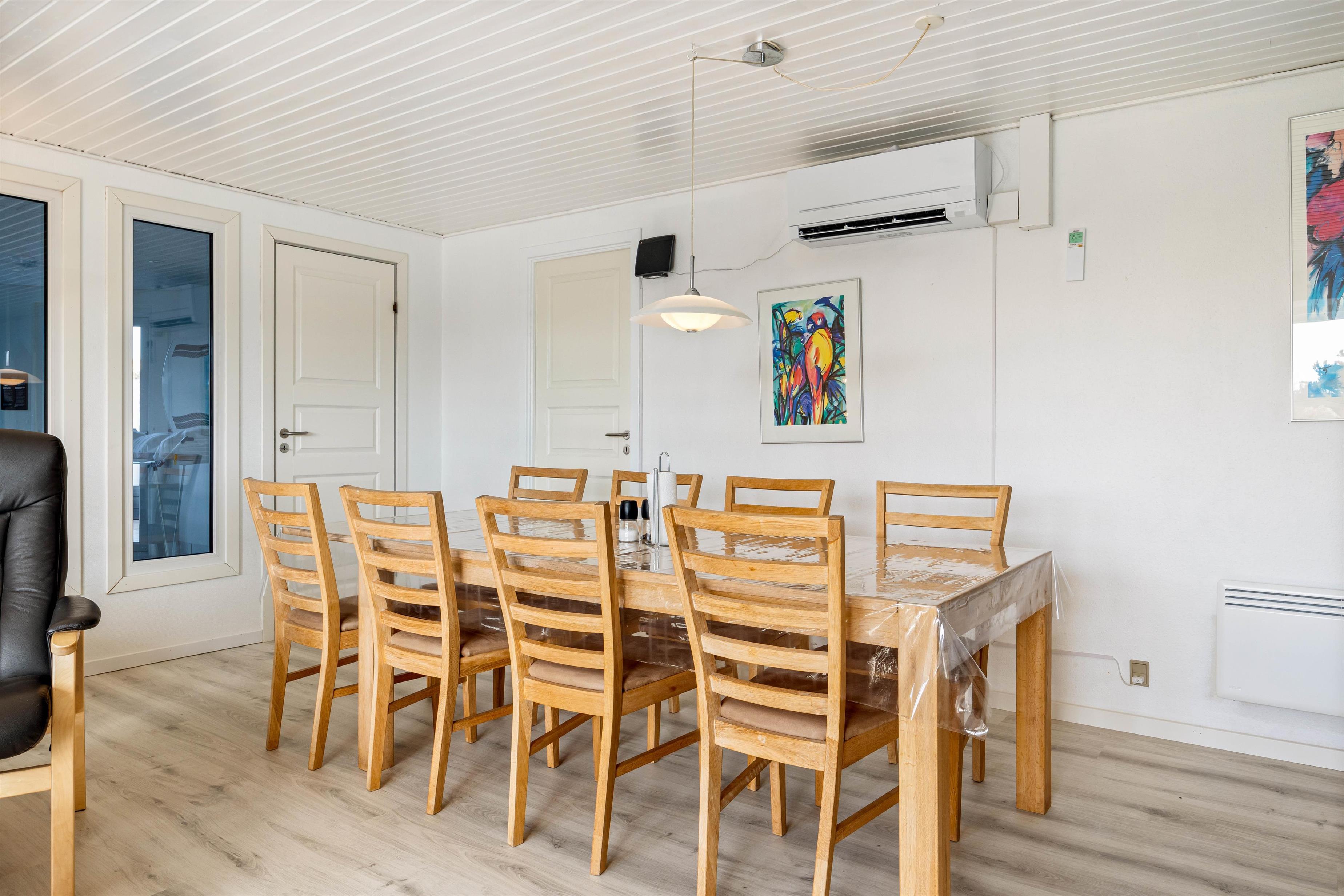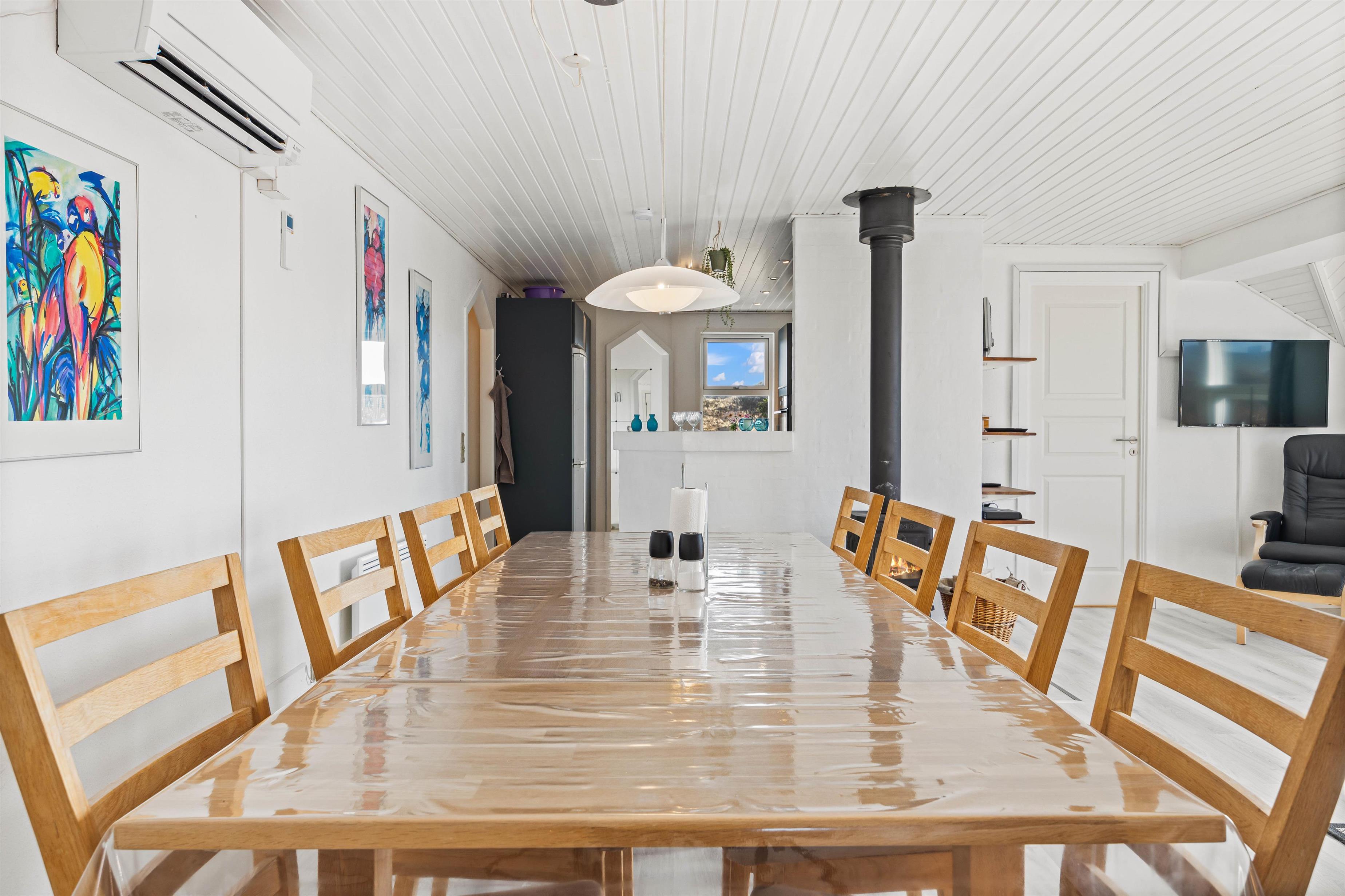 Det store samlingspunkt i sommerhuset, der er renoveret i 2022, er alrummet, hvor I blandt andet kan samles til skønne måltider omkring spisebordet og gode film i tv’et – I kan endda streame jeres favoritfilm via Chromecasten. Her sørger brændeovnen for at sætte prikken over i’et med sin knitren i baggrunden og varme.