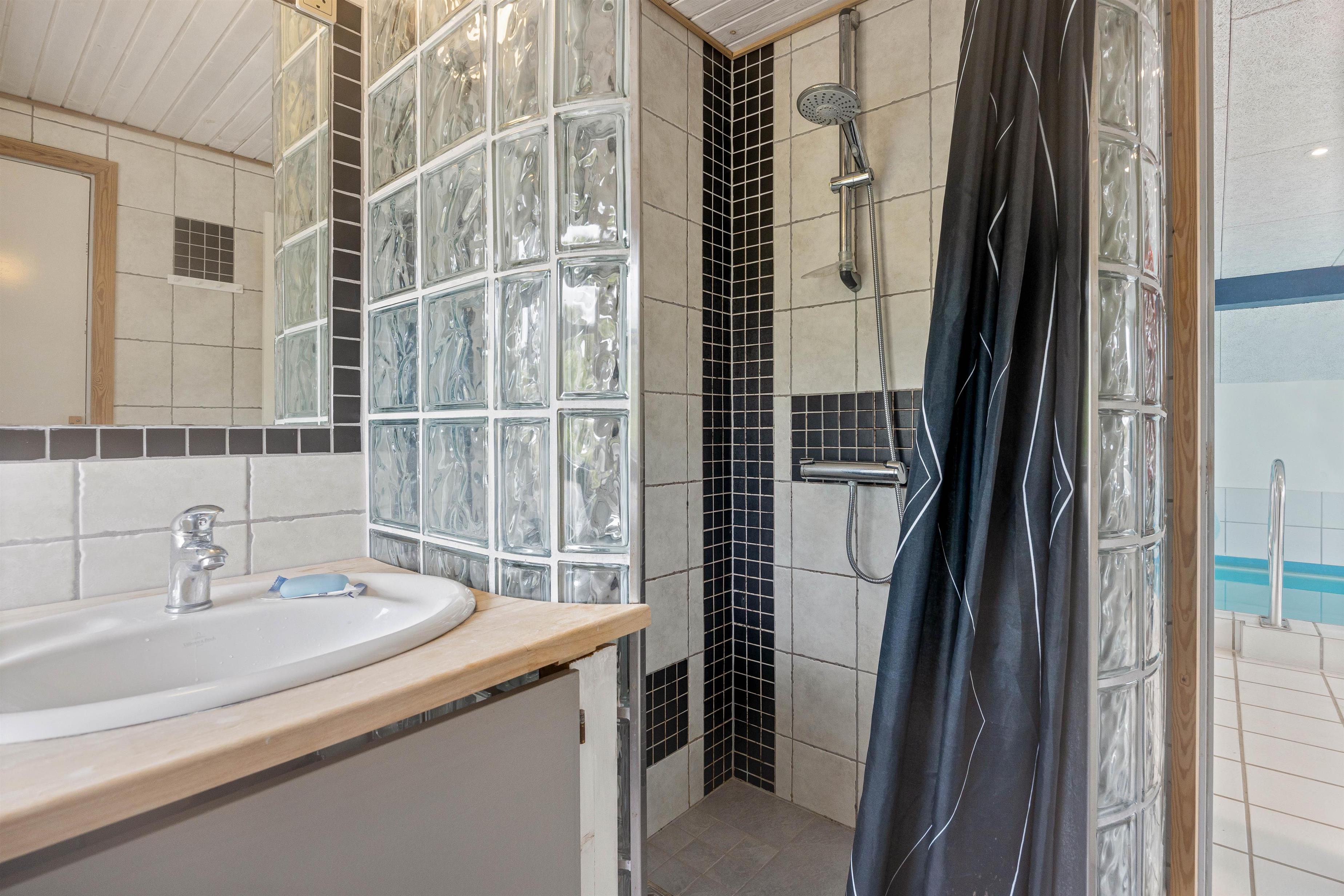 I sommerhuset har I 2 badeværelser med gulvvarme, så I både slipper for at stå i kø og kolde fødder fra morgenstunden. Fra det ene af badeværelserne har I desuden adgang til sommerhusets sauna, hvor I kan nyde masser af afslapning i løbet af ferien.
