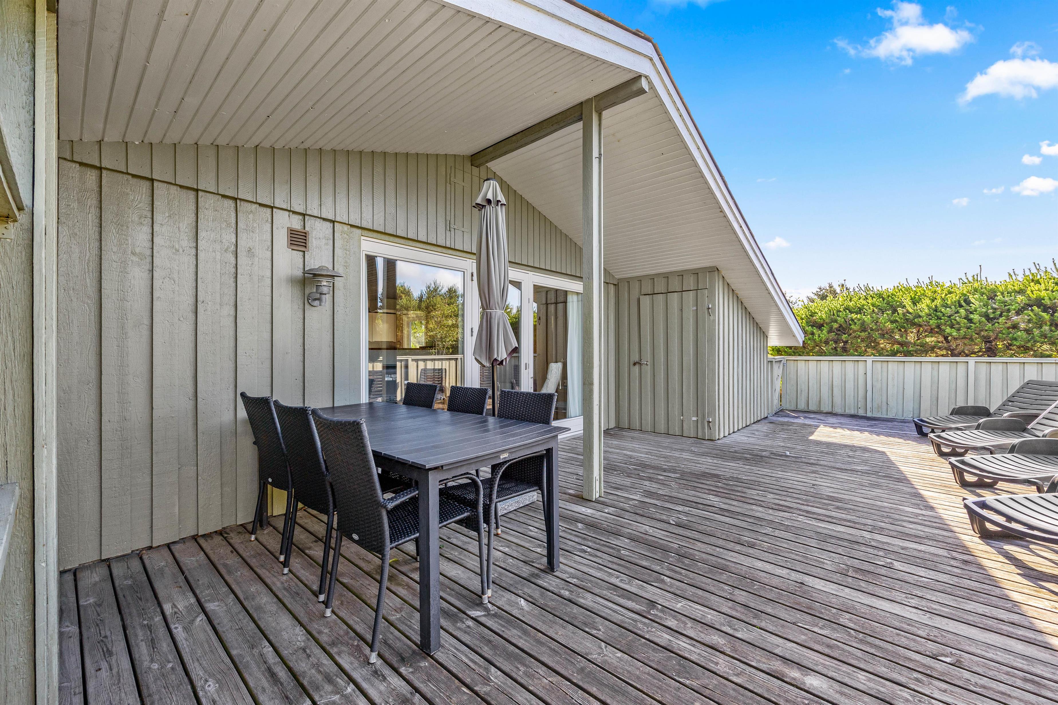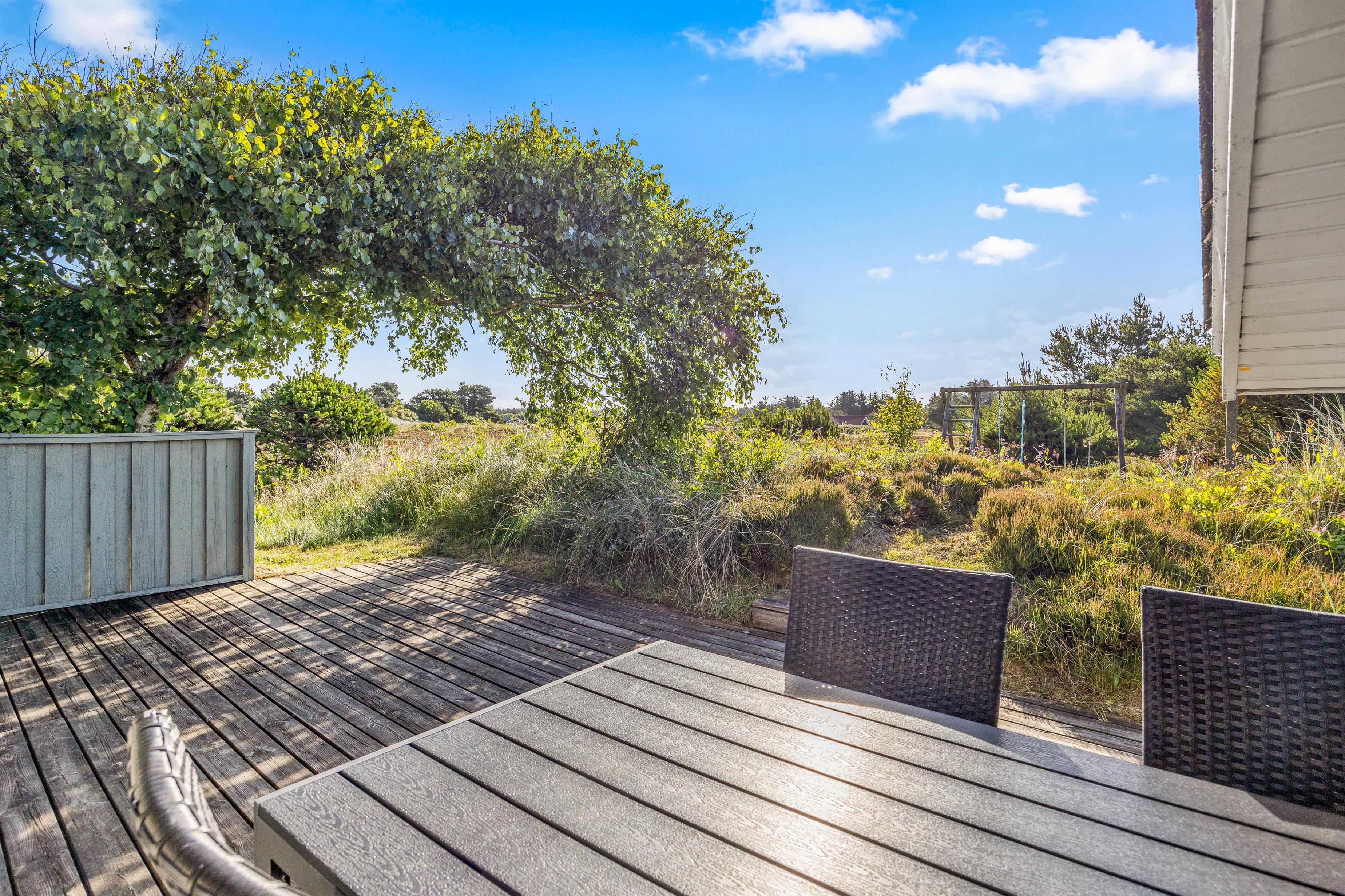 Afslapning under åben himmel er der rig mulighed for her. Feriehuset har en dejlig lukket terrasse, hvor I kan nyde solen. Her kan hunden også bevæge sig frit rundt. Havemøblerne står klar, og her kan I nyde morgenkaffen eller aftensmaden. Aftensmaden kan nydes under den overdækkede terrasse og skal naturligvis tilberedes på grillen.