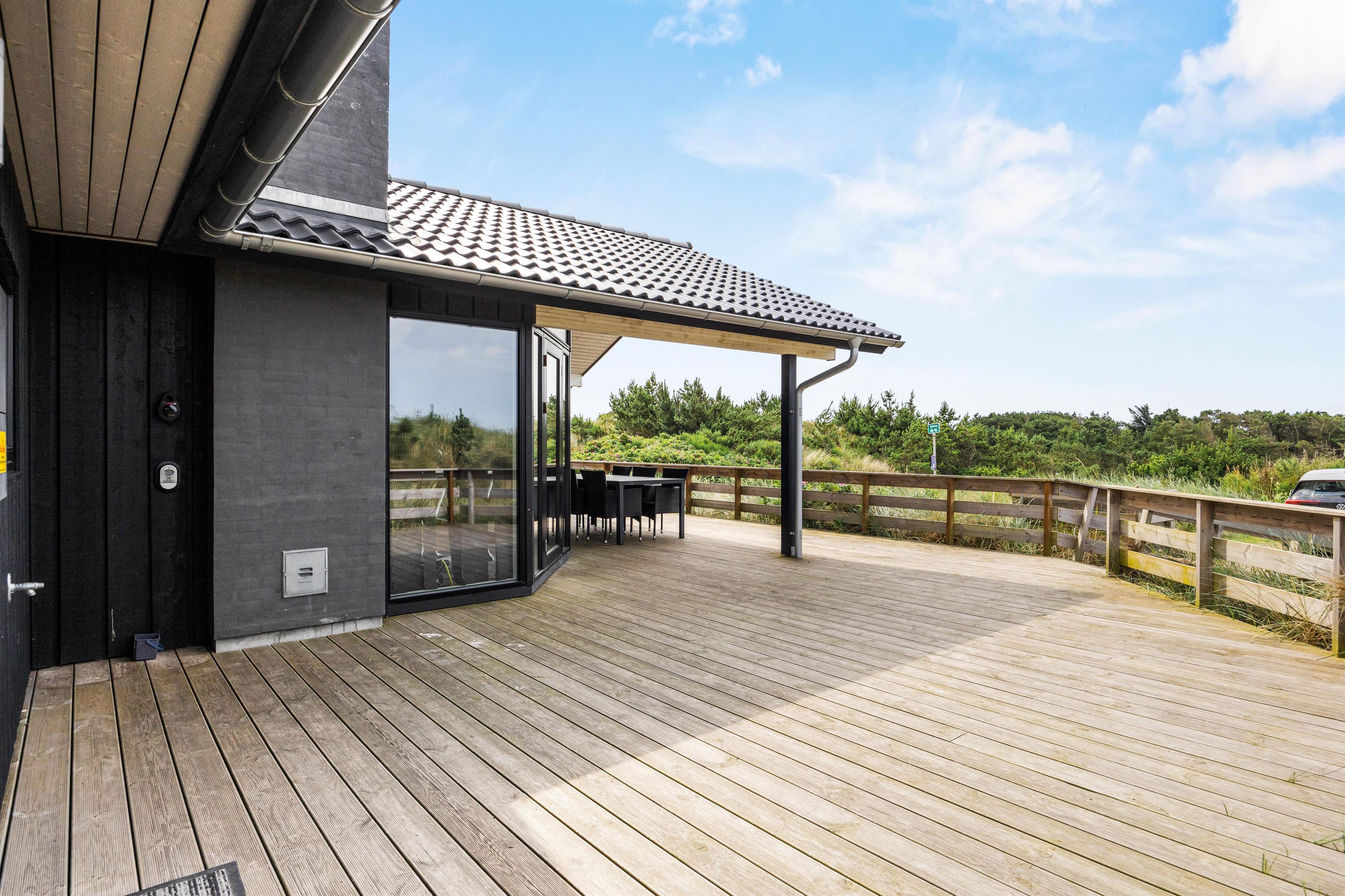 Udendørs kan I nyde den friske havbrise på en af de 3 terrasser: en afskærmet, en overdækket og en åben terrasse, der alle indbyder til afslapning. Om aftenen kan I nyde en lækker grillmiddag og roligt lade dagen rinde ud. Nyd de endeløse sommerdage eller den fantastiske stjernehimmel om efteråret.