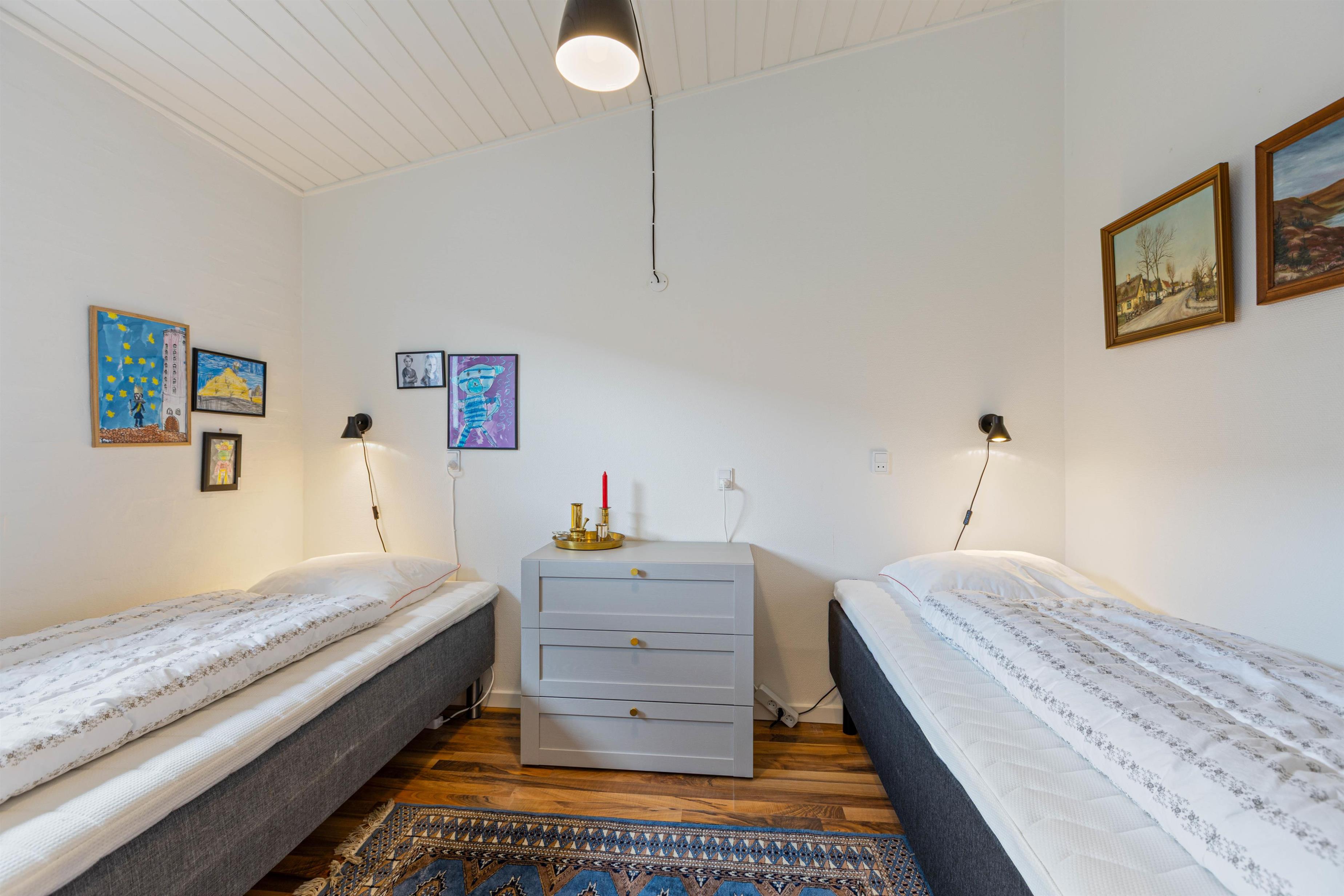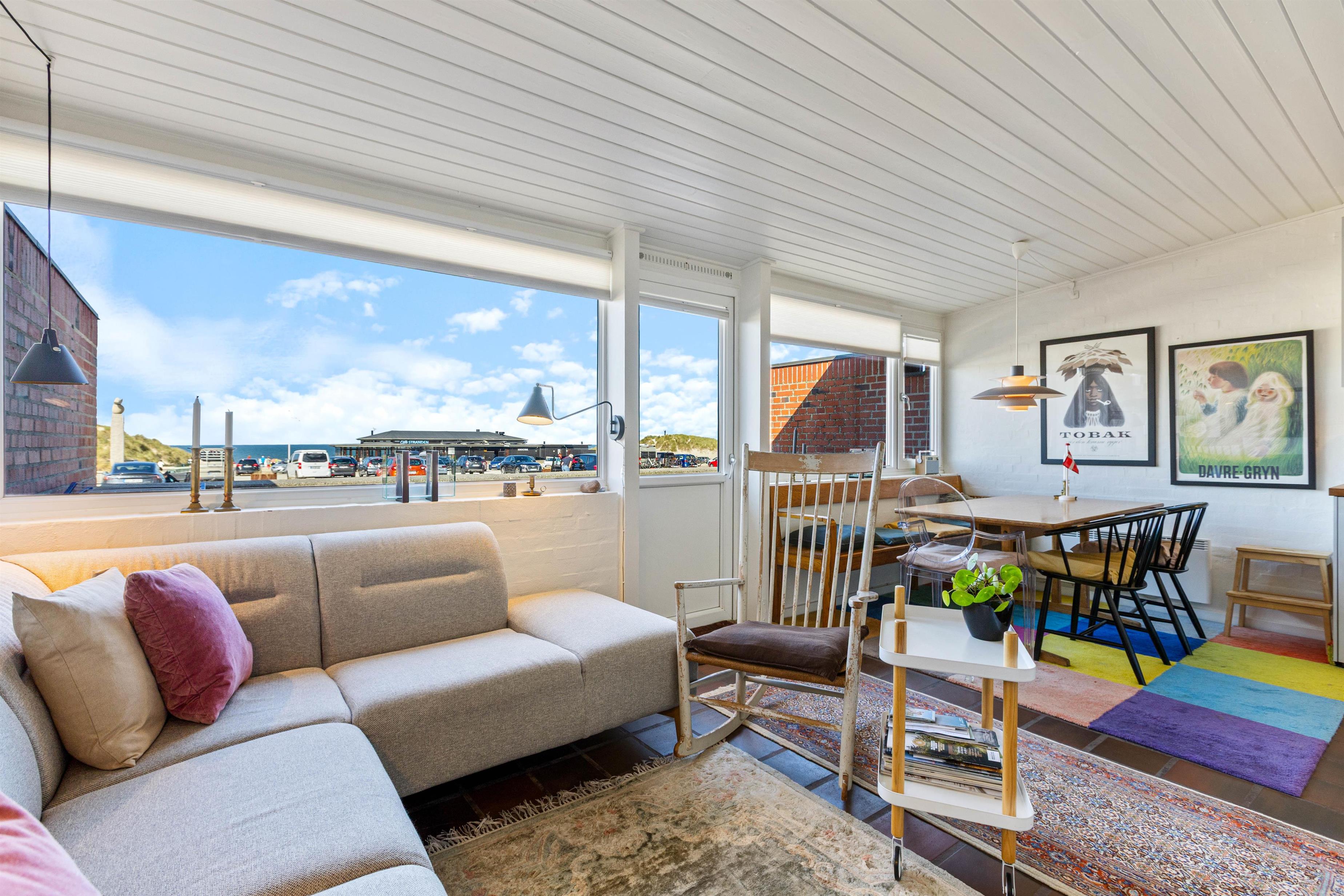 Direkte ved kysten, med udsigt til Vesterhavet, ligger dette hyggeligt indrettede rækkehus. Her er plads til 4 personer fordelt på 2 soveværelser, det ene med dobbelt-, det andet med to enkeltsenge.