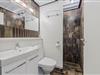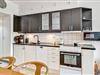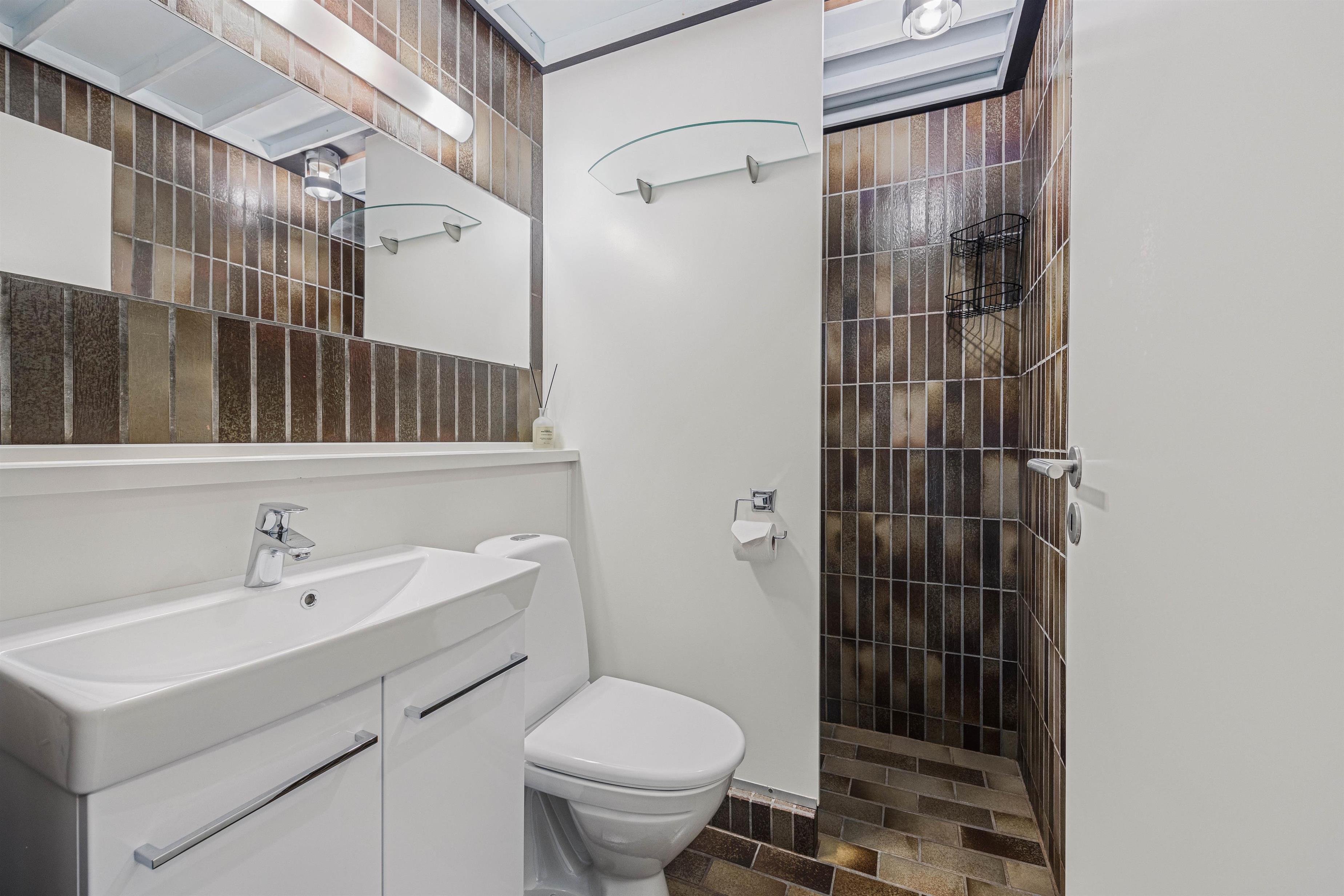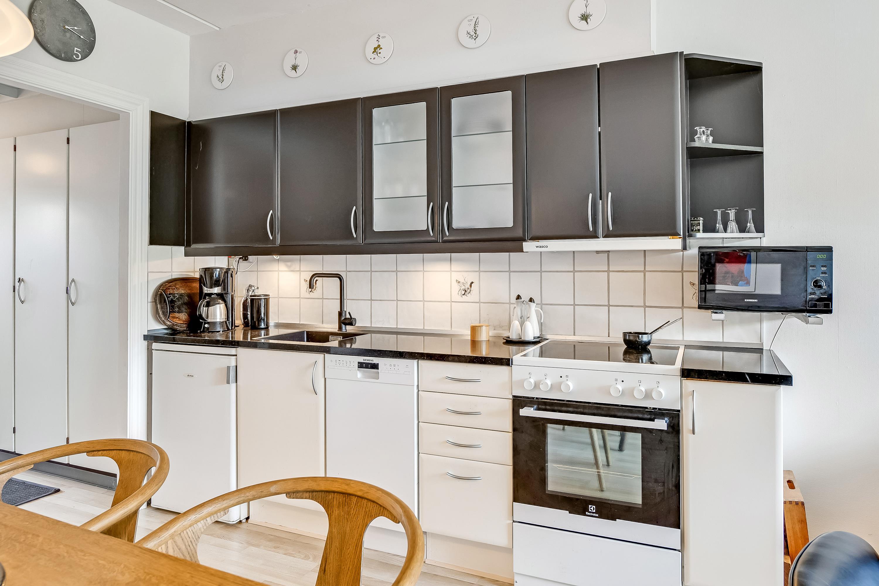 Det funktionelle køkken er udstyret med opvaskemaskine, så I nemt kan klare opvasken og i stedet bruge tiden på feriens hyggelige stunder. Badeværelset fremstår stilfuldt og indbydende – et dejligt sted at starte dagen frisk og veludhvilet.