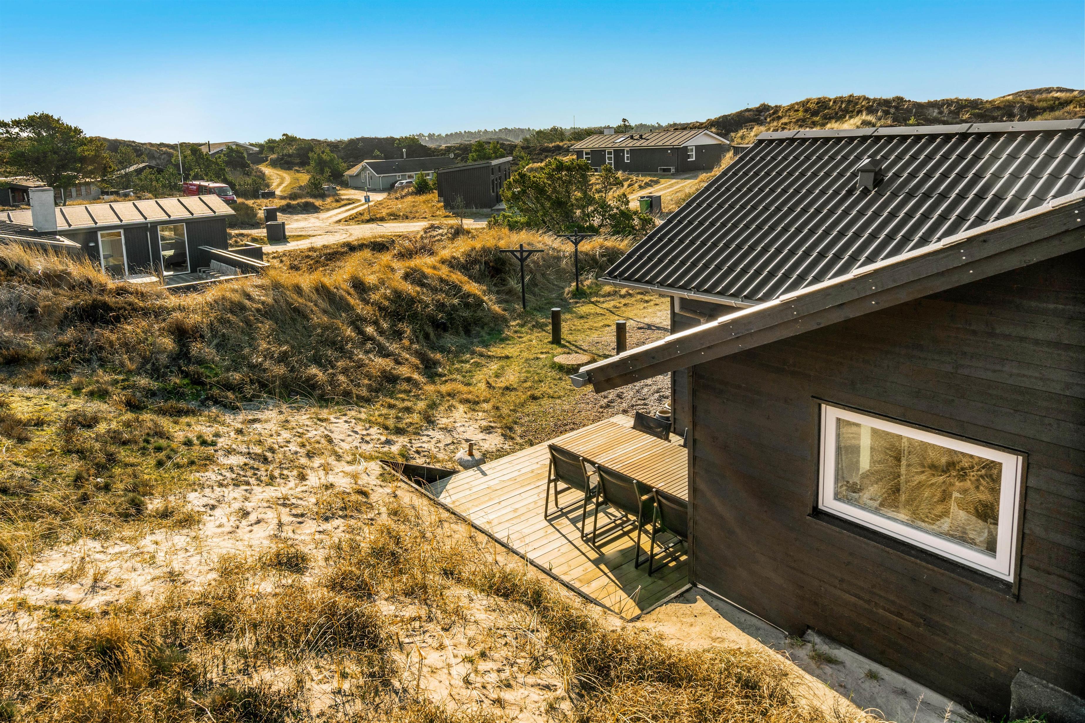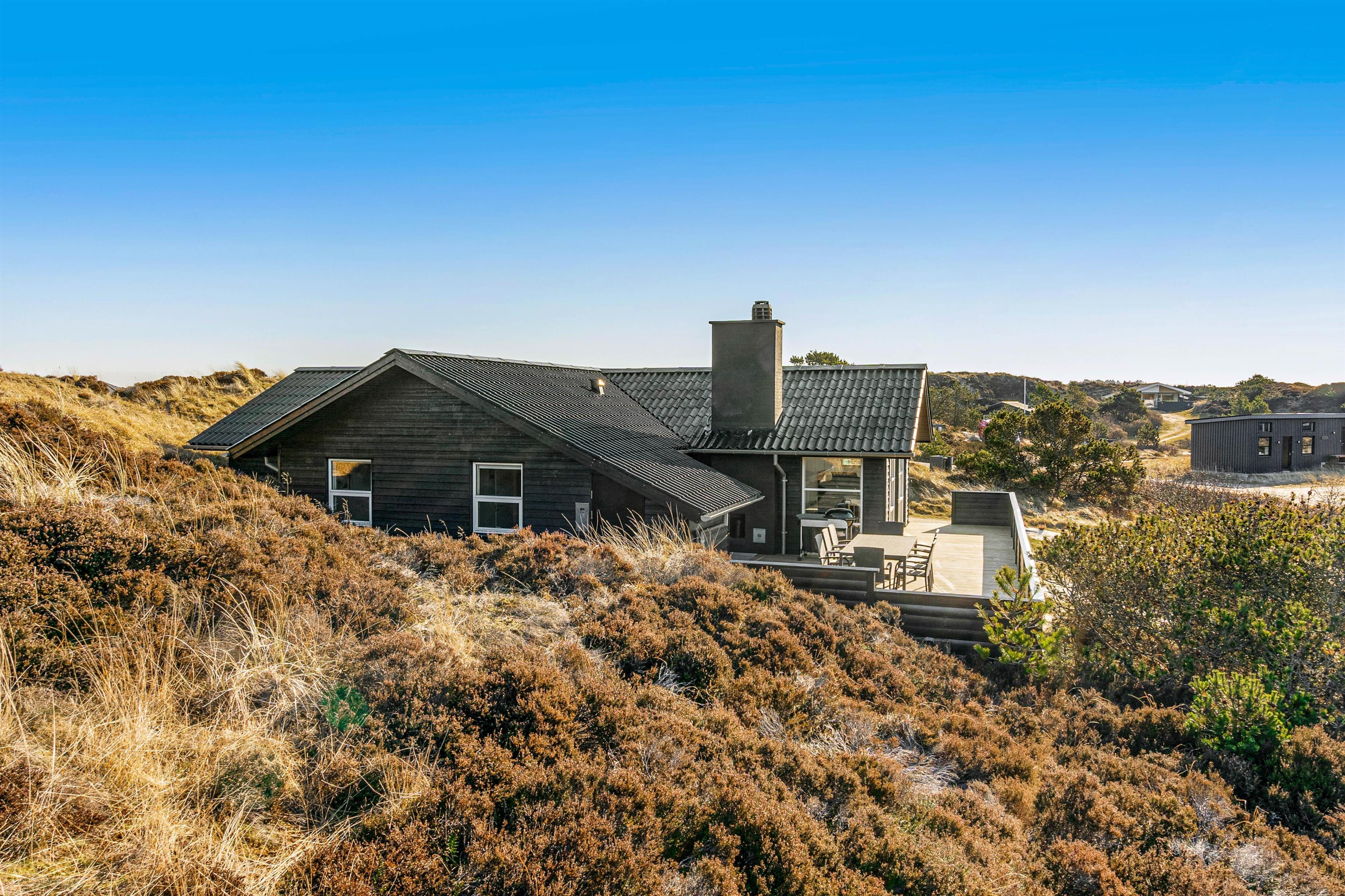 Udendørs har sommerhuset en skøn terrasse, der også er ny. Den afskærmede terrasse er udstyret med havemøbler, liggestole og en grill, så I virkelig kan nyde de solrige feriedage på terrassen fra morgenens første kop kaffe til aftenens grillmiddag.
