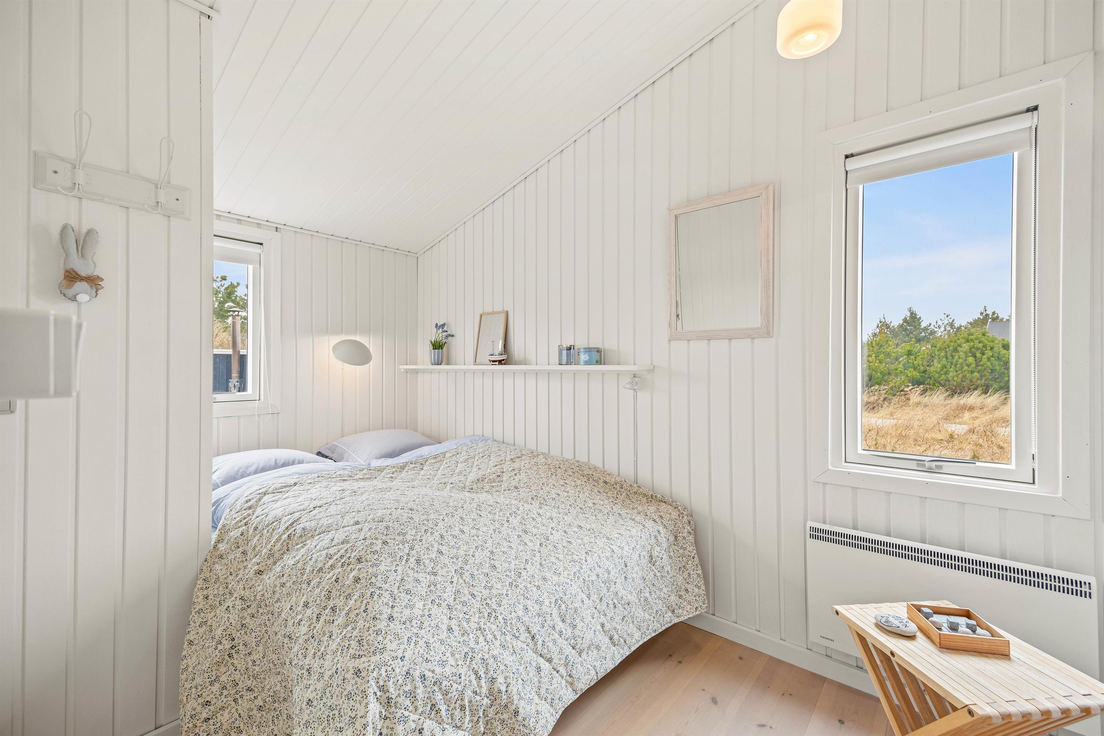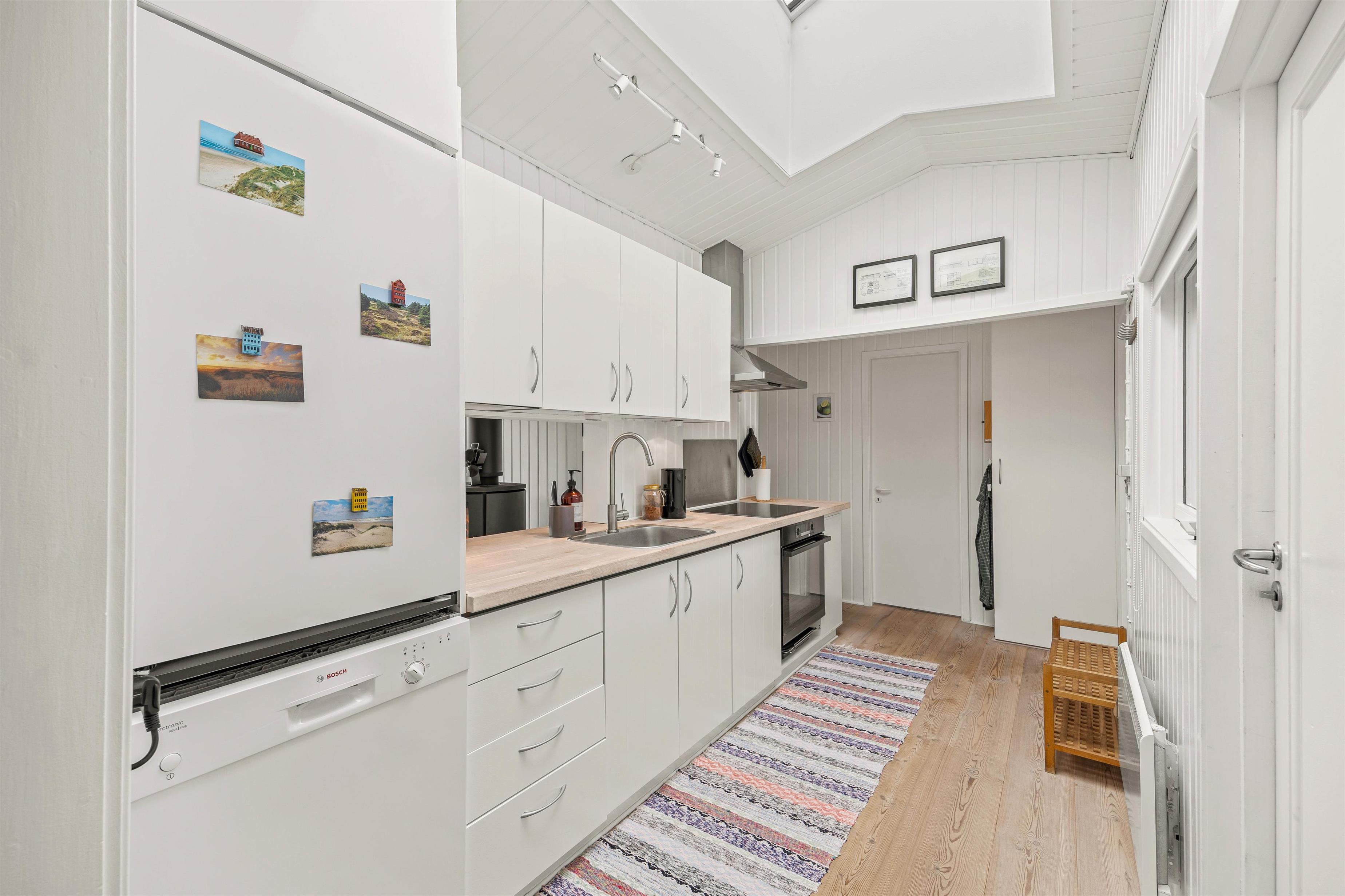 I dette ikke-rygerhus på Mågevej 1 i Henne Strand venter jer et lyst fællesrum med spise- og opholdsstue. Dette rum er det oplagte samlingssted for familiehyggetid: her kan I være sammen om at se film eller spille spil. Køkkenet, som ligger i direkte forbindelse med fællesrummet, er veludstyret og indeholder både opvaskemaskine og mikroovn. Ydermere er der en 40L fryser.