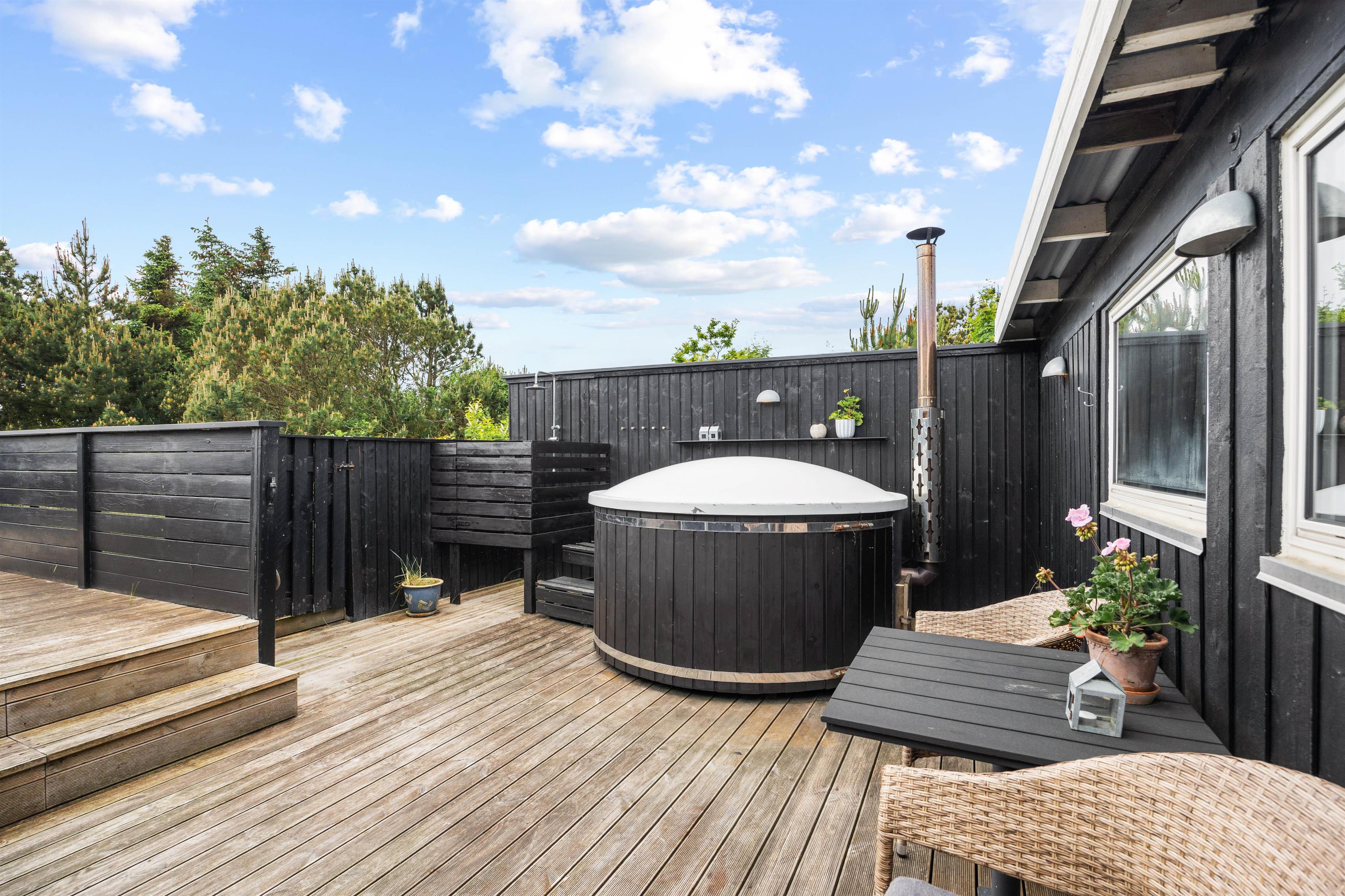 I forlængelsen af den vestvendte terrasse ligger vildmarksbadet og udebruseren*, som I kan nyde efter en lang spadseretur ved Vesterhavet.
