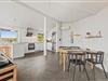 I dette velholdte og hyggelige feriehus har I stue, køkken og spiseafdeling samlet i ét stort rum, så der er rig mulighed for at tilbringe masser af tid sammen under ferien. Loftshøjden er god, og gennem det store vinduesparti er det en fantastisk udsigt til havet. Sid en sofaen med en bog, en kop kaffe og beundr den vestjyske natur – det er balsam for sjælen. På de køligere dage kan I gøre brug af den energibesparende varmepumpe eller brændeovnen. Brændeovnen er placeret centralt og spreder glæde og god varme.