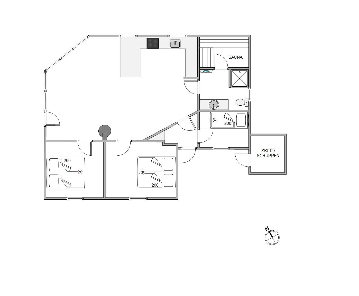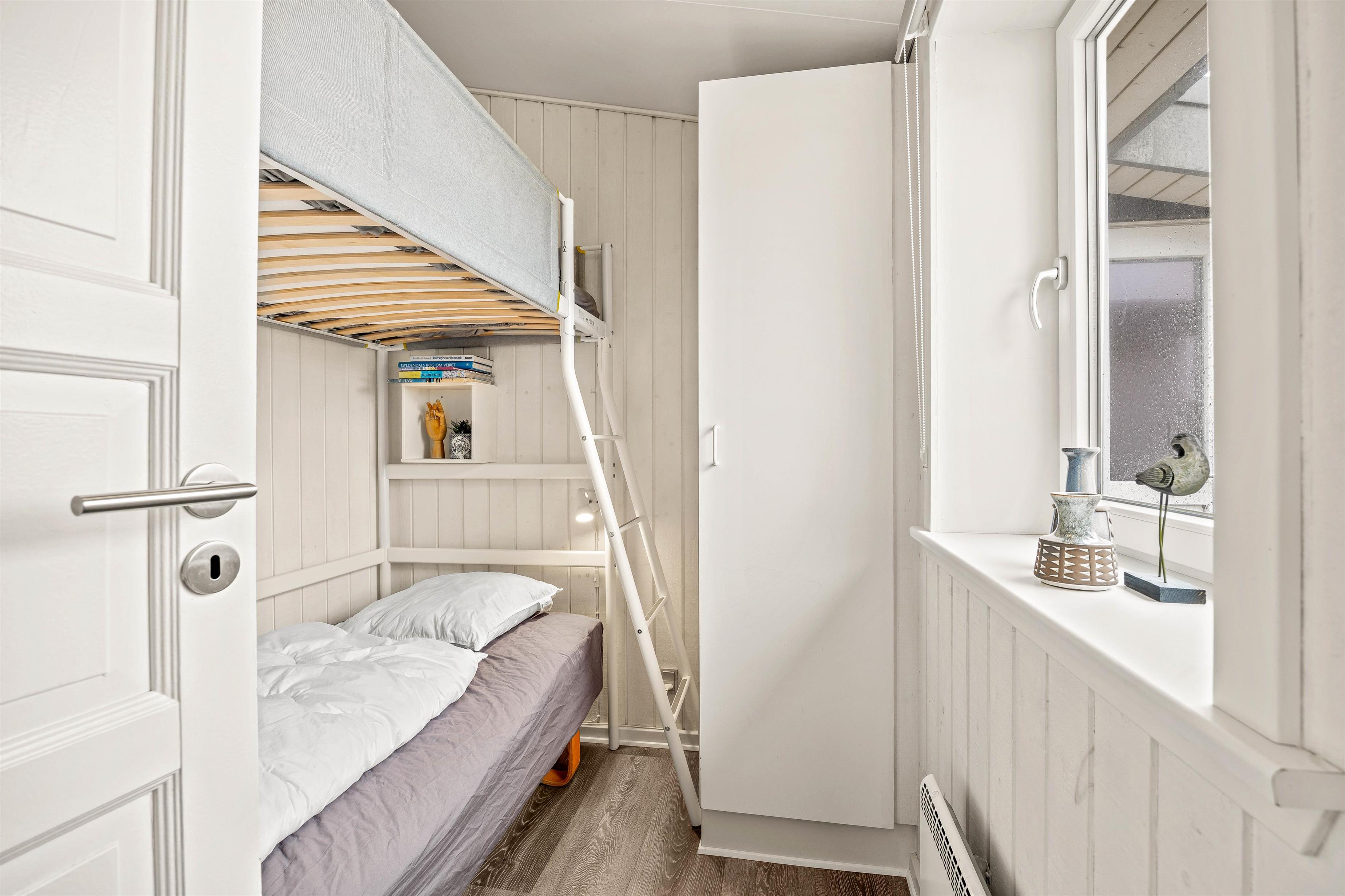 Saunaen kan bestemt også give jer varmen, især efter en lang gåtur på stranden er sauna værdsat! På badeværelset finder I desuden også feriehuset vaskemaskine, der sørger for friske håndklæder. Til aften kan I fordele jer på de tre gode værelser. Alle værelser har gulvtæppe, 2 er med dobbeltseng og det tredje med én enkeltseng.