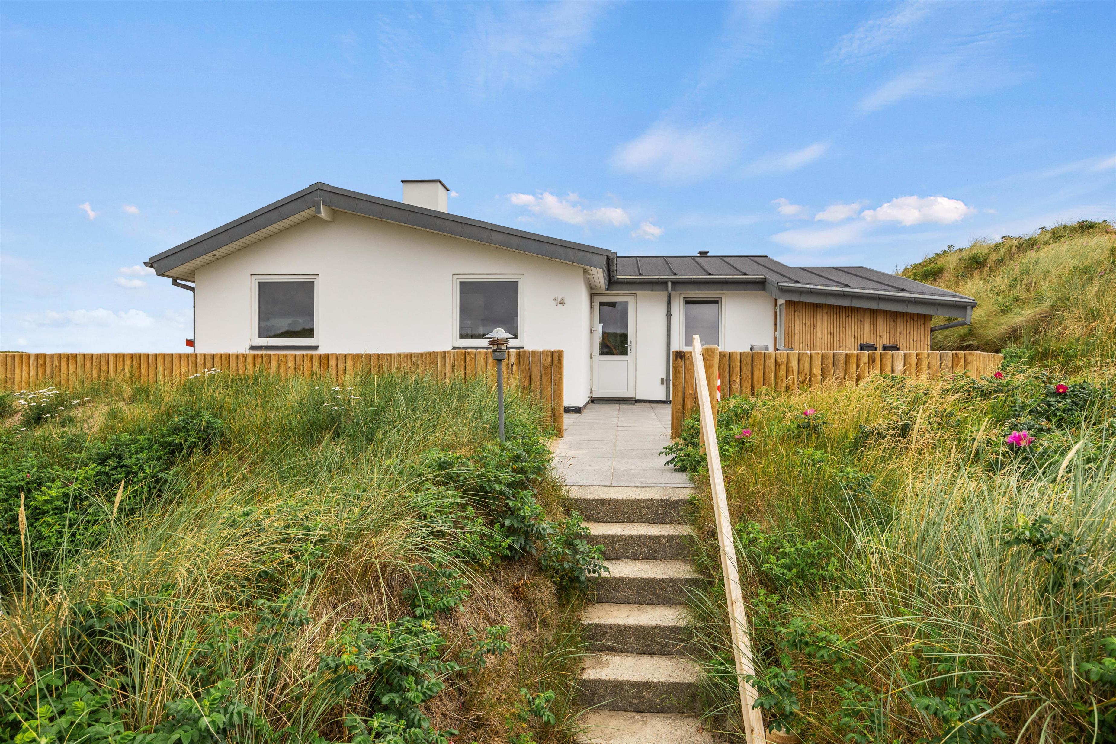 På Fasanvej 14 i Henne ligger dette skønne sommerhus med havudsigt. Et dejligt feriehus med en indbydende indretning til 5 gæster og én hund. På terrasserne kan der altid findes en hyggelig lækrog, og så er det brusende Vesterhav kun et stenkast herfra.