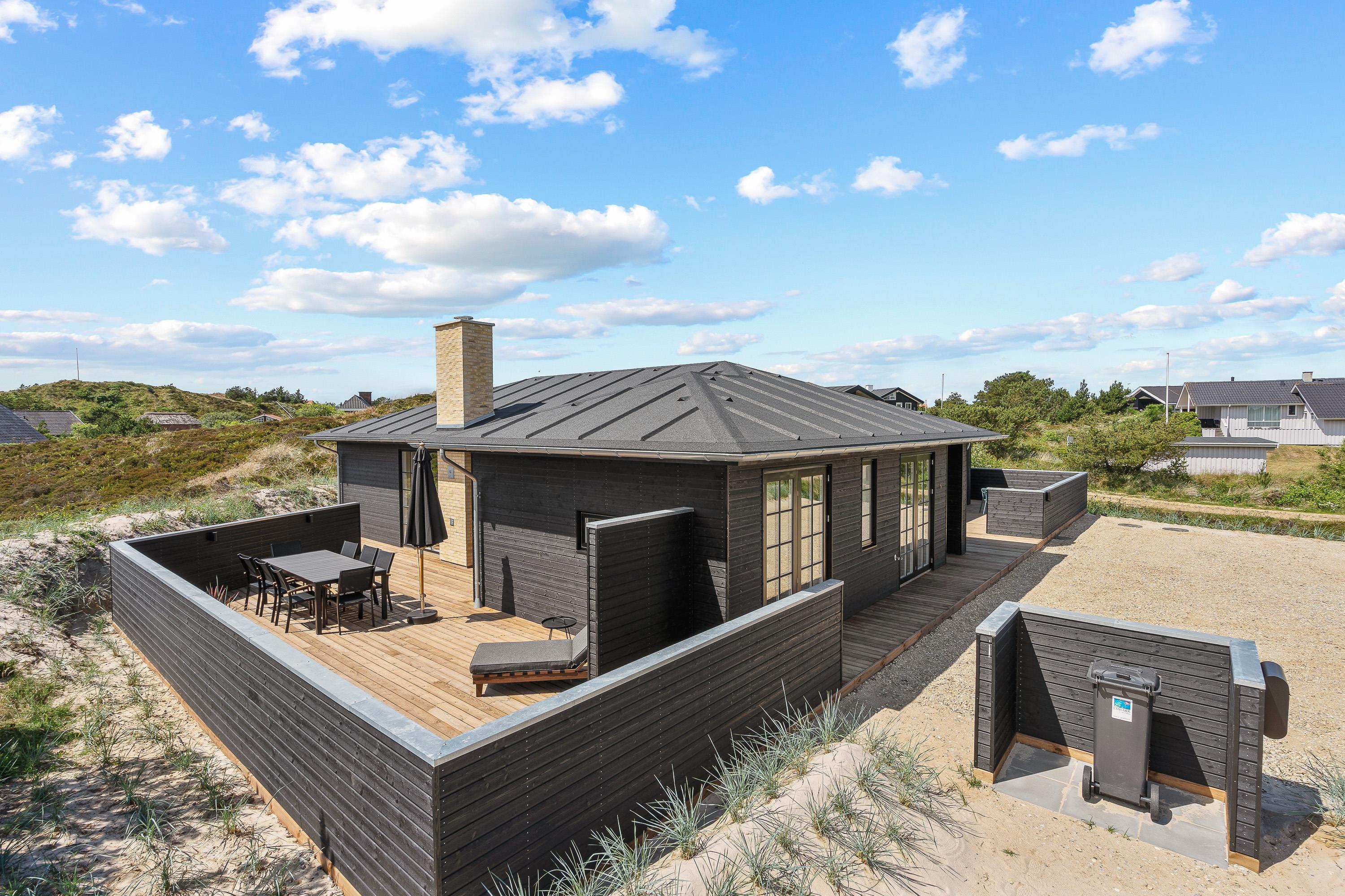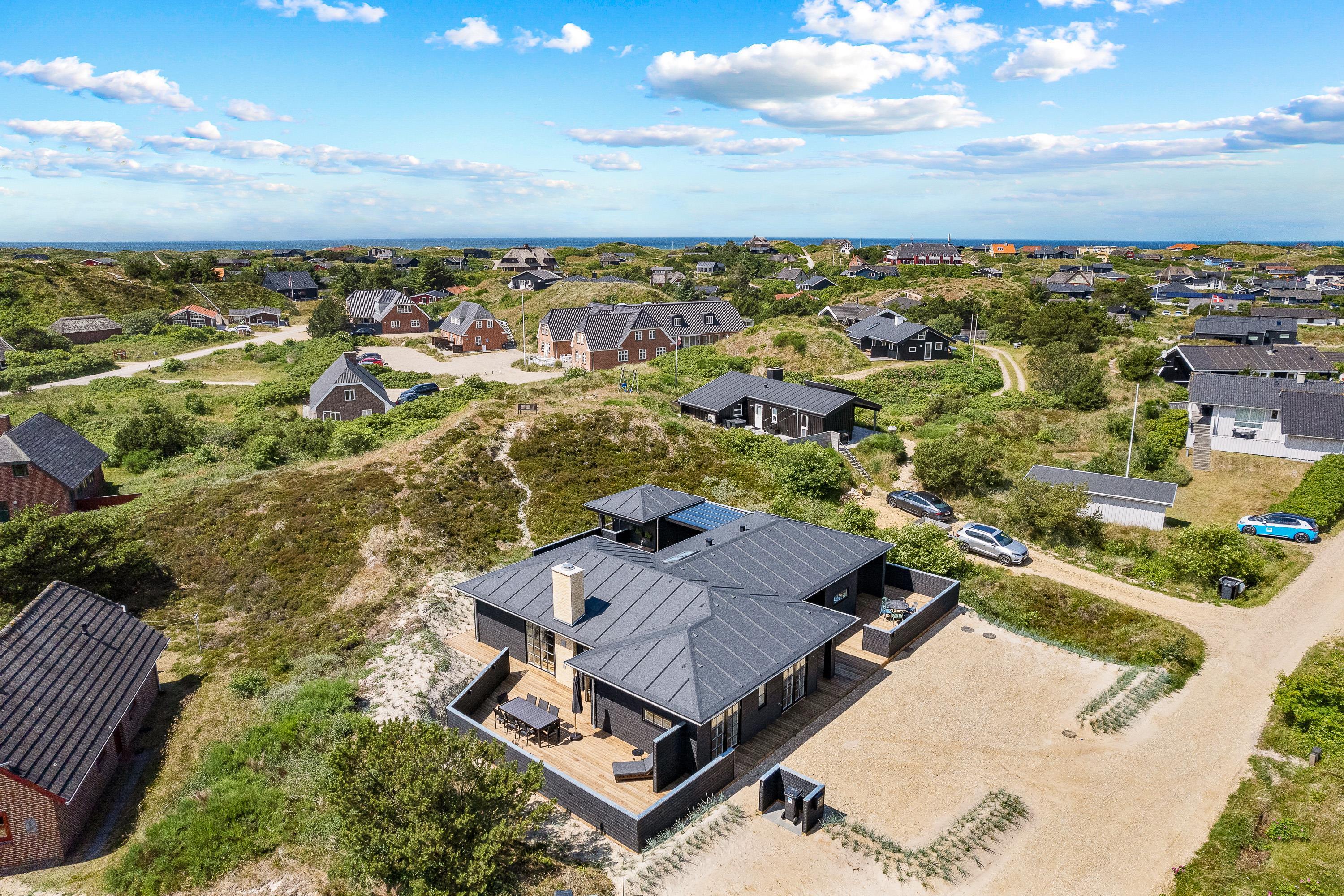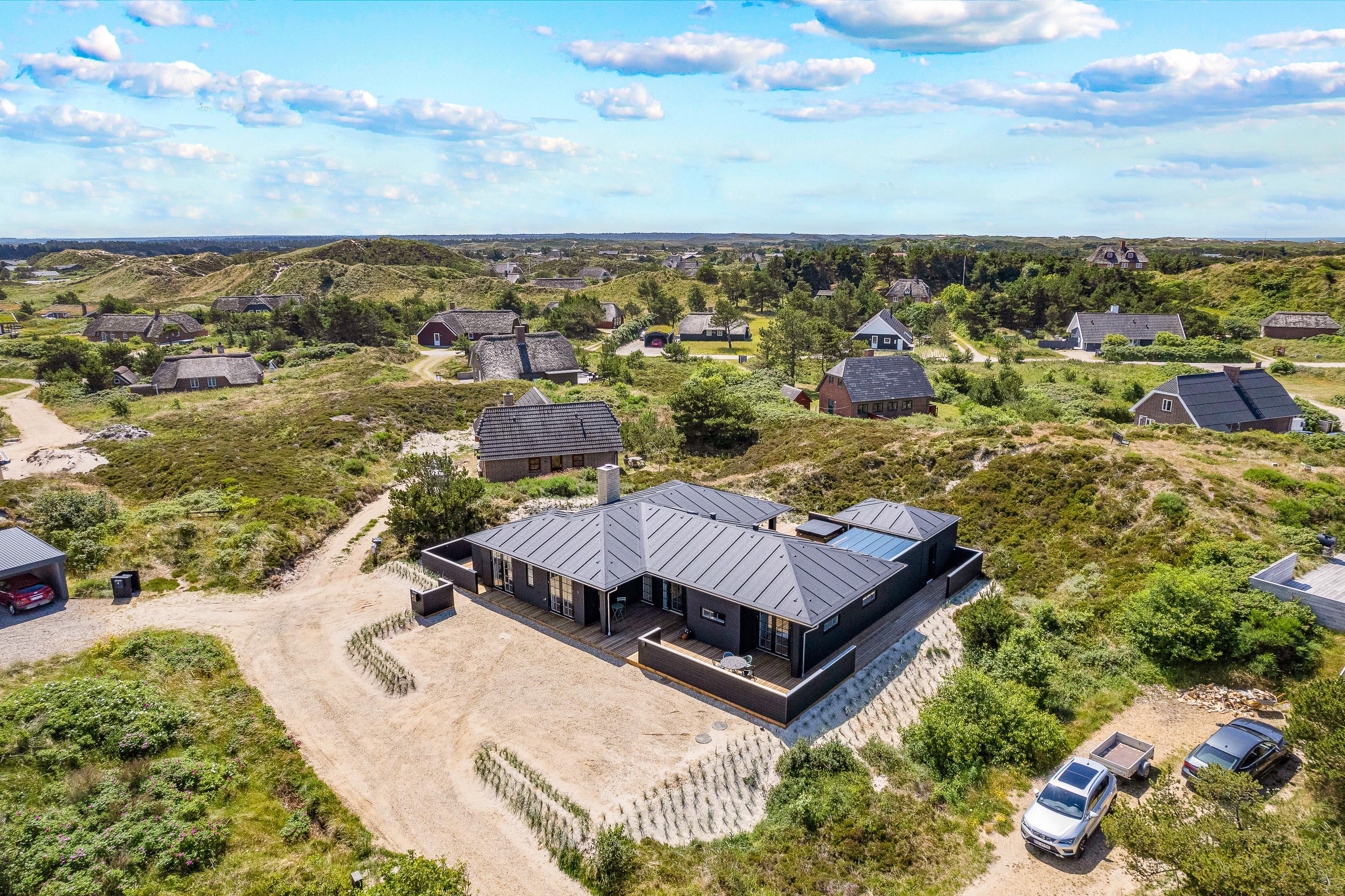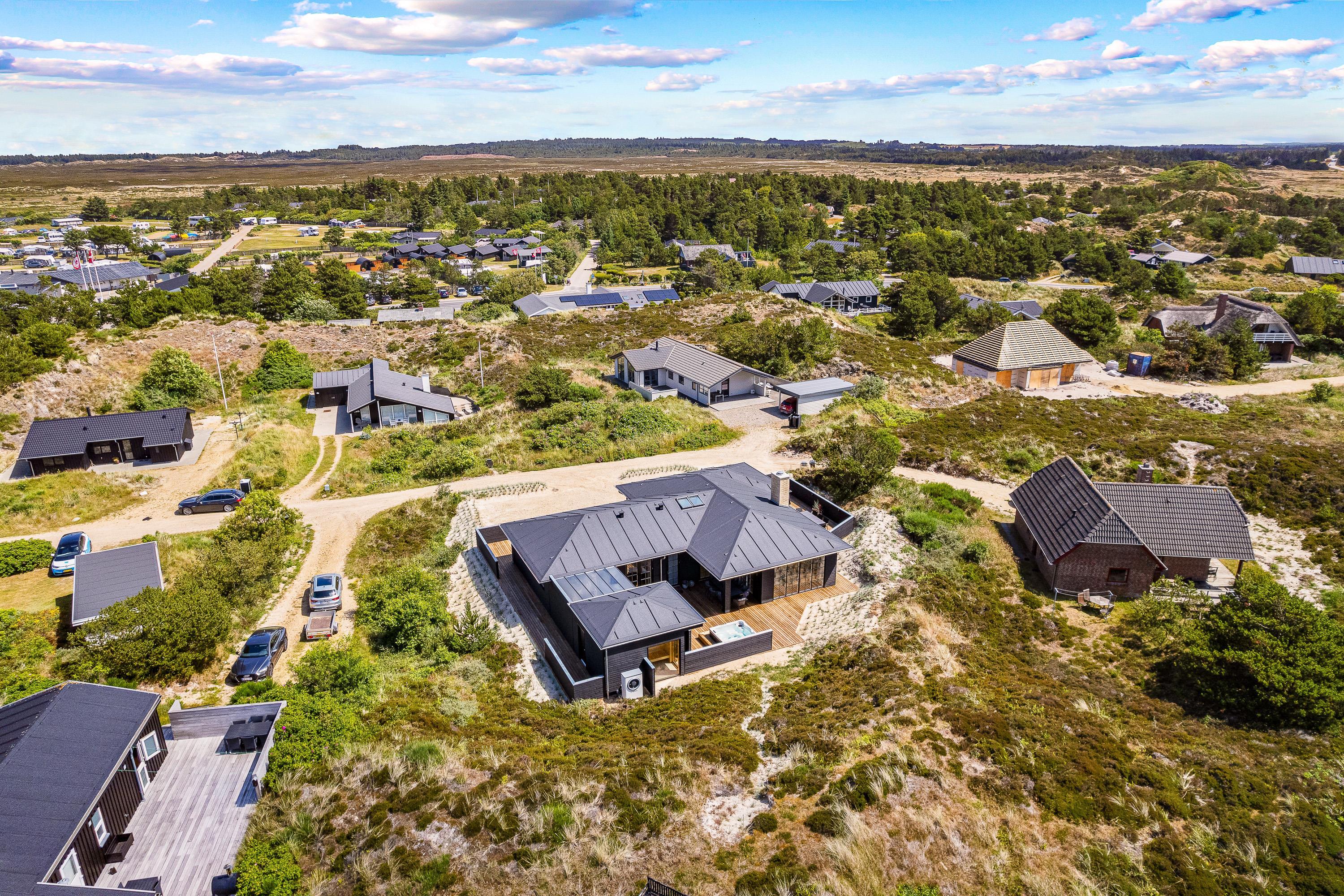 Til jer, der gerne vil holde en ferie i naturskønne omgivelser tæt på Vesterhavet og samtidig nyde en masse afslapning og luksus, er dette sommerhus på Frytlevej 8 det perfekte valg. Det moderne sommerhus, der er bygget i 2022, ligger forenden af en blind vej, kun 700 meter fra Vesterhavet og byder på blandt andet udespa, udesauna, udebruser og billardbord. Her er noget for enhver, og I vil uden tvivl få jer en dejlig ferie i dette sommerhus. Feriehuset rummer plads til 8 personer, og har I hund, er den også velkommen. Desuden er det muligt at lade jeres el-bil op ved feriehusets ladestander - eget kabel (type 2) medbringes.