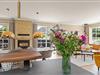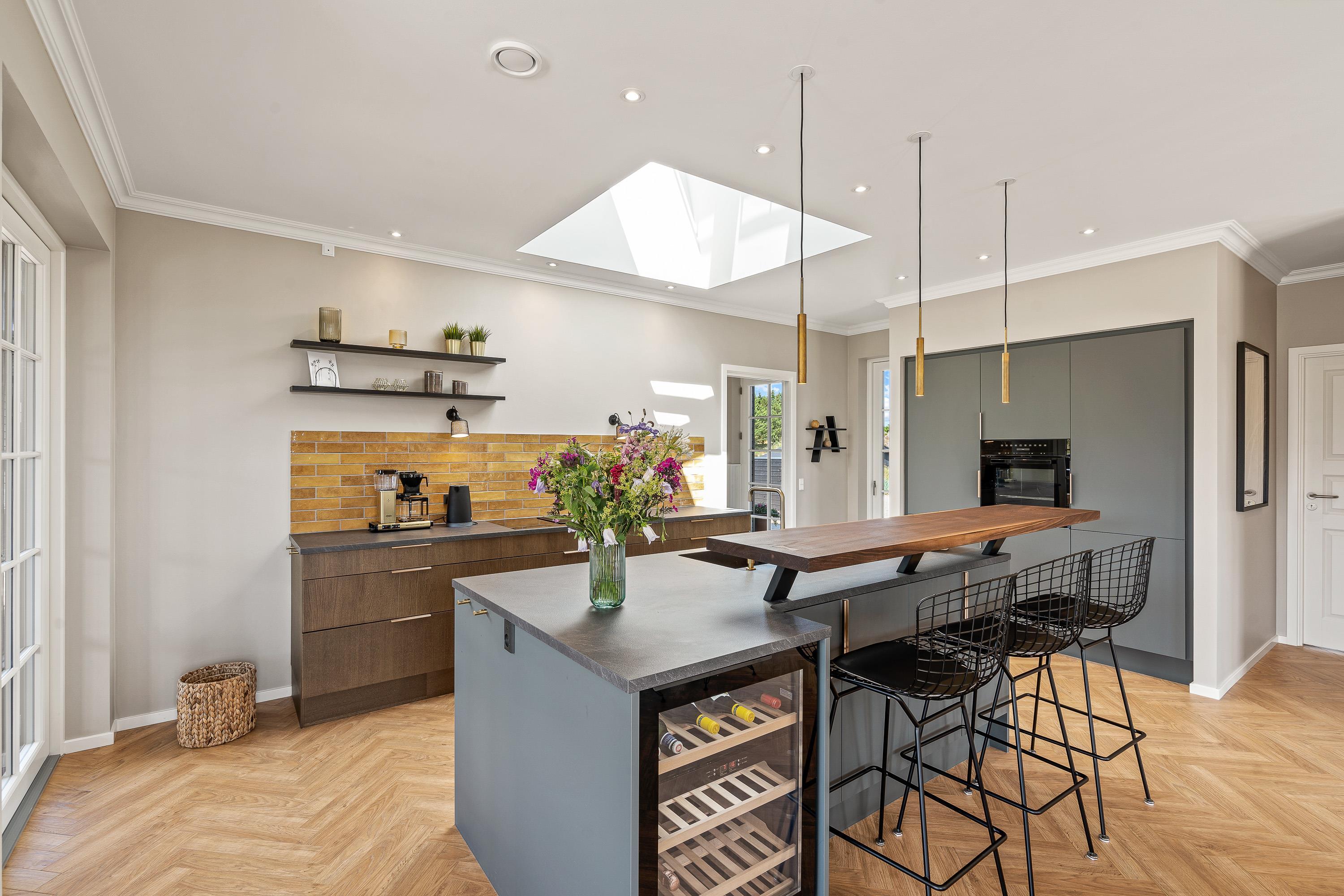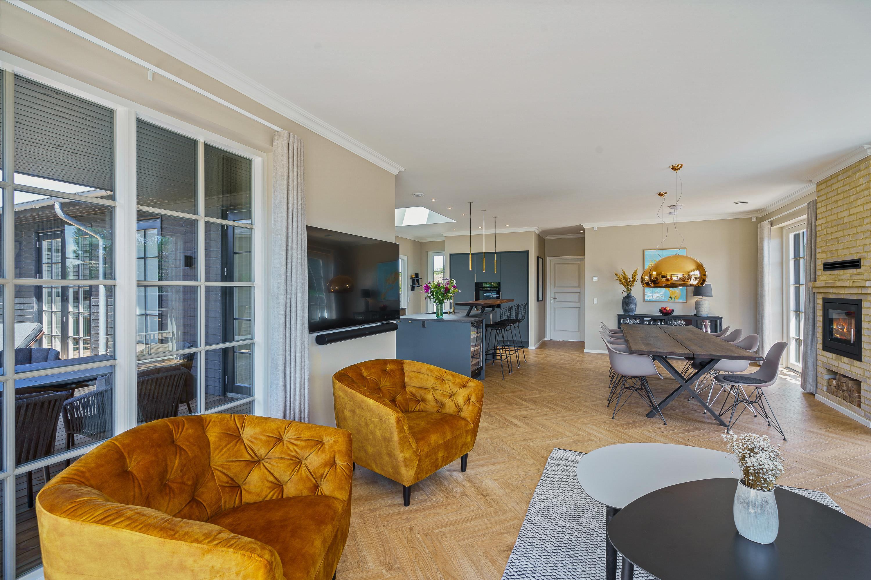 Moderne indretning med brændeovn