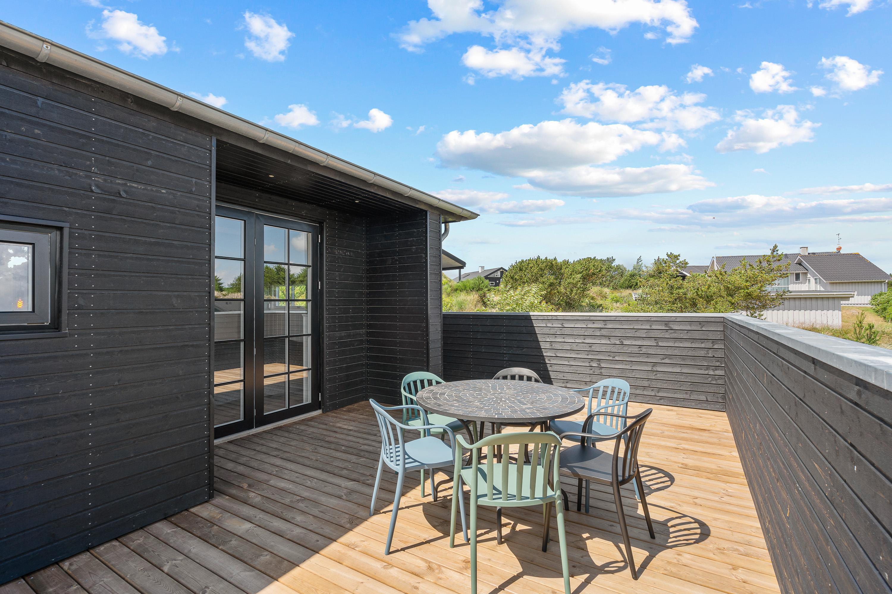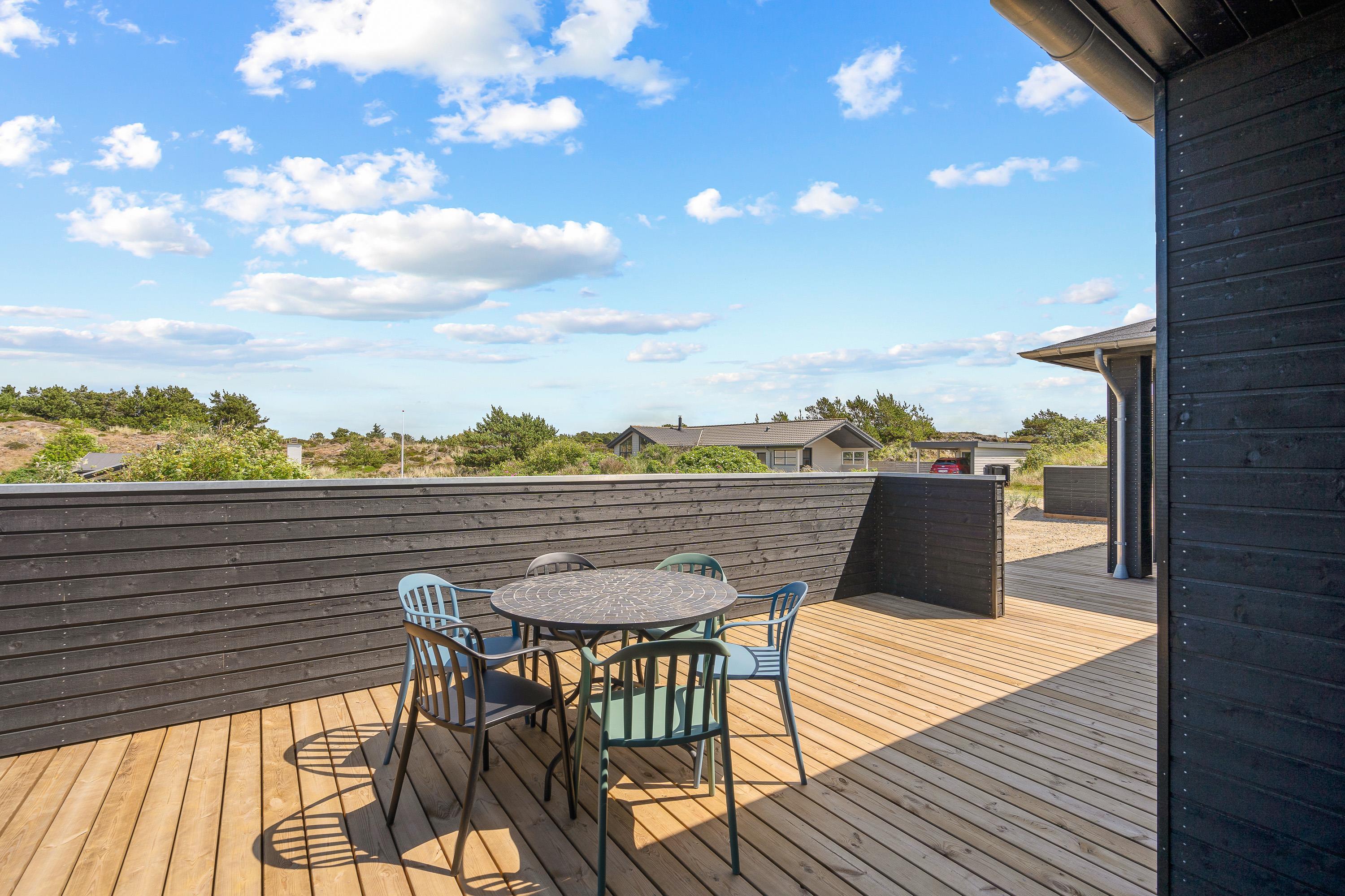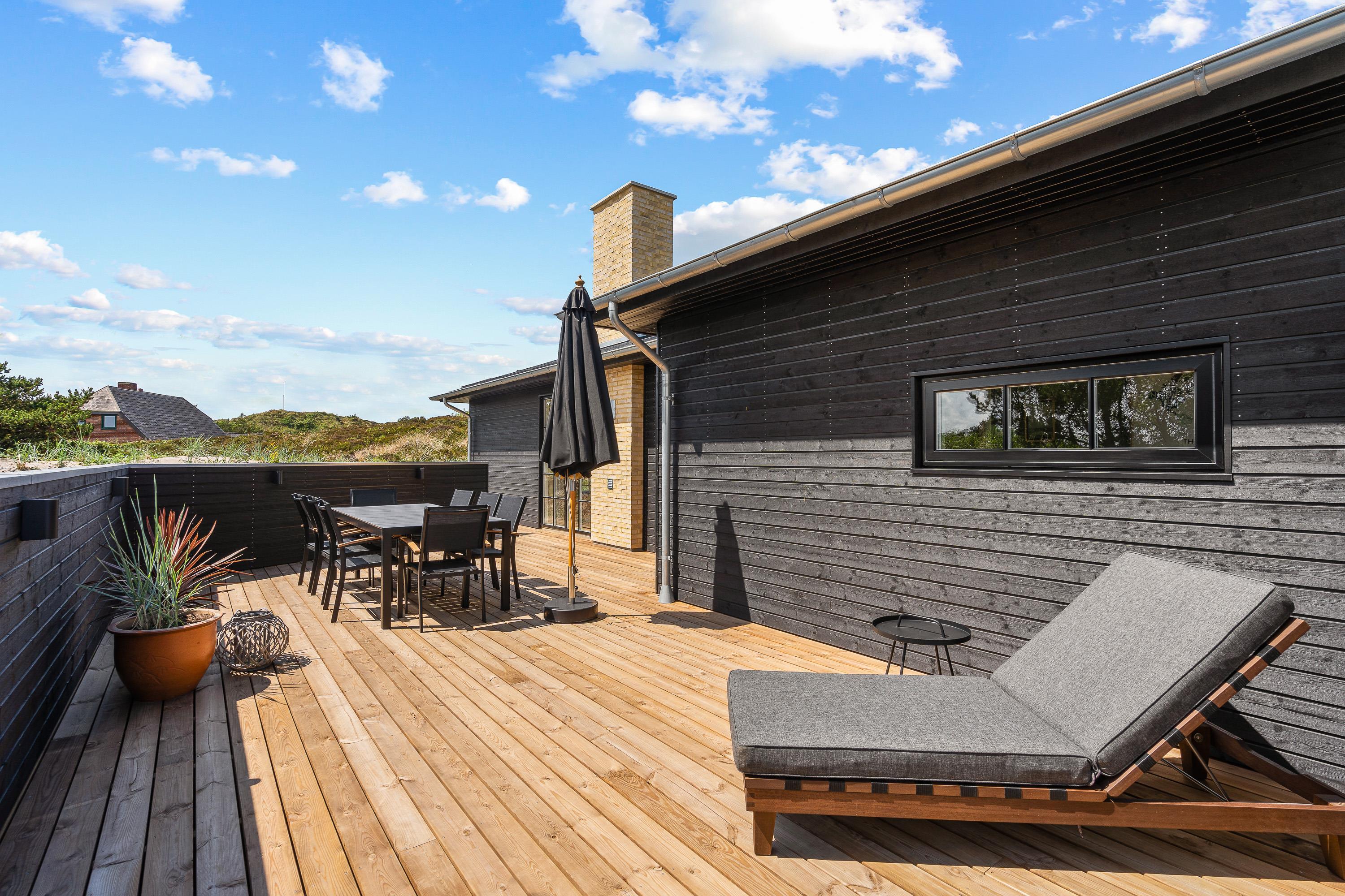 På sommerhusets terrasse venter jer flere lækre højdepunkter – her vil I komme til at tilbringe mange timer med masser af afslapning på jeres ferie. På terrassen finder I nemlig både en udespa og en udesauna, hvor afslapning er i centrum. Desuden er der en udebruser på terrassen, som I kan skylle jer under efter en tur til stranden.