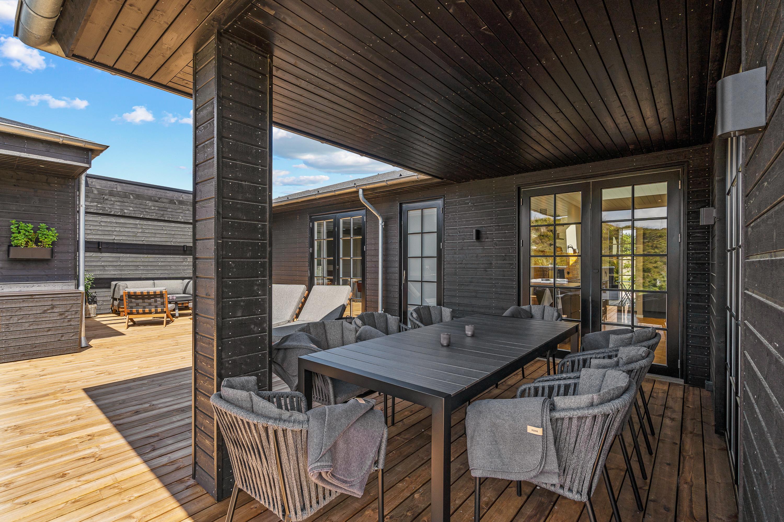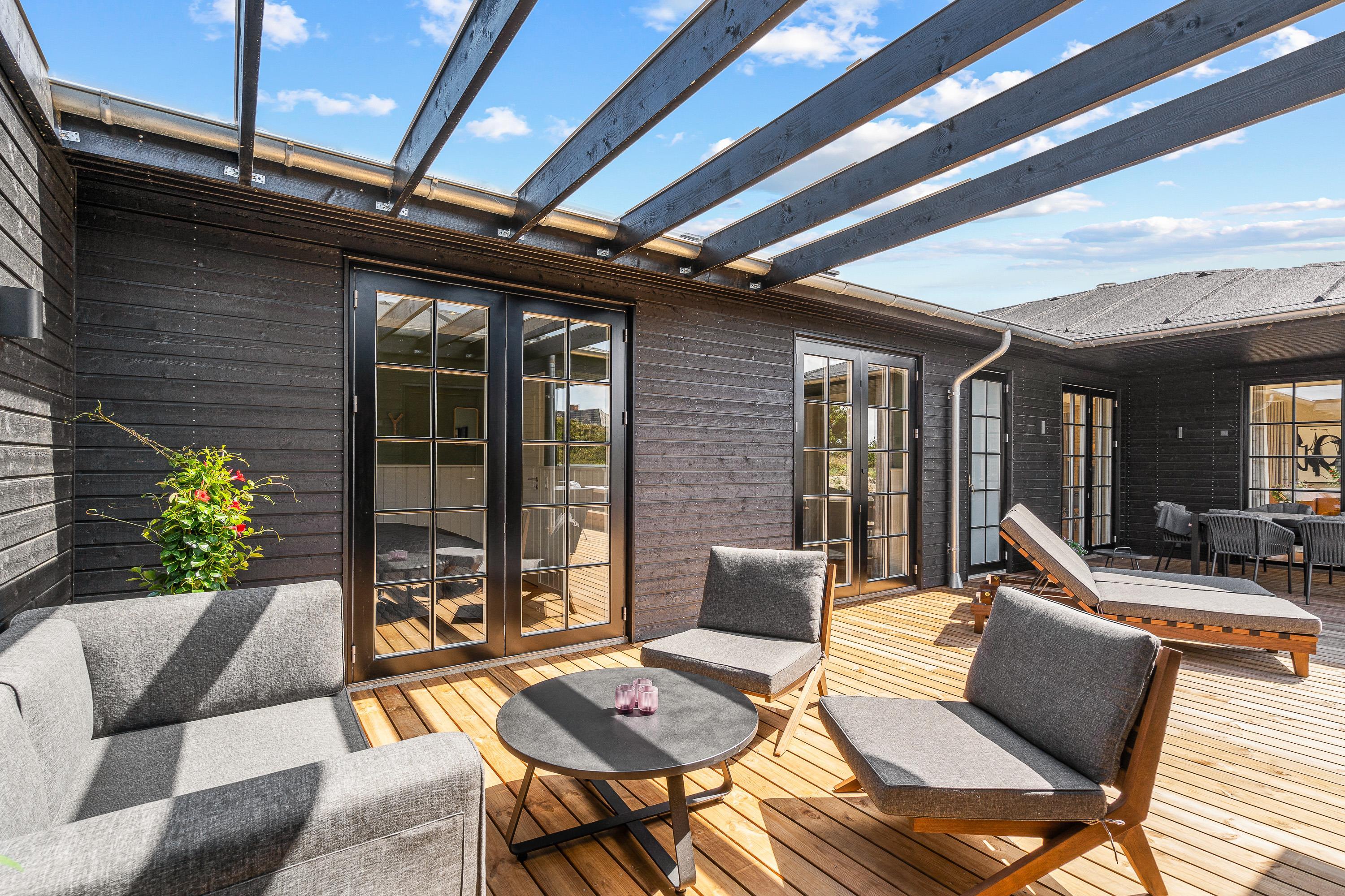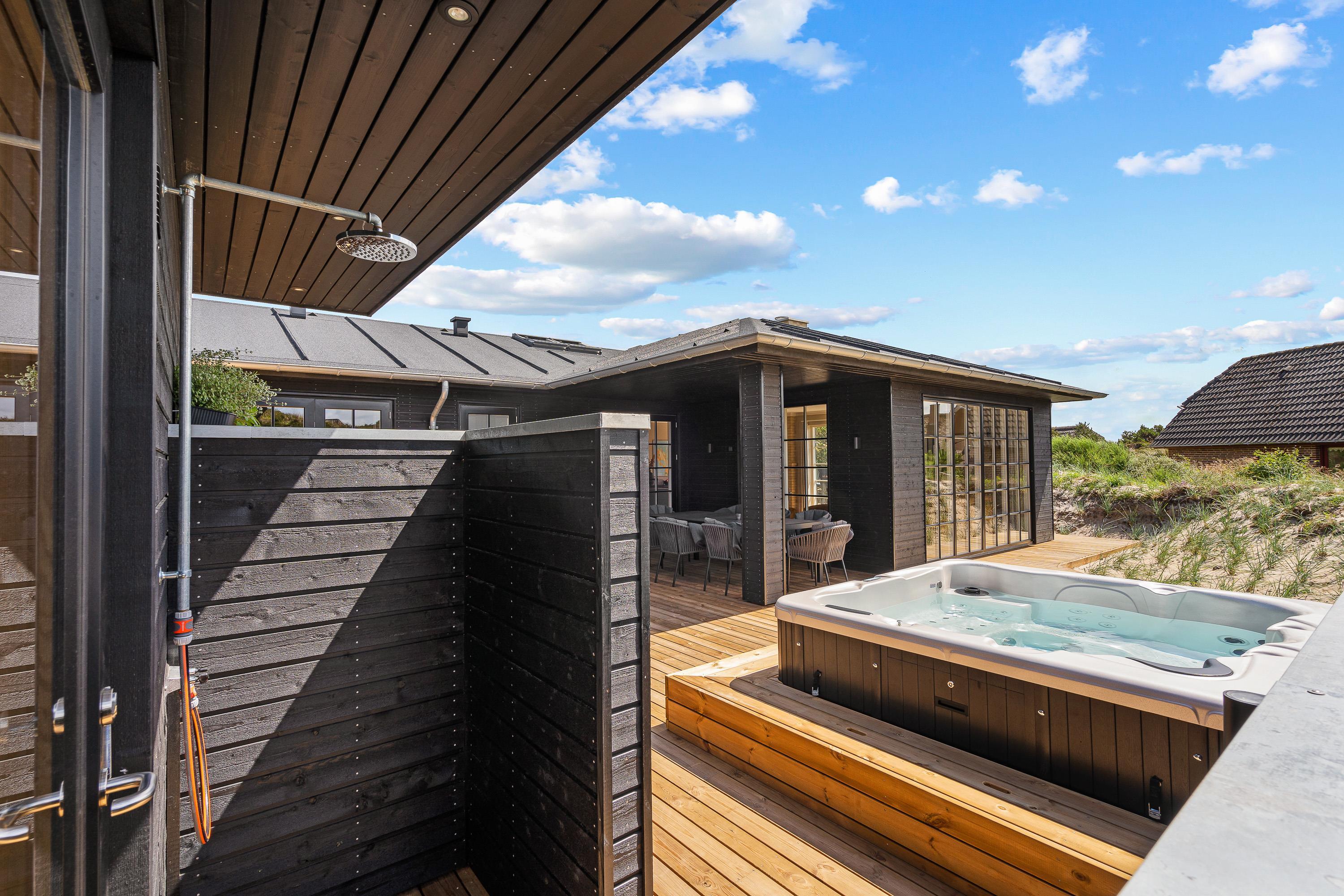 Lækker terrasse med udespa, udesauna og udebruser