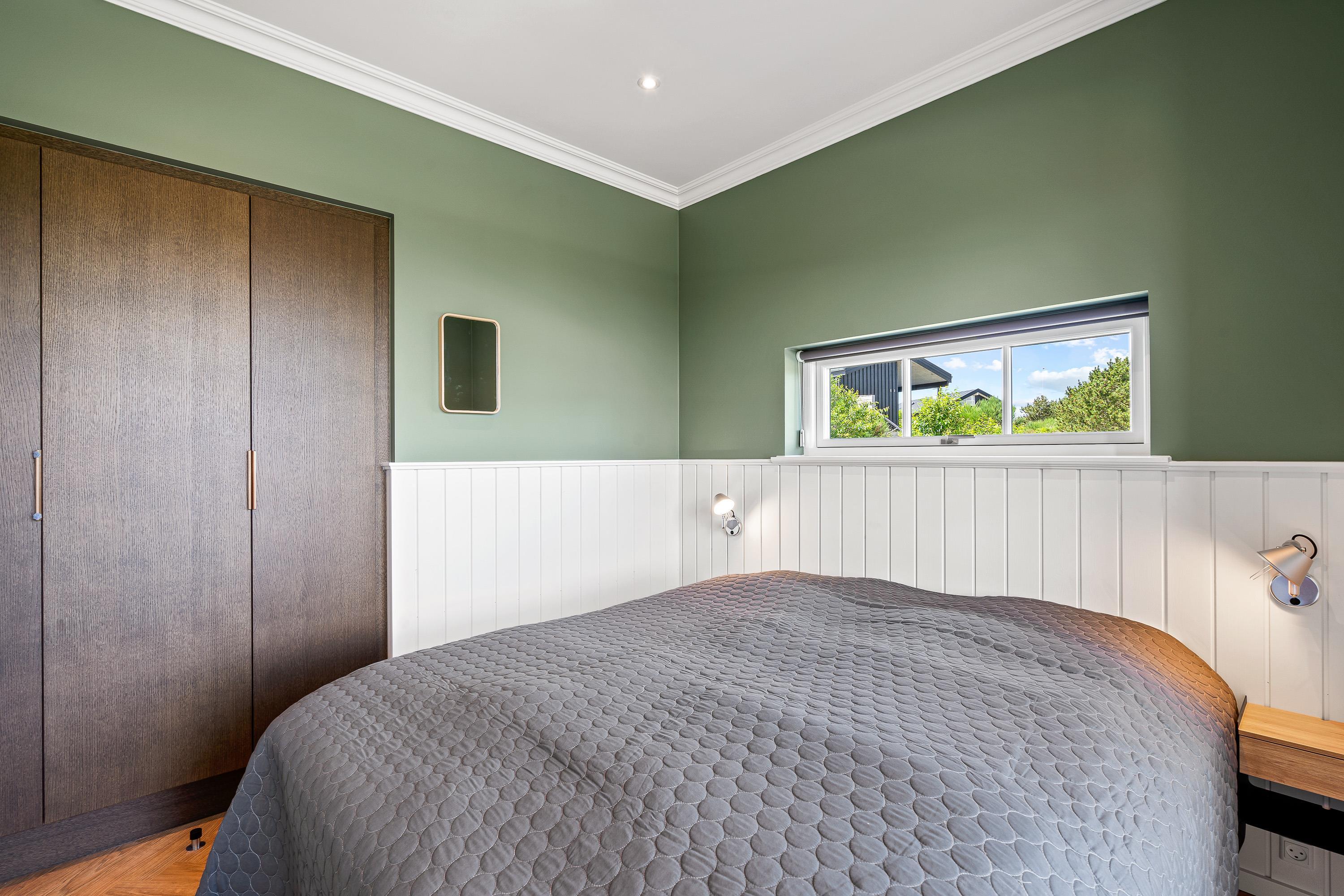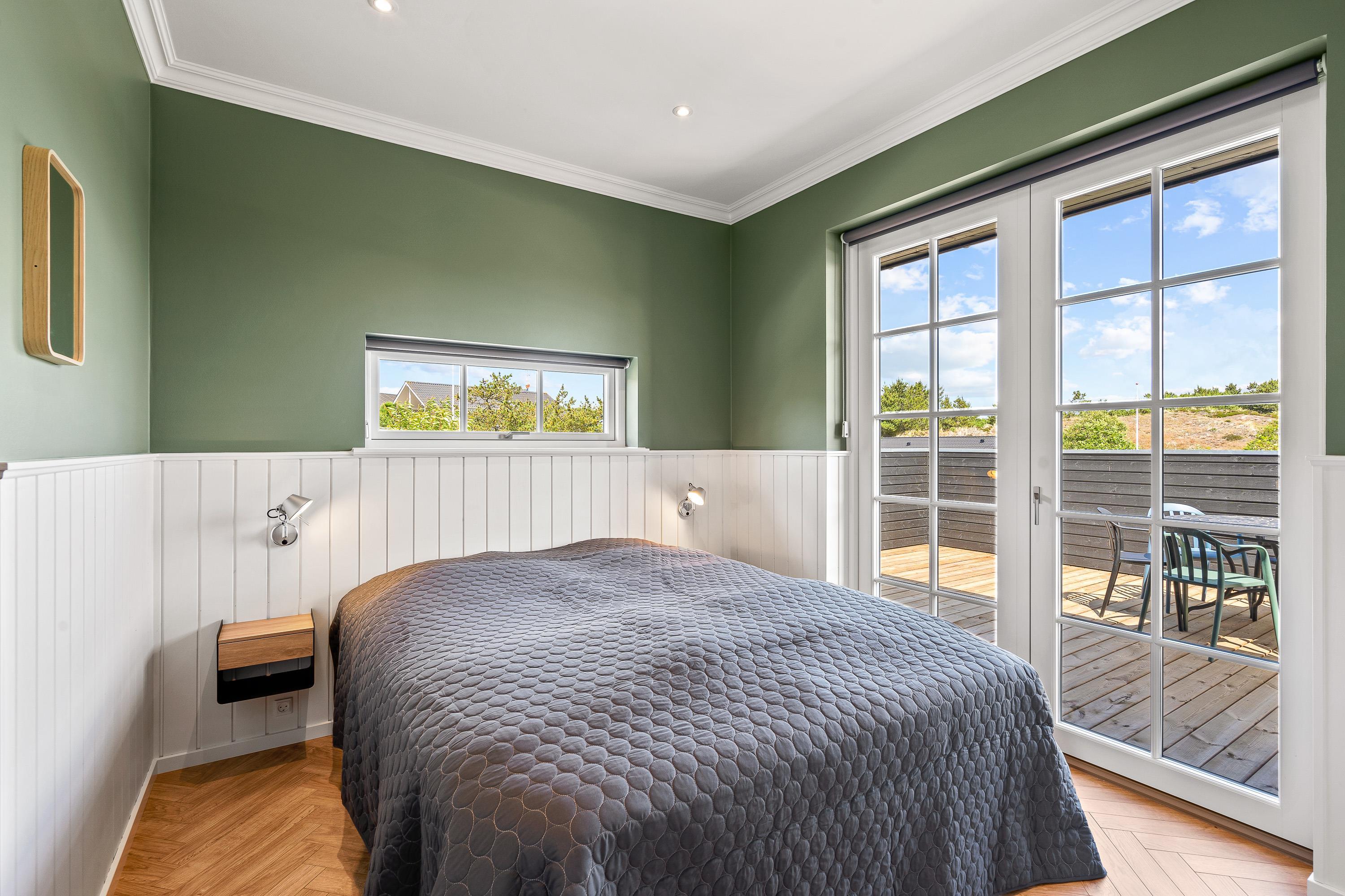 Sommerhusets indretning byder desuden på 4 gode soveværelser, der alle er indrettet med skønne dobbeltsenge, som I kan få jeres skønhedssøvn i på ferien. Derudover er der hele 2 badeværelser, der begge har gulvvarme - her skal I hverken stå i kø eller fryse jeres fødder om morgenen.