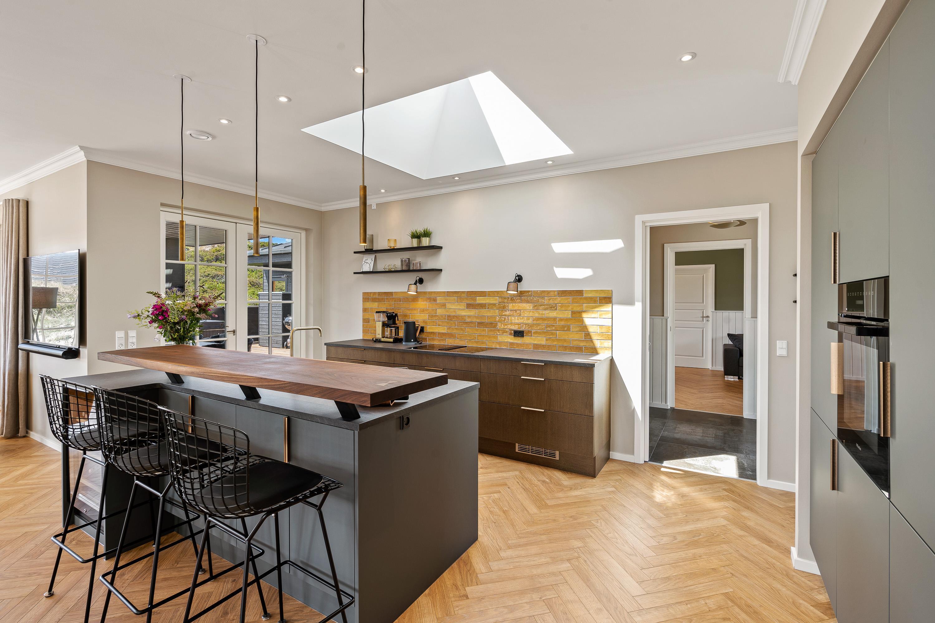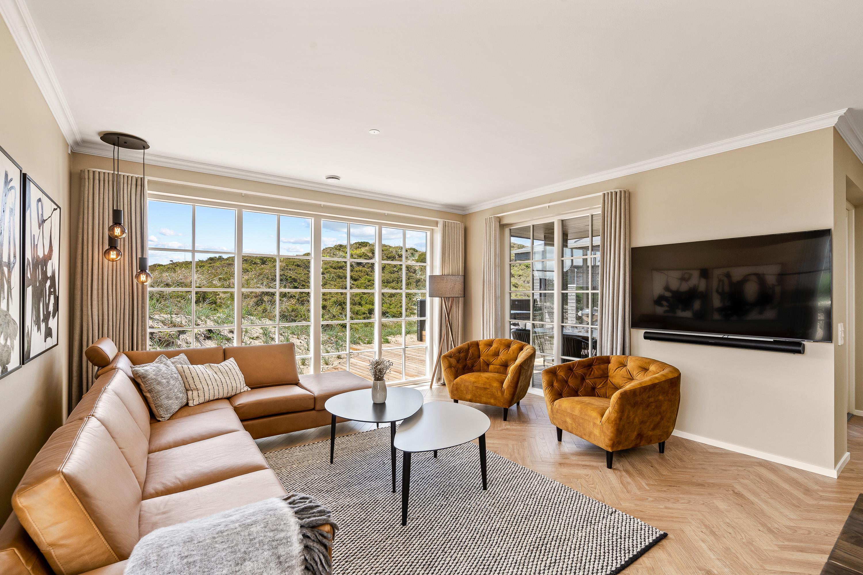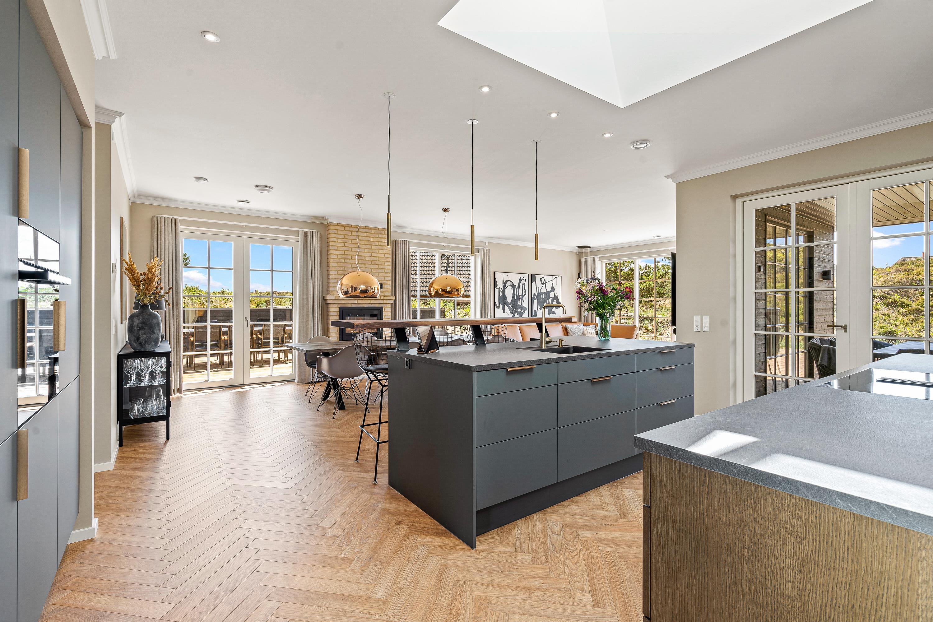 Når I først træder ind i sommerhuset på Frytlevej 8, vil I straks blive mødt af den moderne indretning, der er gennemgående på alle 165 kvadratmeter i feriehuset. Her vil I utvivlsomt føle jer godt tilpas på jeres ferie i Henne Strand!