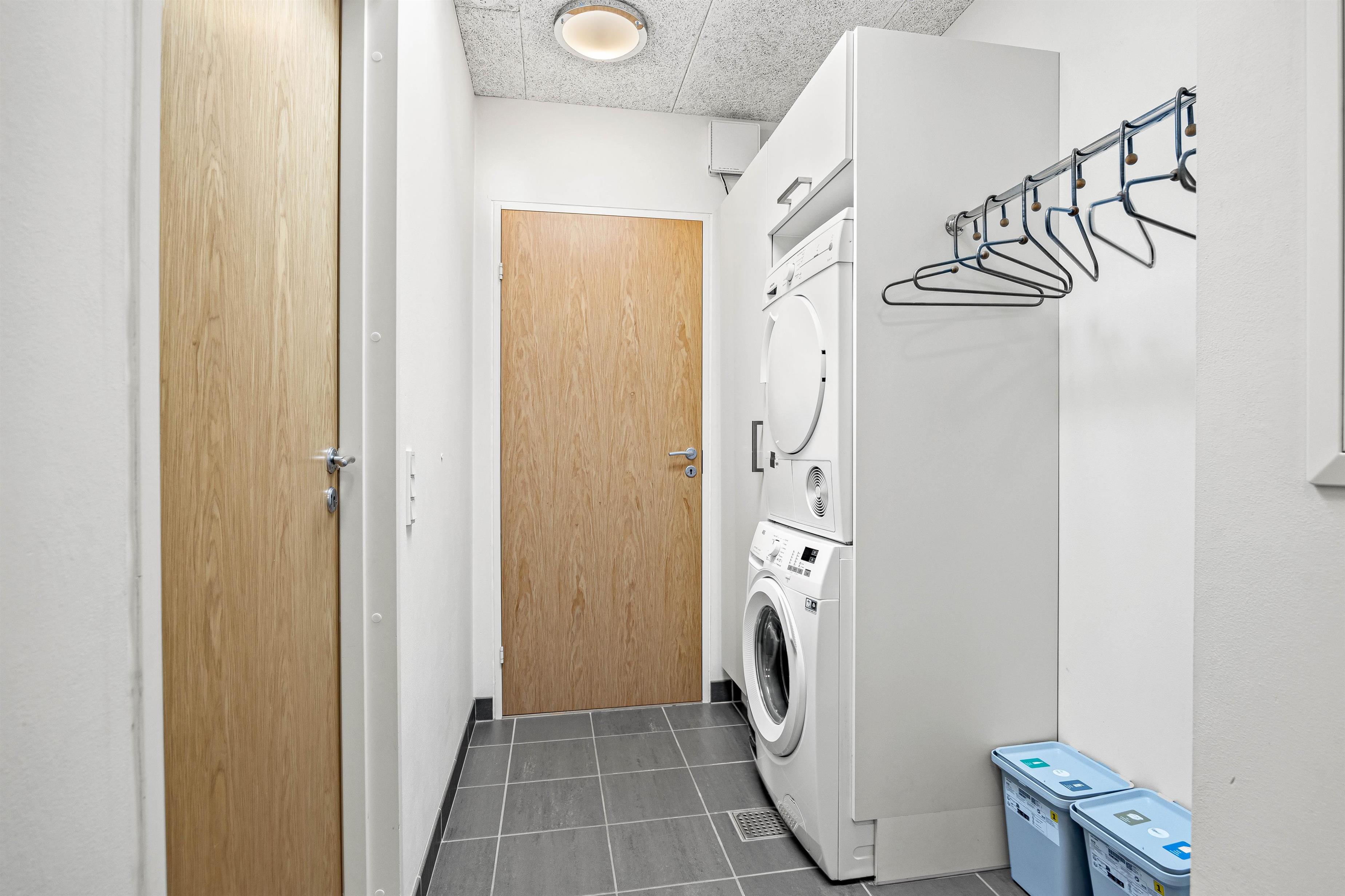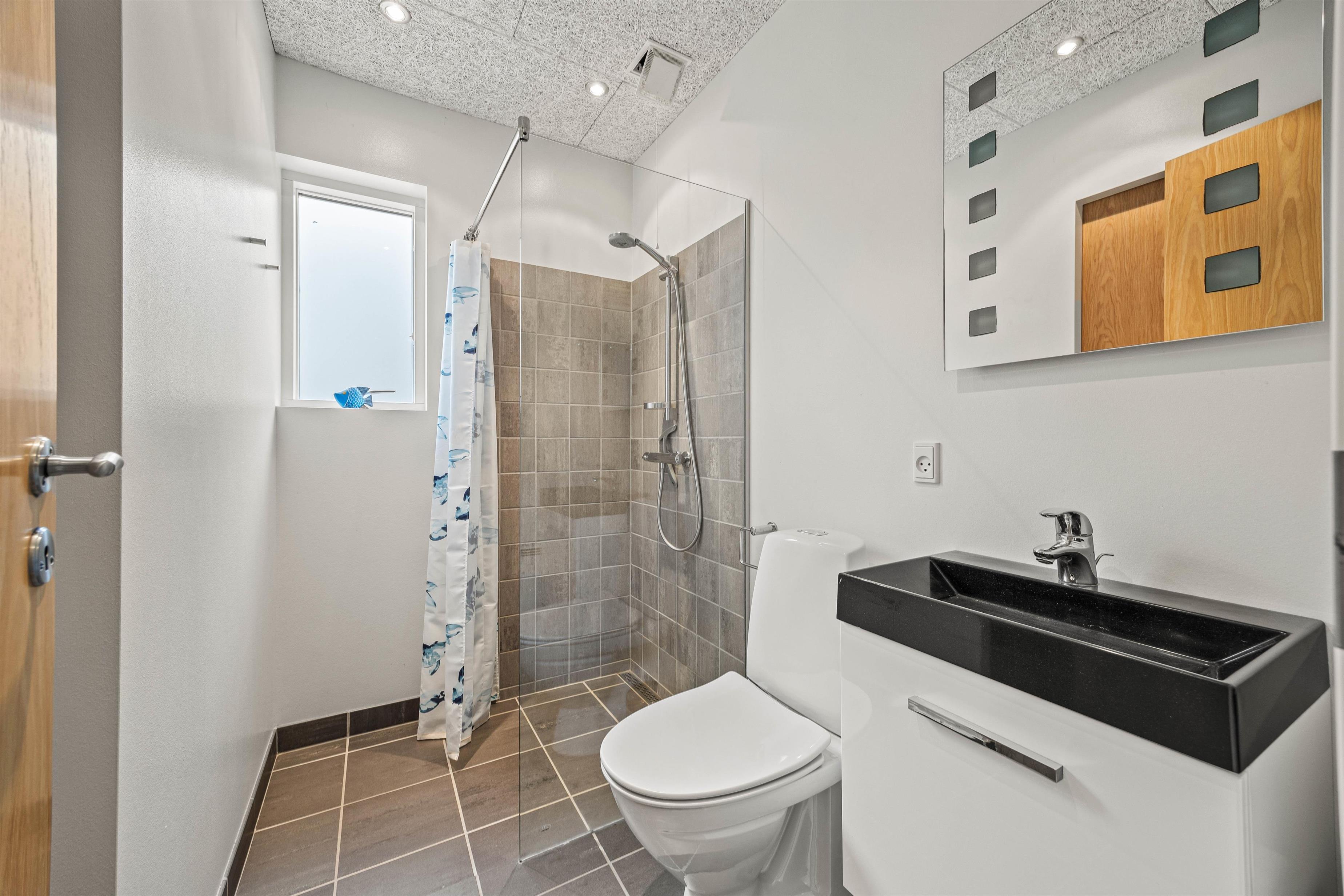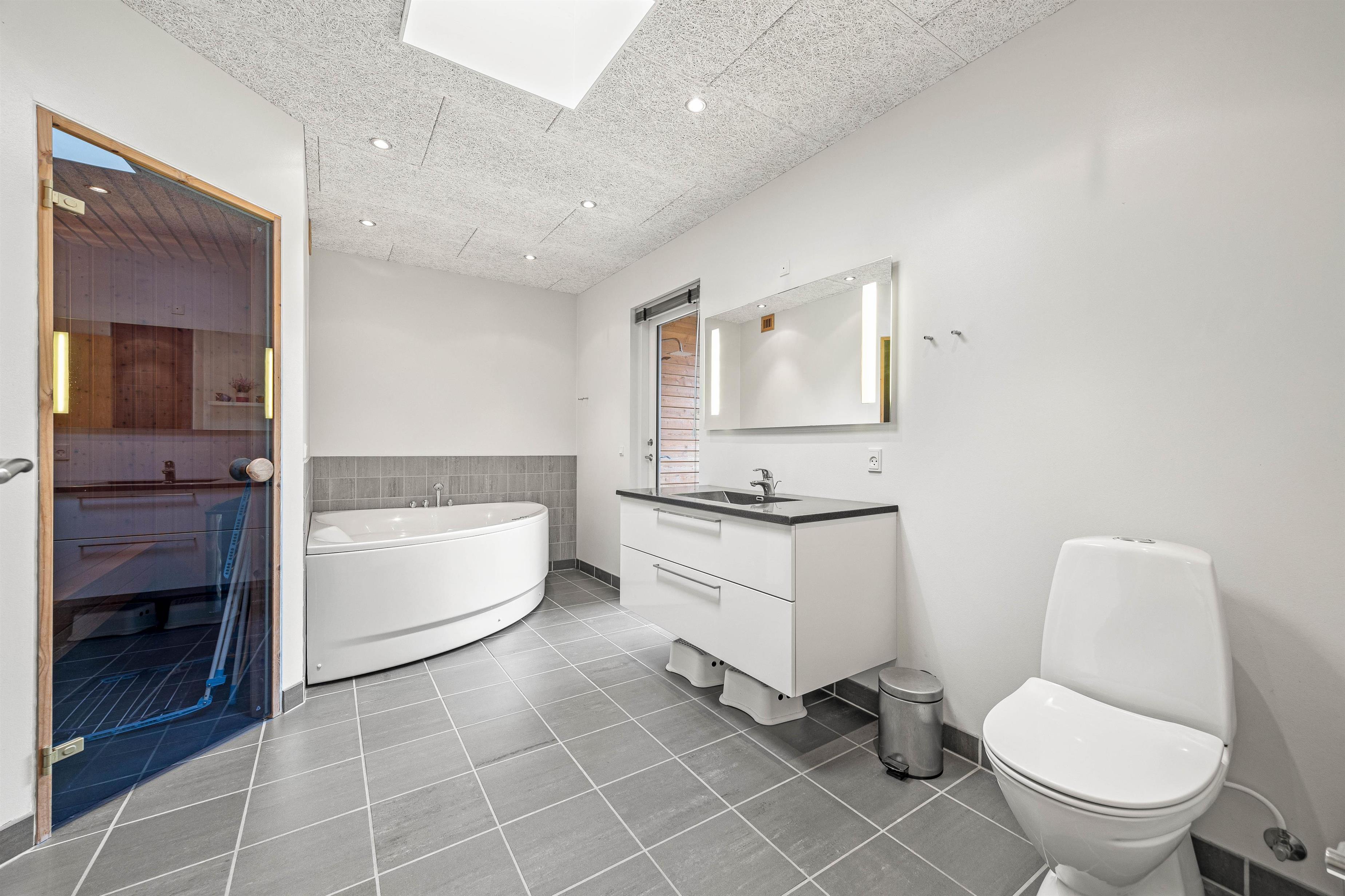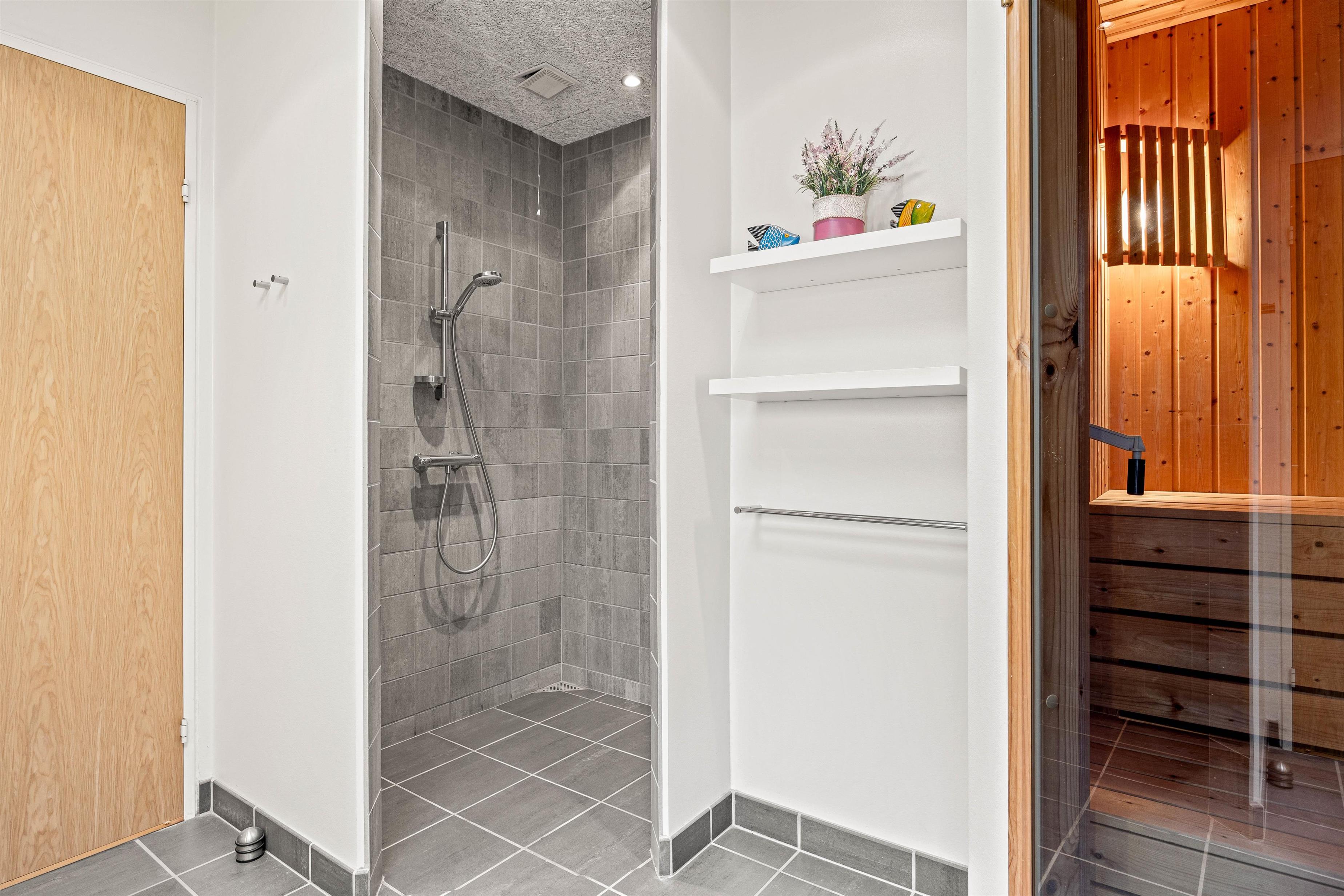 Sommerhuset er udstyret med 2 elegante badeværelser, der begge tilbyder gulvvarme for ekstra komfort. Et af sommerhusets store trækplastre er den indbydende tømmespa, der er perfekt til at slappe af efter en dag fuld af aktiviteter. Med både vaskemaskine og tørretumbler er det let at holde styr på vasketøjet under hele opholdet.