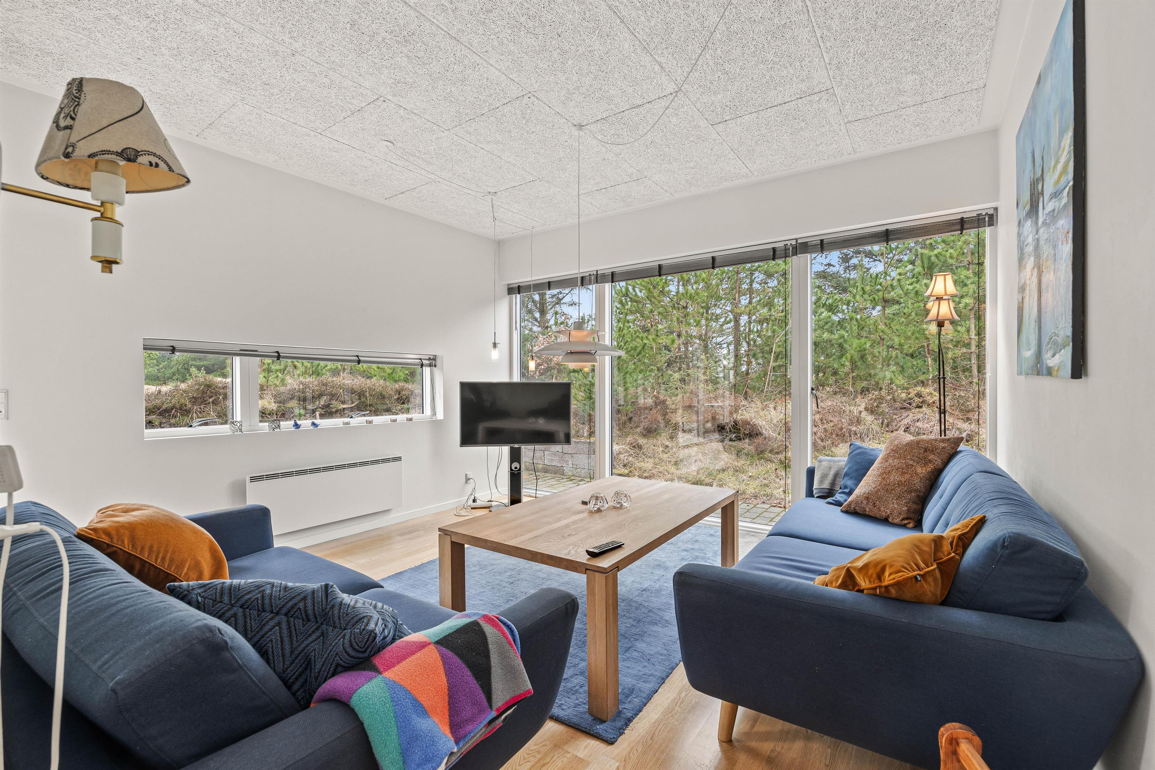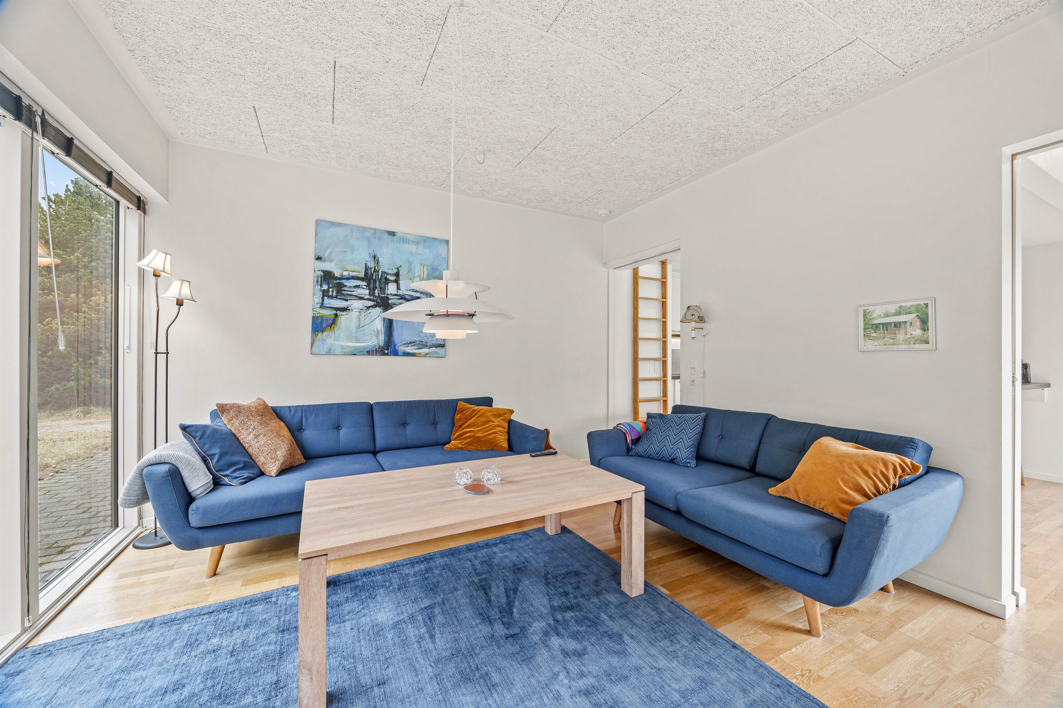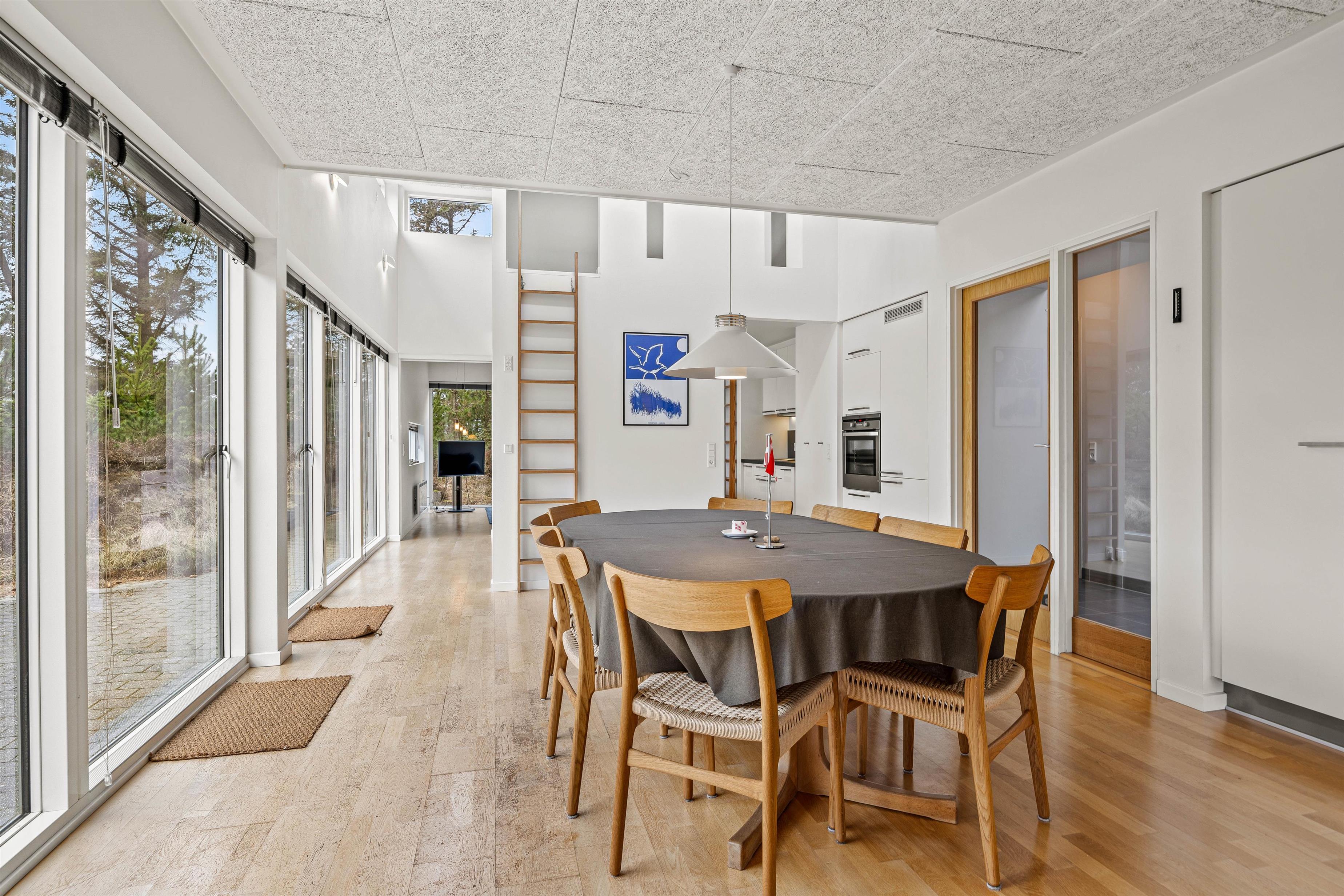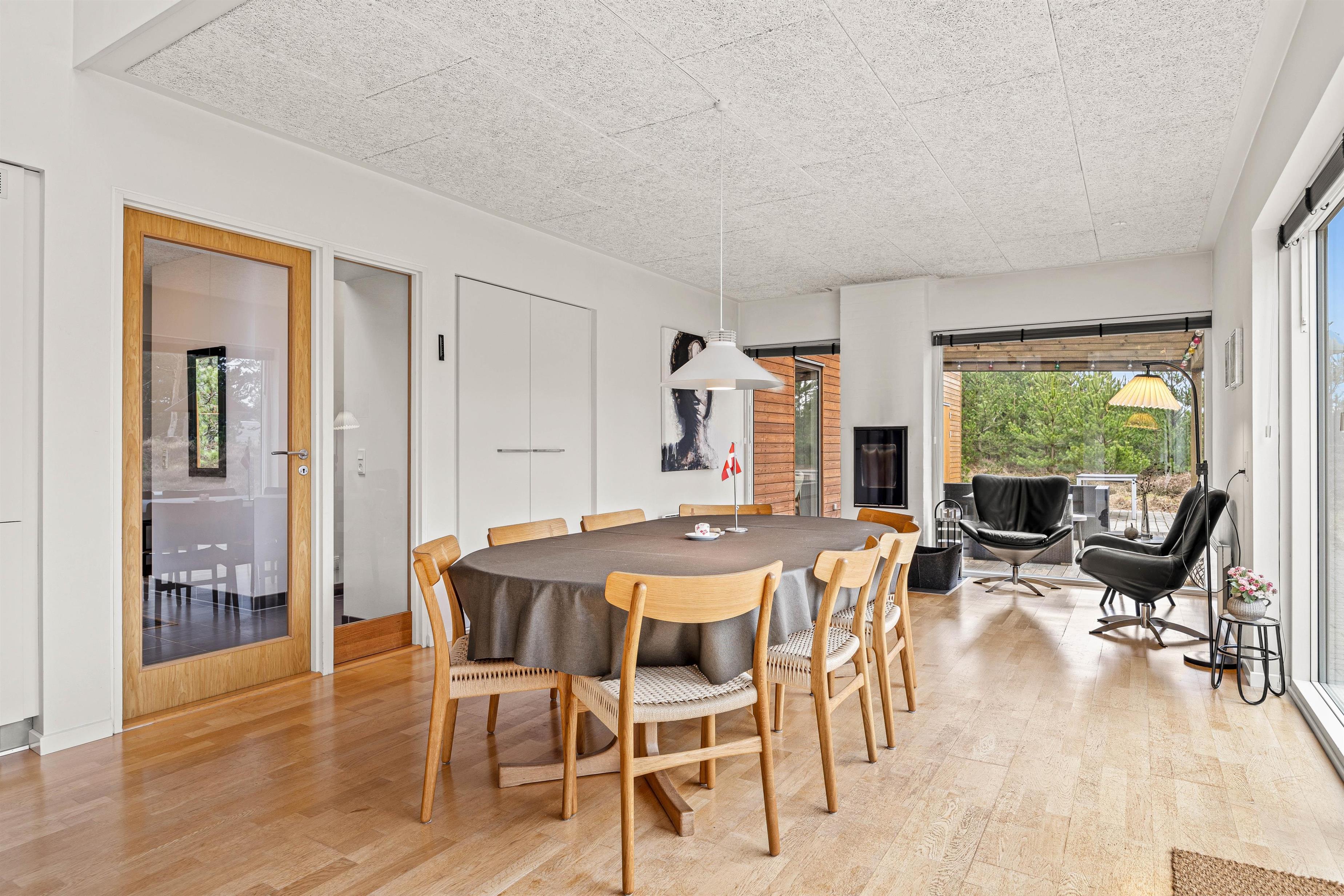 Indeni dette arkitekttegnede sommerhus venter en gennemført og komfortabel indretning. Den charmerende stue er udstyret med store vinduer, der slipper et naturligt lys ind i rummet og skaber en lys og hyggelig atmosfære. Brændeovnen spreder varme og hygge på kølige aftener, og Tv’et med Chromecast sikrer, at I kan nyde underholdning i verdensklasse. Udover brændeovnen sikrer luft til luft varmepumpe et behageligt indeklima året rundt.