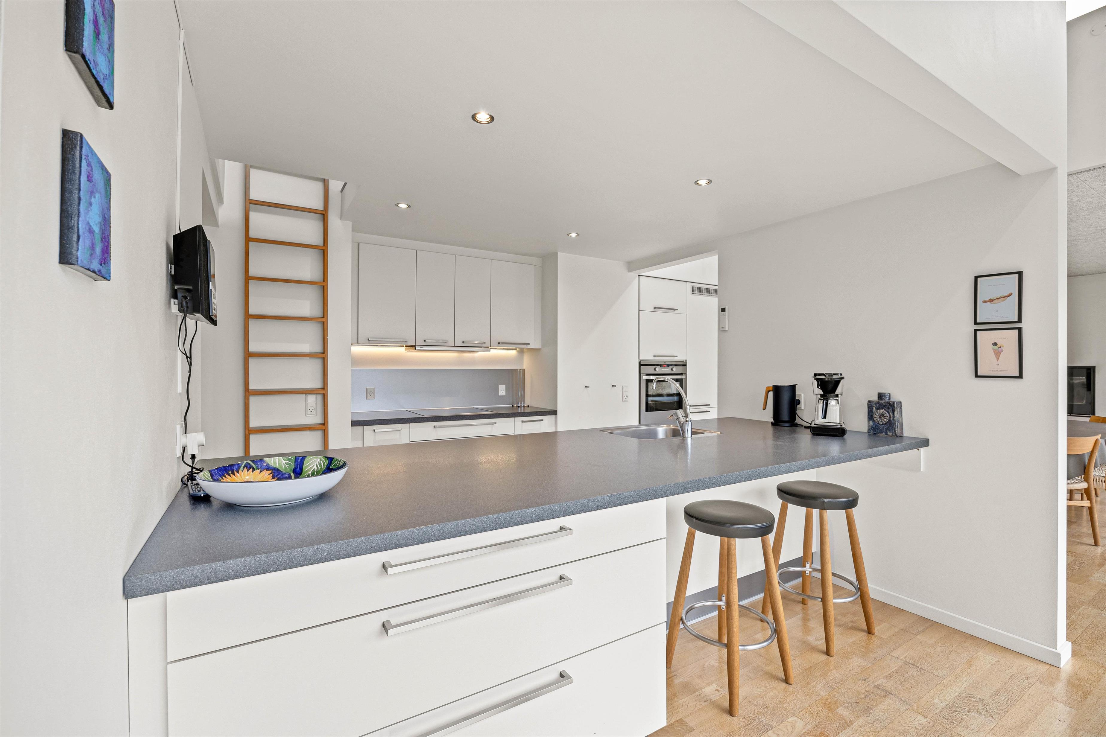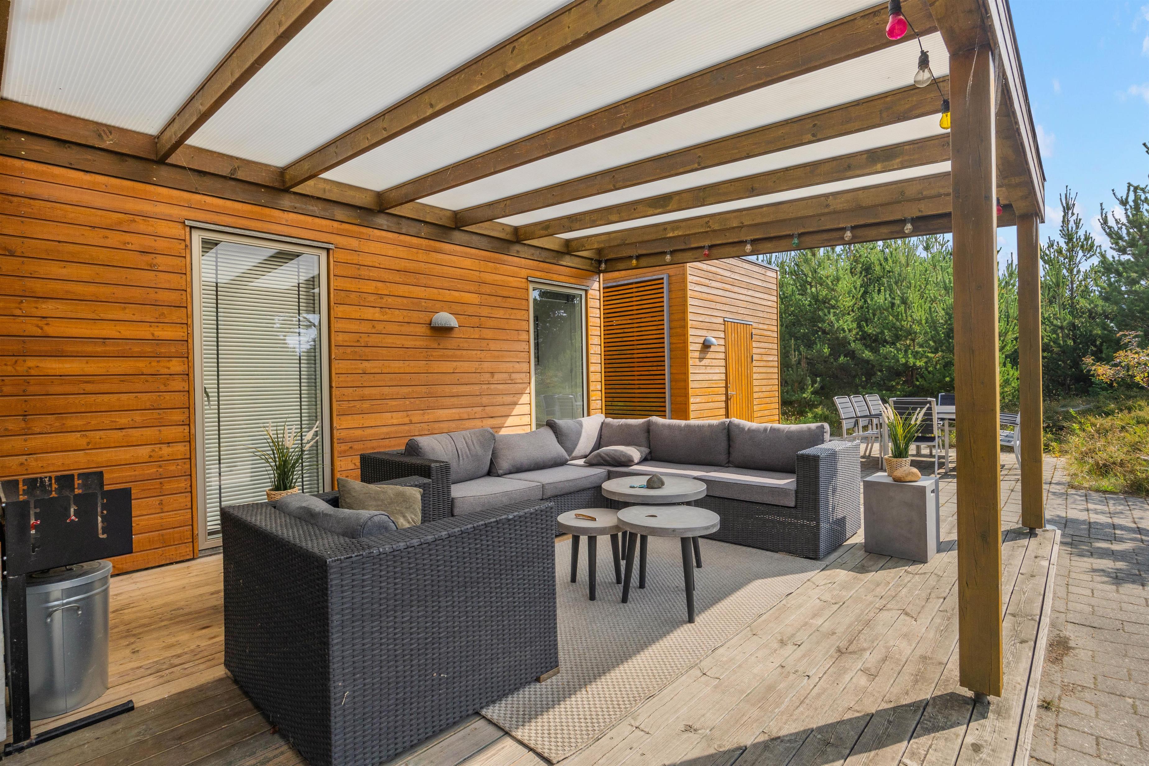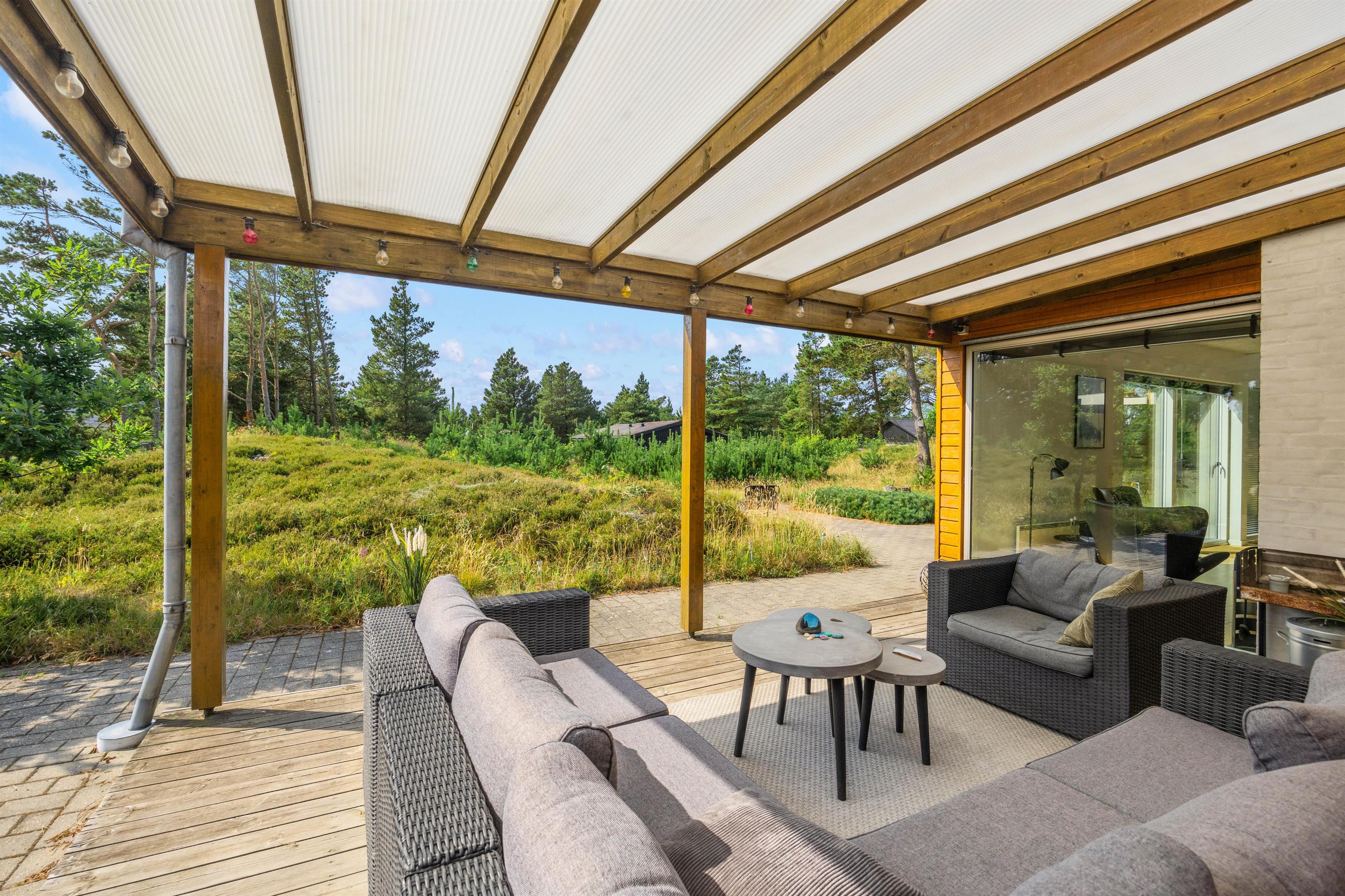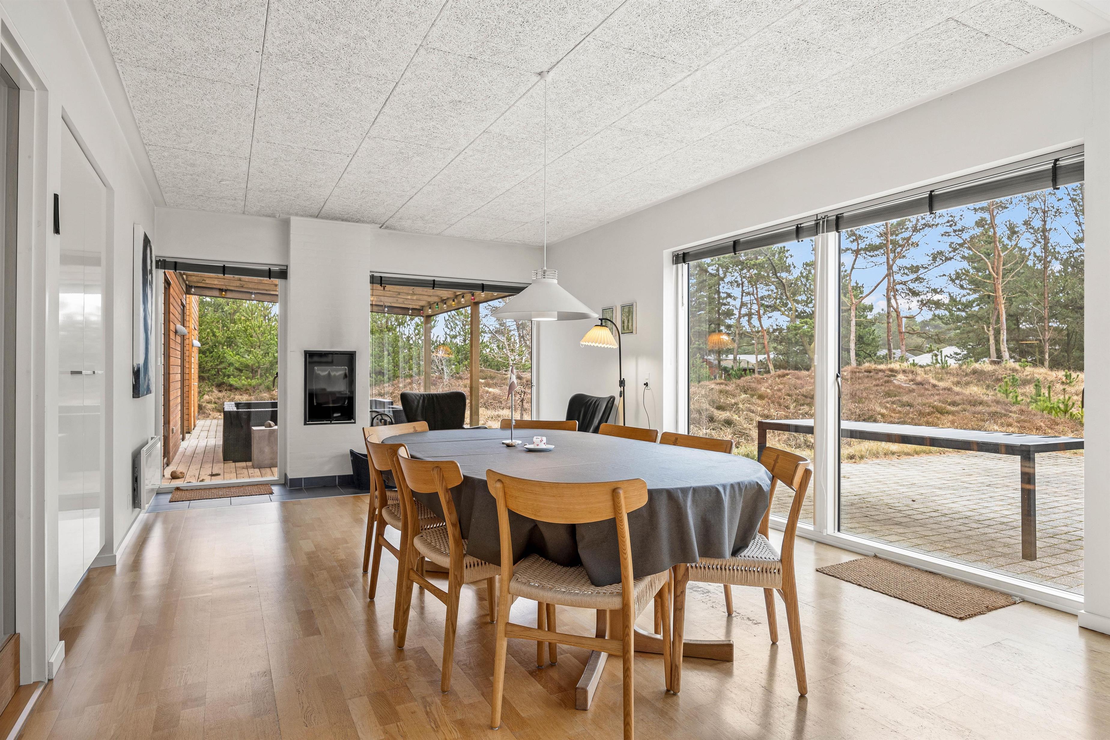 Indeni dette arkitekttegnede sommerhus venter en gennemført og komfortabel indretning. Den charmerende stue er udstyret med store vinduer, der slipper et naturligt lys ind i rummet og skaber en lys og hyggelig atmosfære. Brændeovnen spreder varme og hygge på kølige aftener, og Tv’et med Chromecast sikrer, at I kan nyde underholdning i verdensklasse. Udover brændeovnen sikrer luft til luft varmepumpe et behageligt indeklima året rundt.