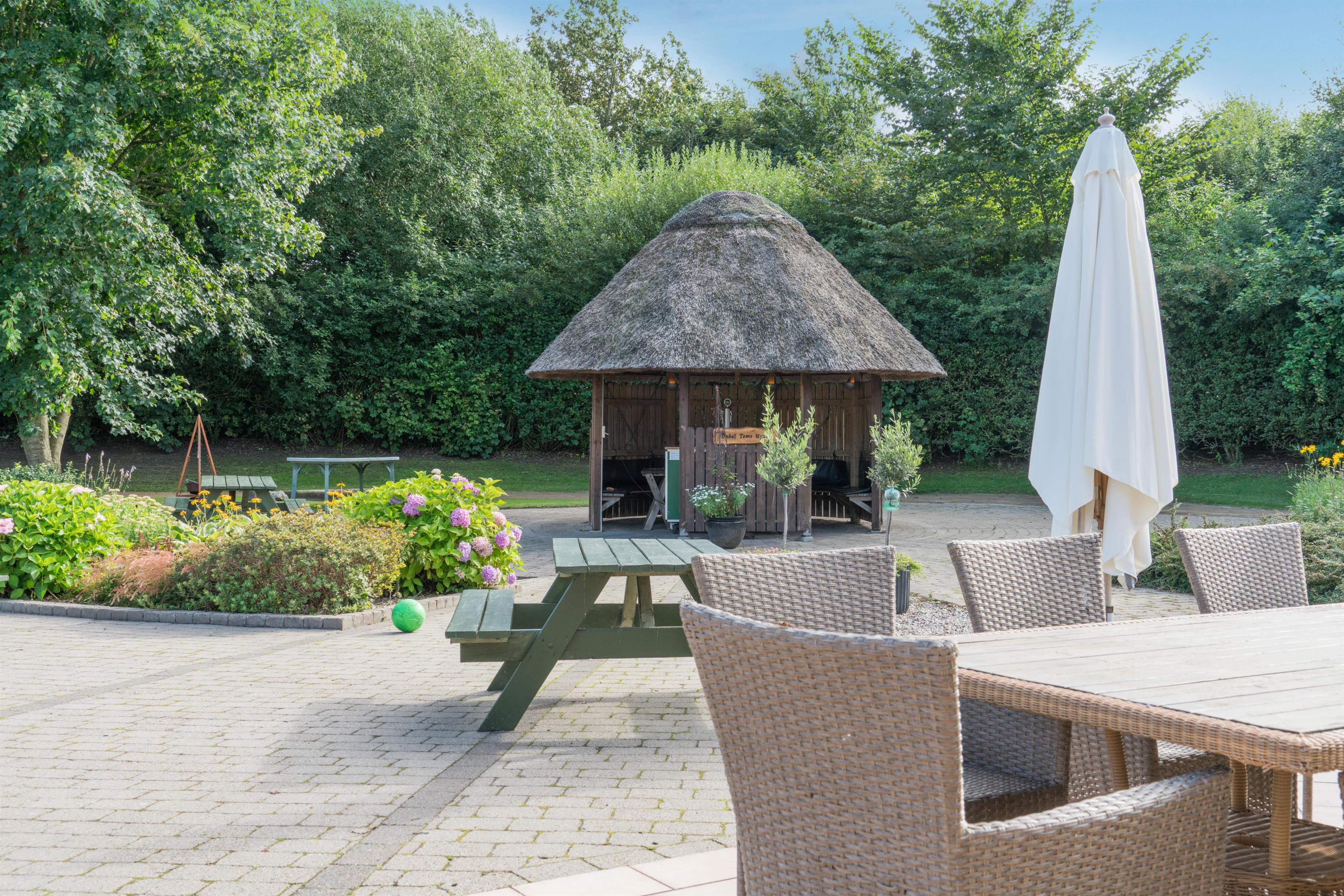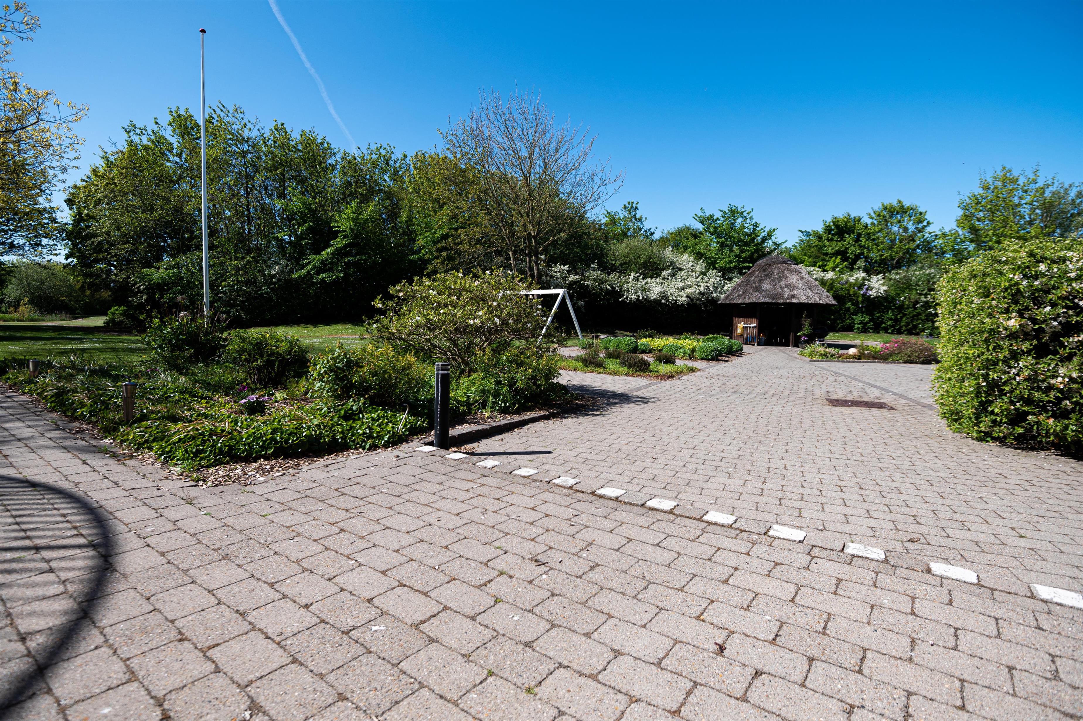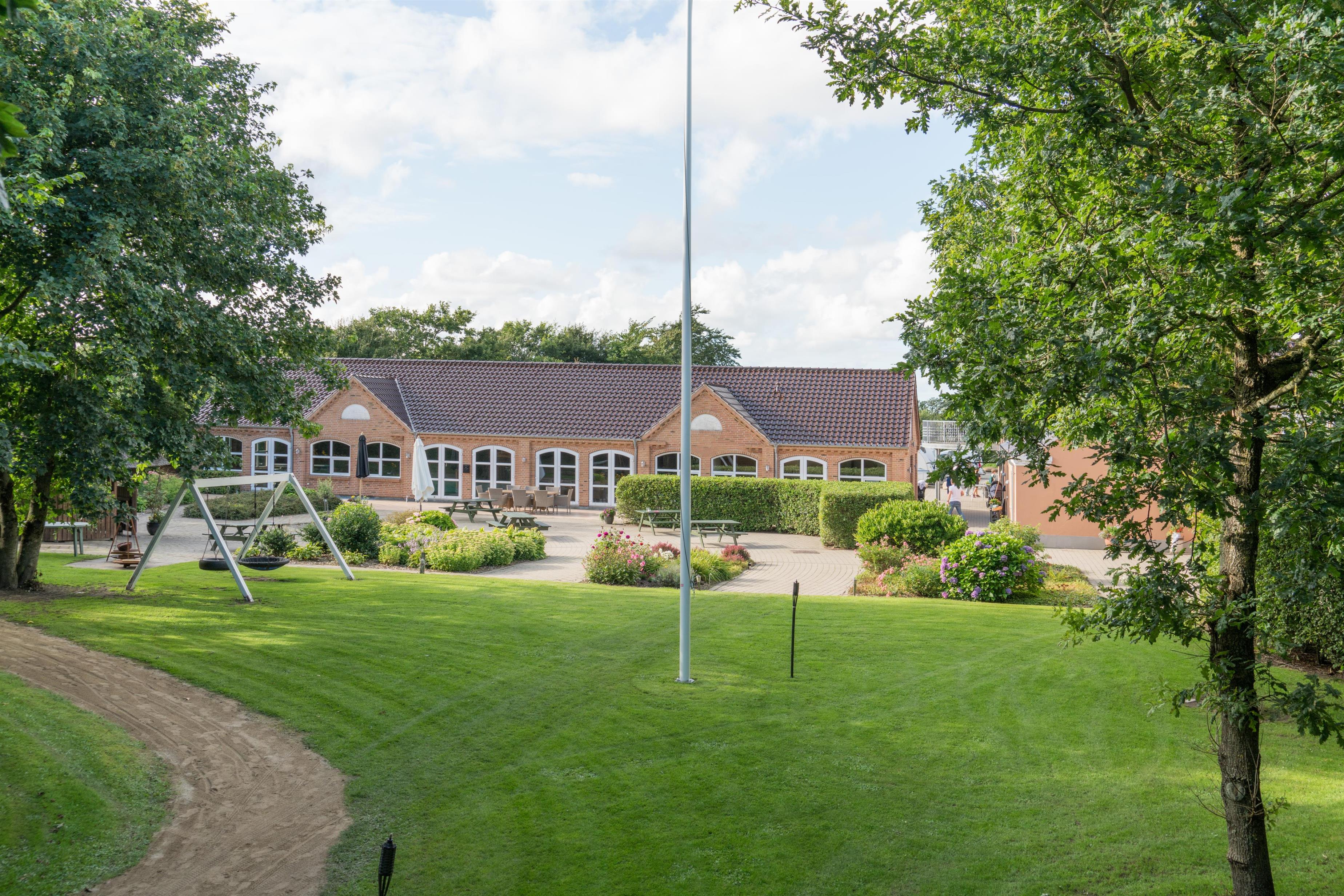 På de store udenoms arealer er der anlagt en multibane, hvor der kan dystes mod hinanden i fodbold, badminton, hockey, osv. I den 1 tønde land store have findes en lille sø, Beach Volley og hoppepude. I umiddelbar tilknytning til haven er der mulighed for en god naturoplevelse med en gå, eller løbetur i Axelgaards 6 ha. store private skov. Den dejlige solfyldte terrasse indbyder til solbadning og grillaftener ved den store grillhytte.