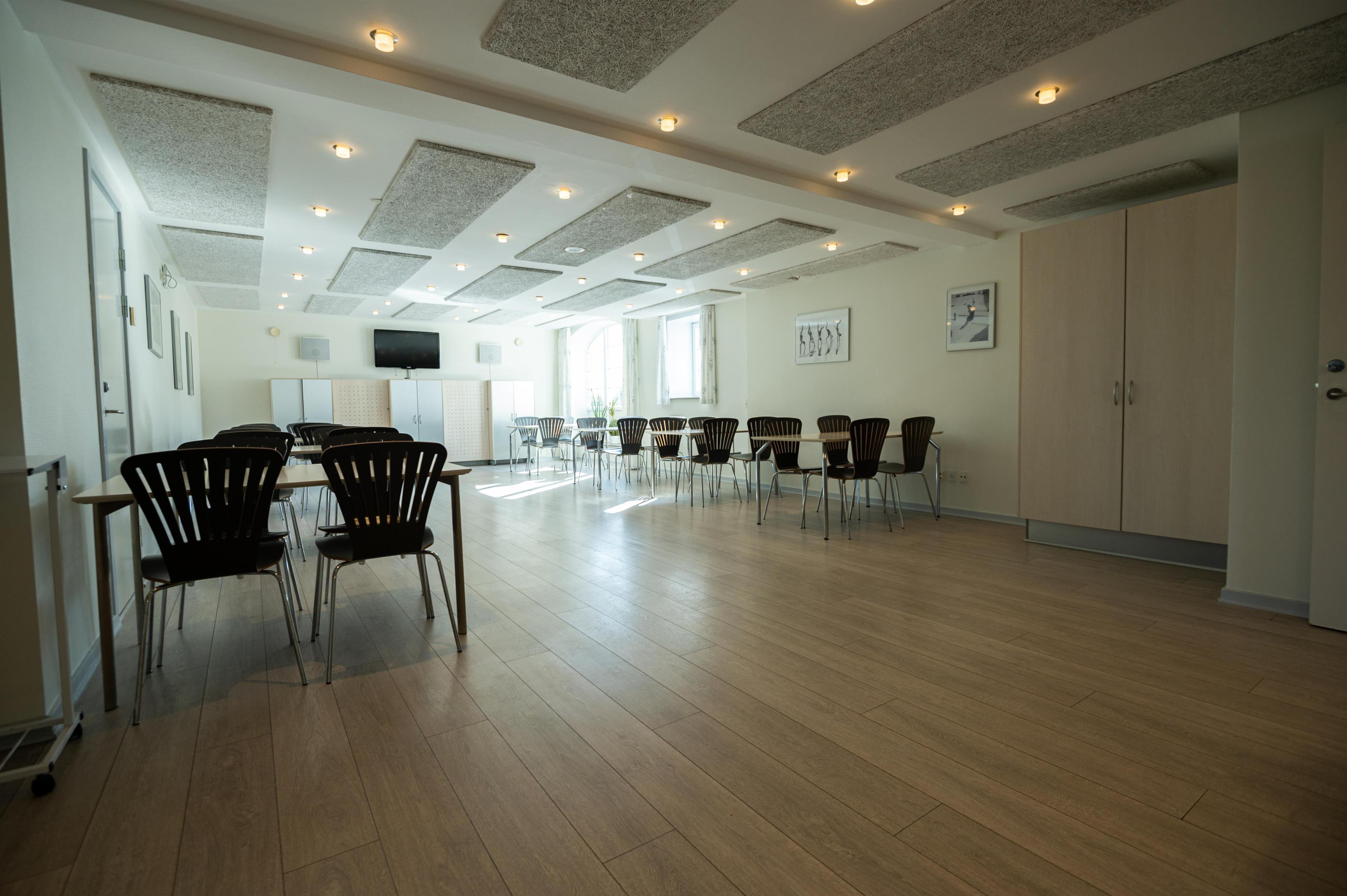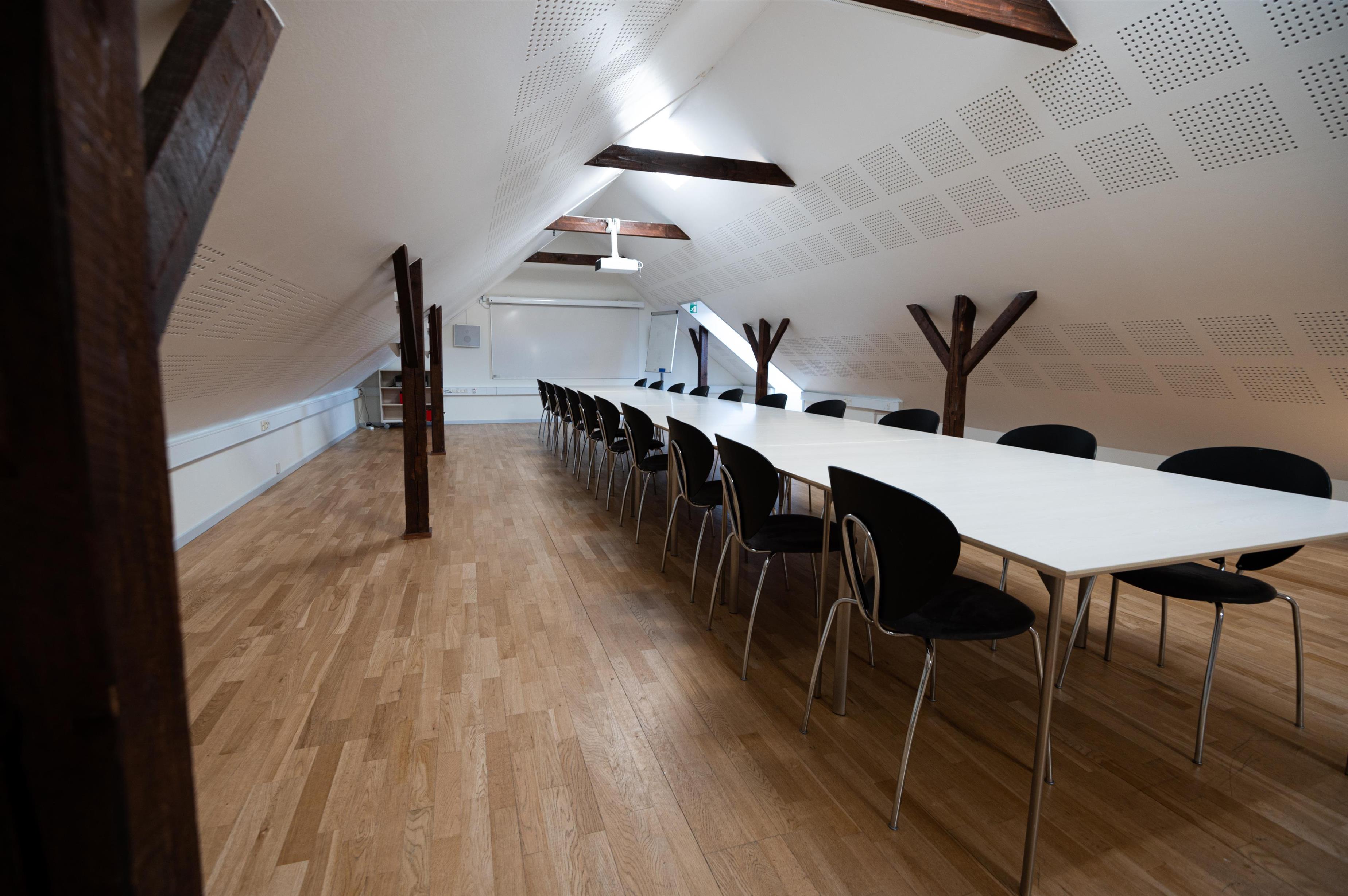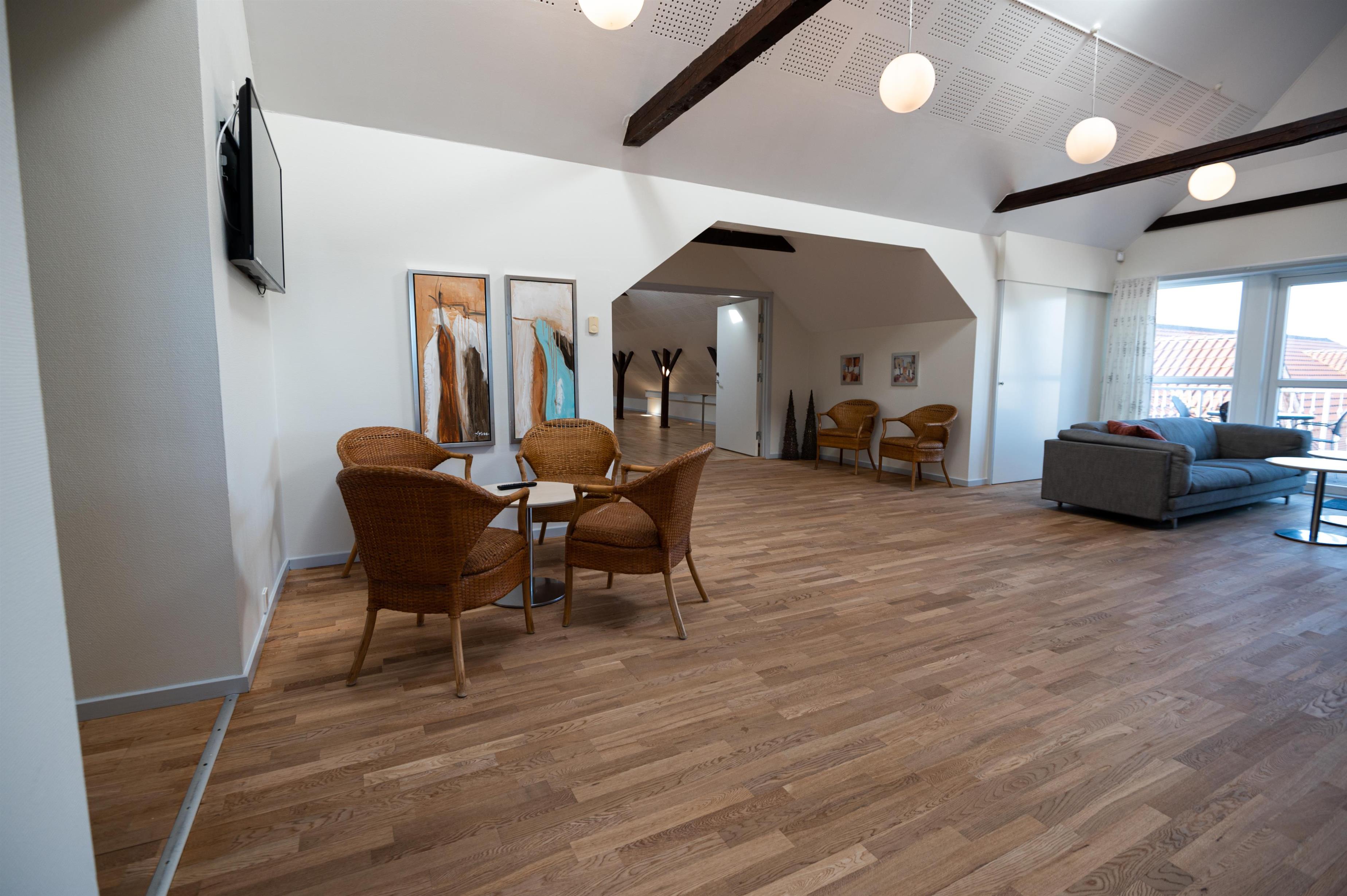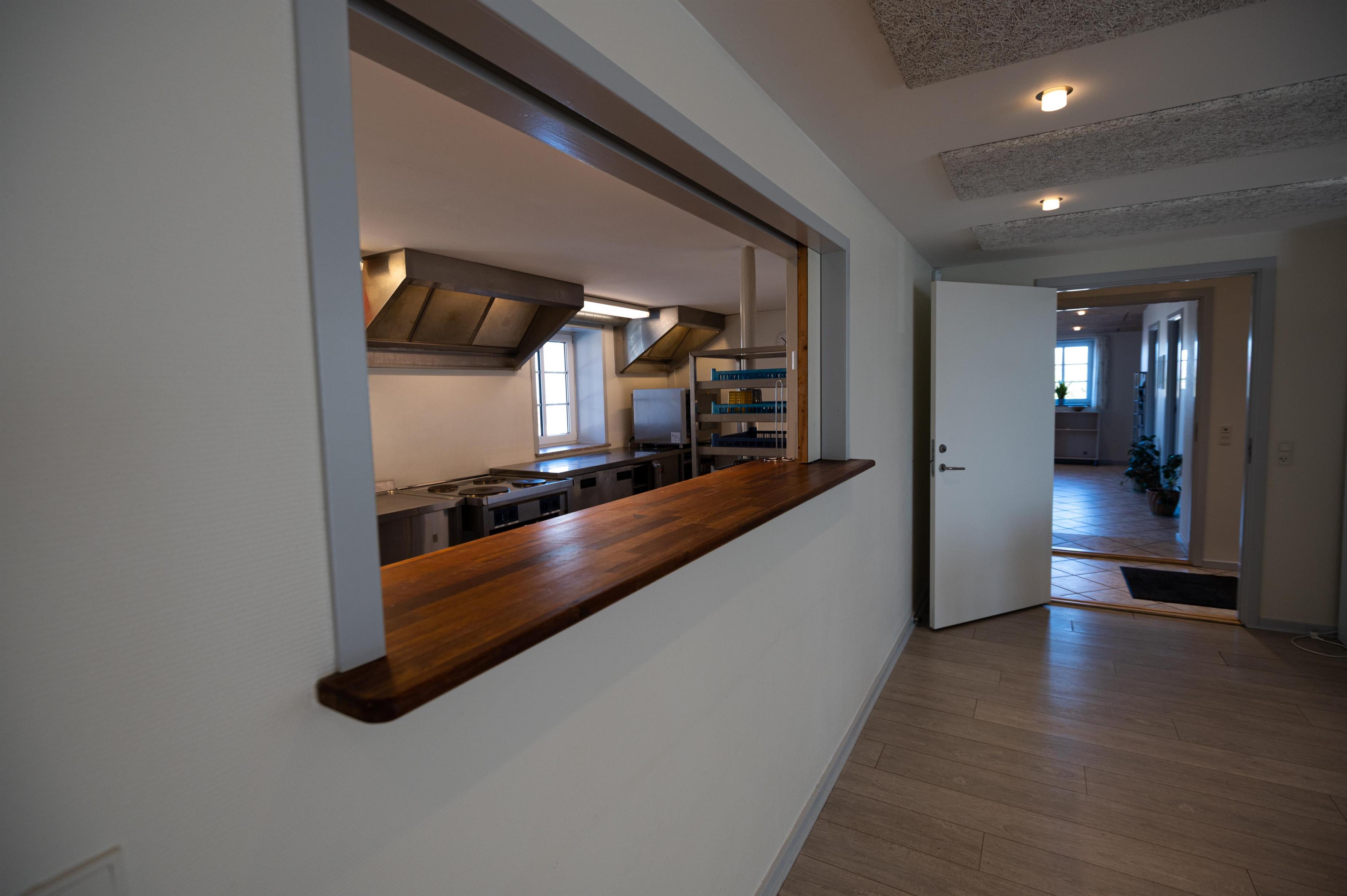 Hovedhuset indeholder et aktivitetsrum med pool, bordfodbold, dart og X-box spillemaskine, en spisestue med tilhørende industrikøkken med service til 60 personer, industriopvaskemaskine, stegeovn og alt til madlavning I køkkenet er der en madelevator op til 1 salen hvor opholdsstue, værelsesfløj og konference lokalet findes.