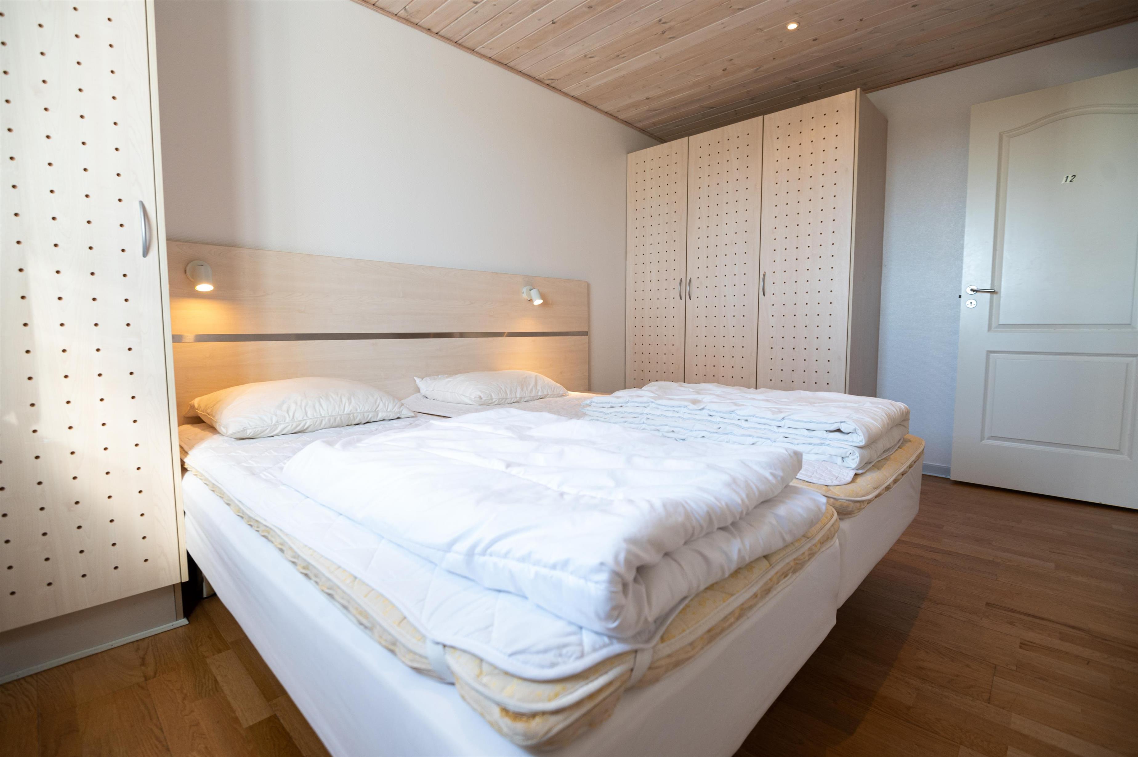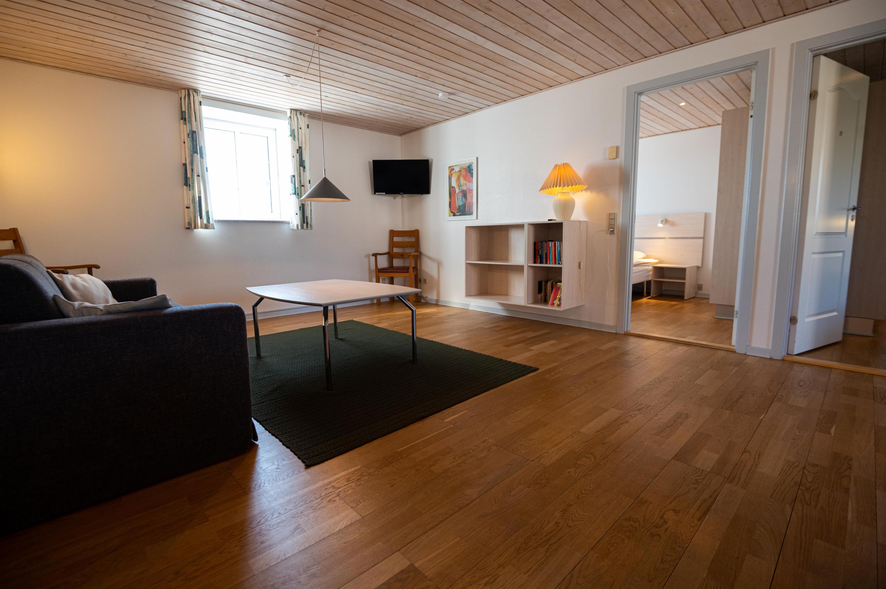 I Axelgaard til 34 personer er der 14 soverum. I værelsesfløjen på 1. sal forefindes 10 soverum, der alle er udstyret med bad og TV, i hver af de 2 lejligheder A-B er der ligeledes eget bad, TV og køkken.