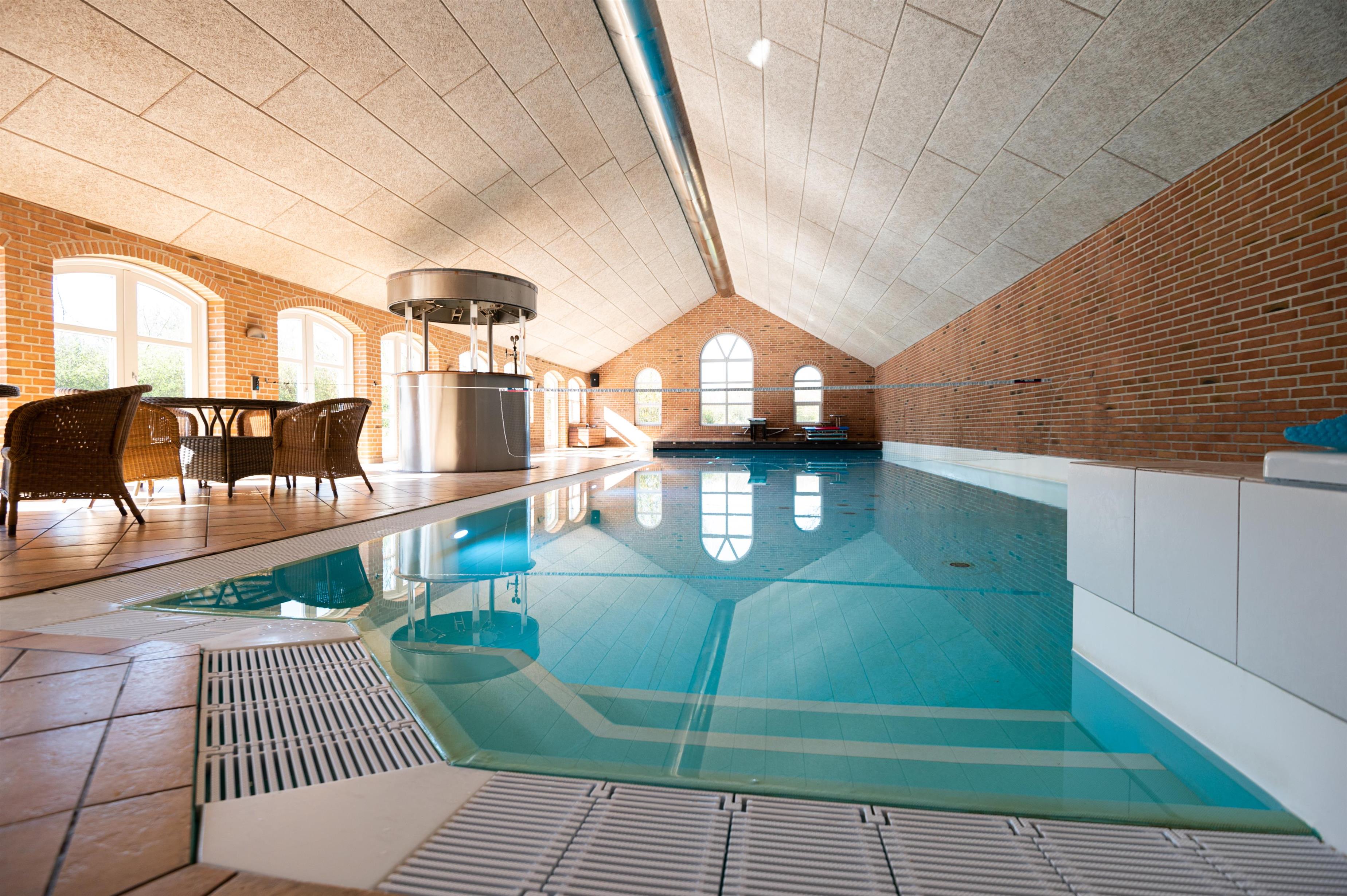 Det imponerende 200 m2 store poolområde byder på en funklende stjernehimmel med 7500 små lys, den 80 m2 store swimmingpool med vippe og trampolin indbyder til flere timers leg, og det 8 personers spabad lokker med behagelig undervandsmassage. Som noget helt ekstraordinært findes en underjordisk bar, man kan hæve op fra gulvet i poolområdet - helt ideelt til poolpartys.
