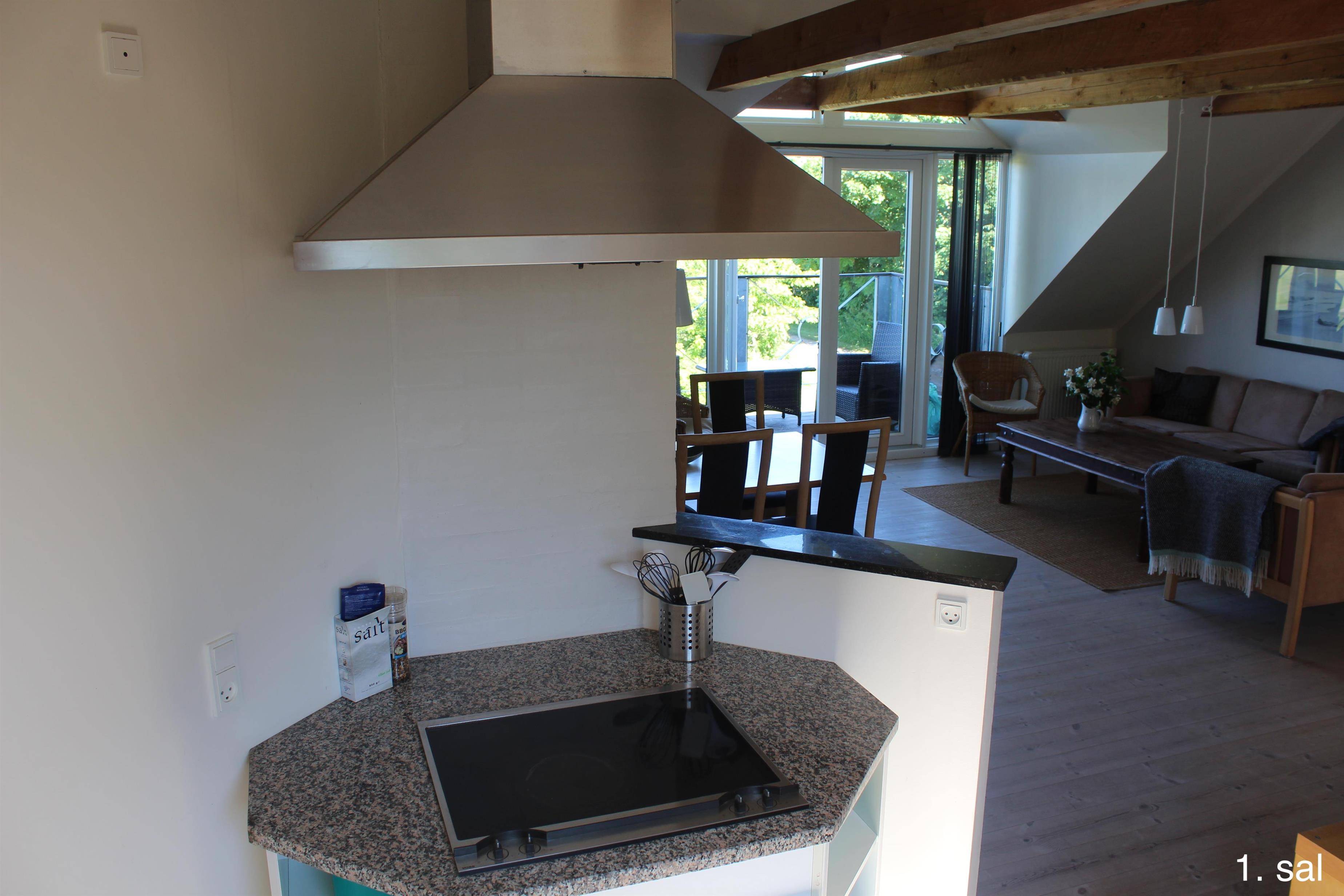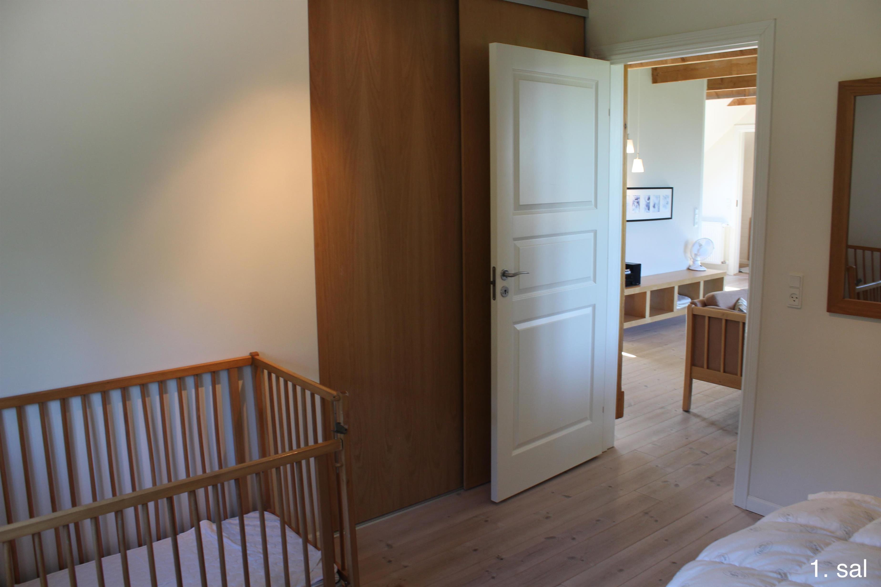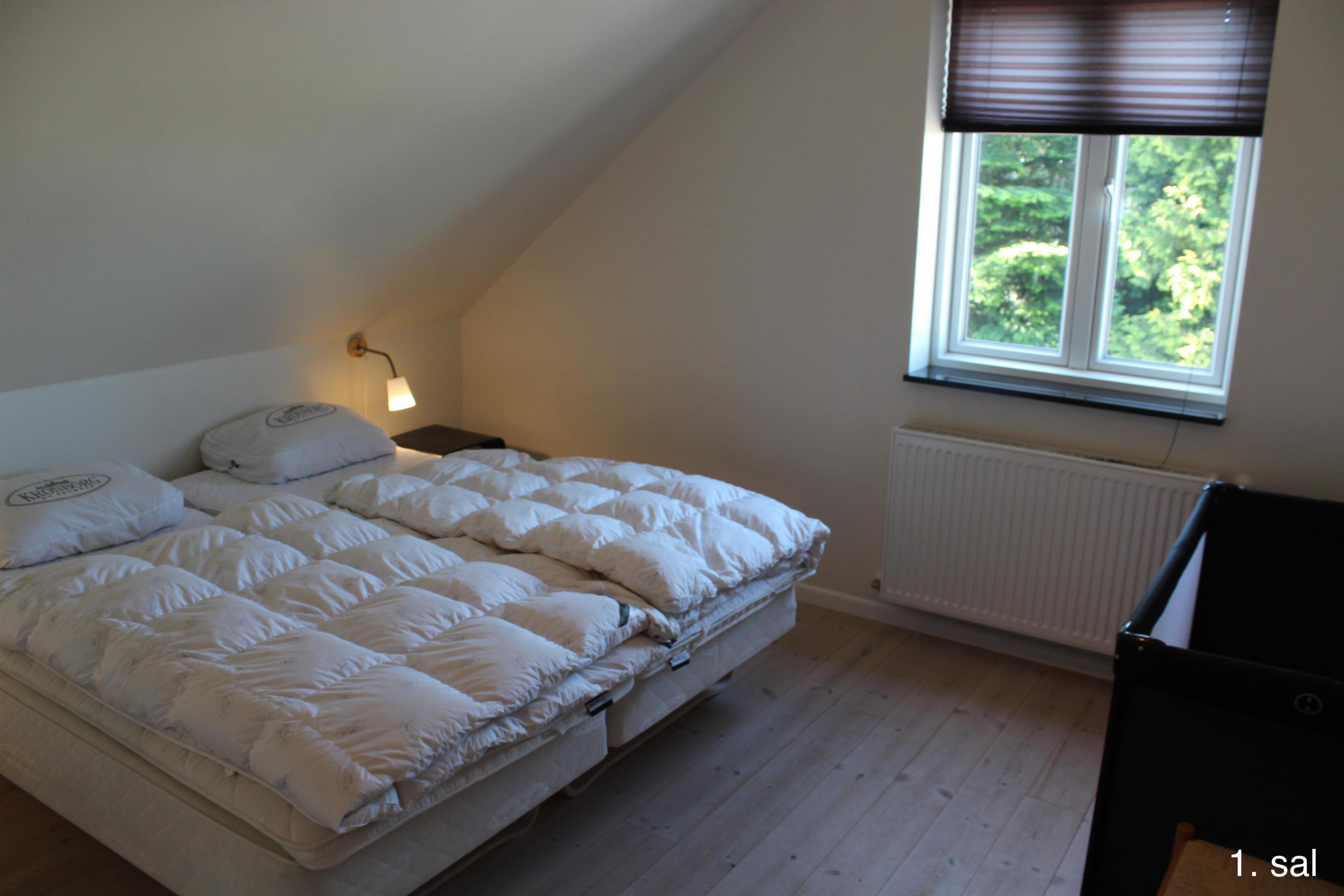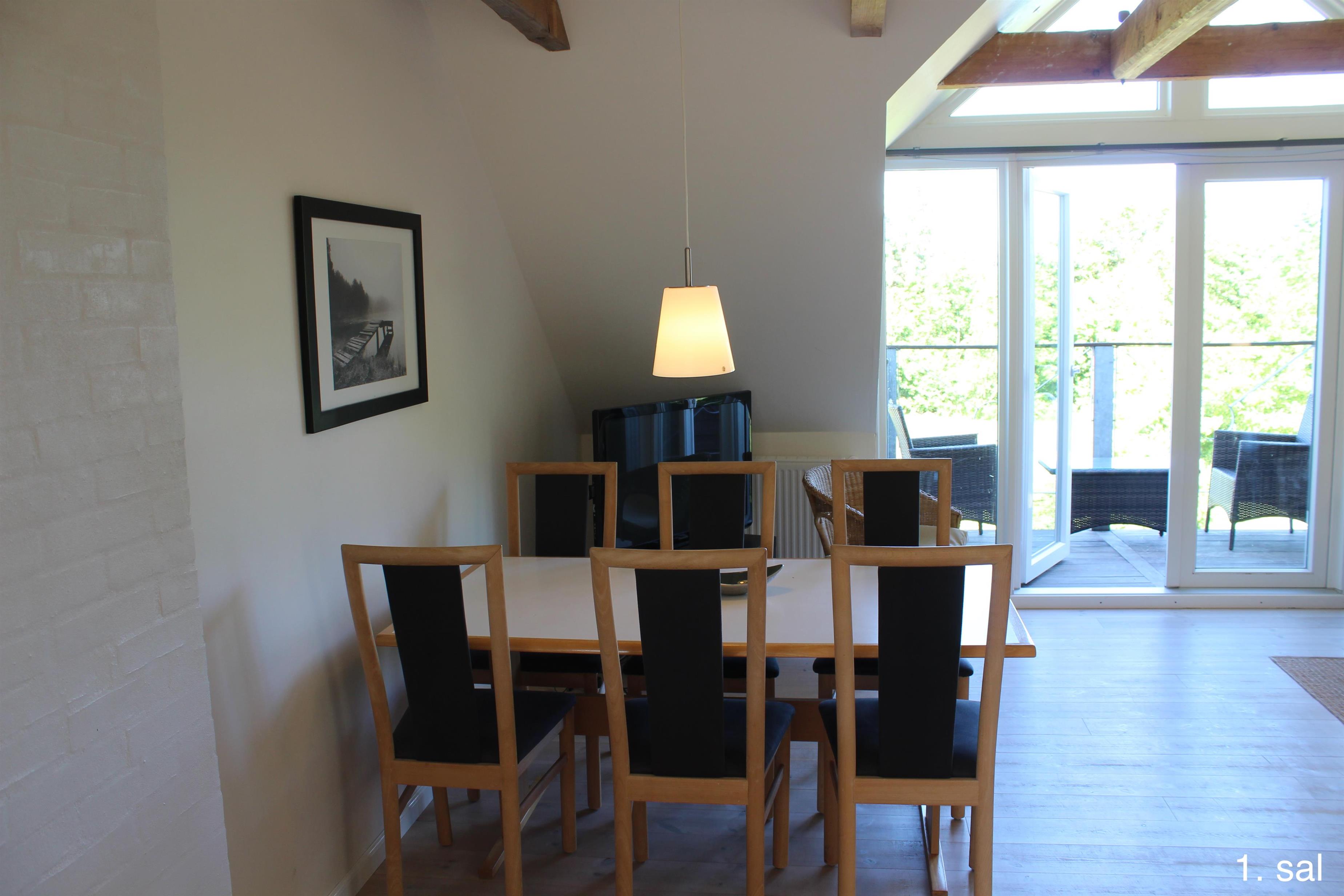 Første salen består af 2 stk. lejligheder med 5 dobbeltværelser og 2 stk. hems med tilsammen 8-10 sovepladser, desuden et badeværelse. Fra begge lejligheder er der udgang til lille balkon, hvorfra der er udsigt ud over husets naturlegepark og sø, park kan benyttes af få forbipasserende. Derudover er der udsigt ud over Filsø, en unik naturperle med et rigt fugleliv. Fra vores fugletårn er der en ubeskrivelig udsigt mod vest udover Filsø og klitterne ved Henne Strand.