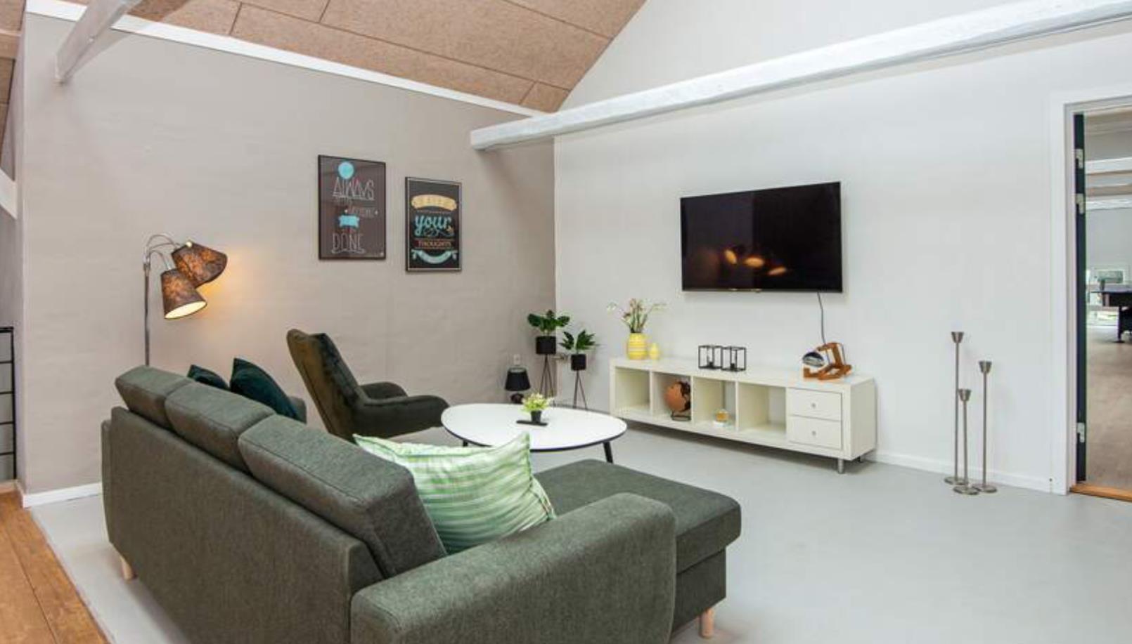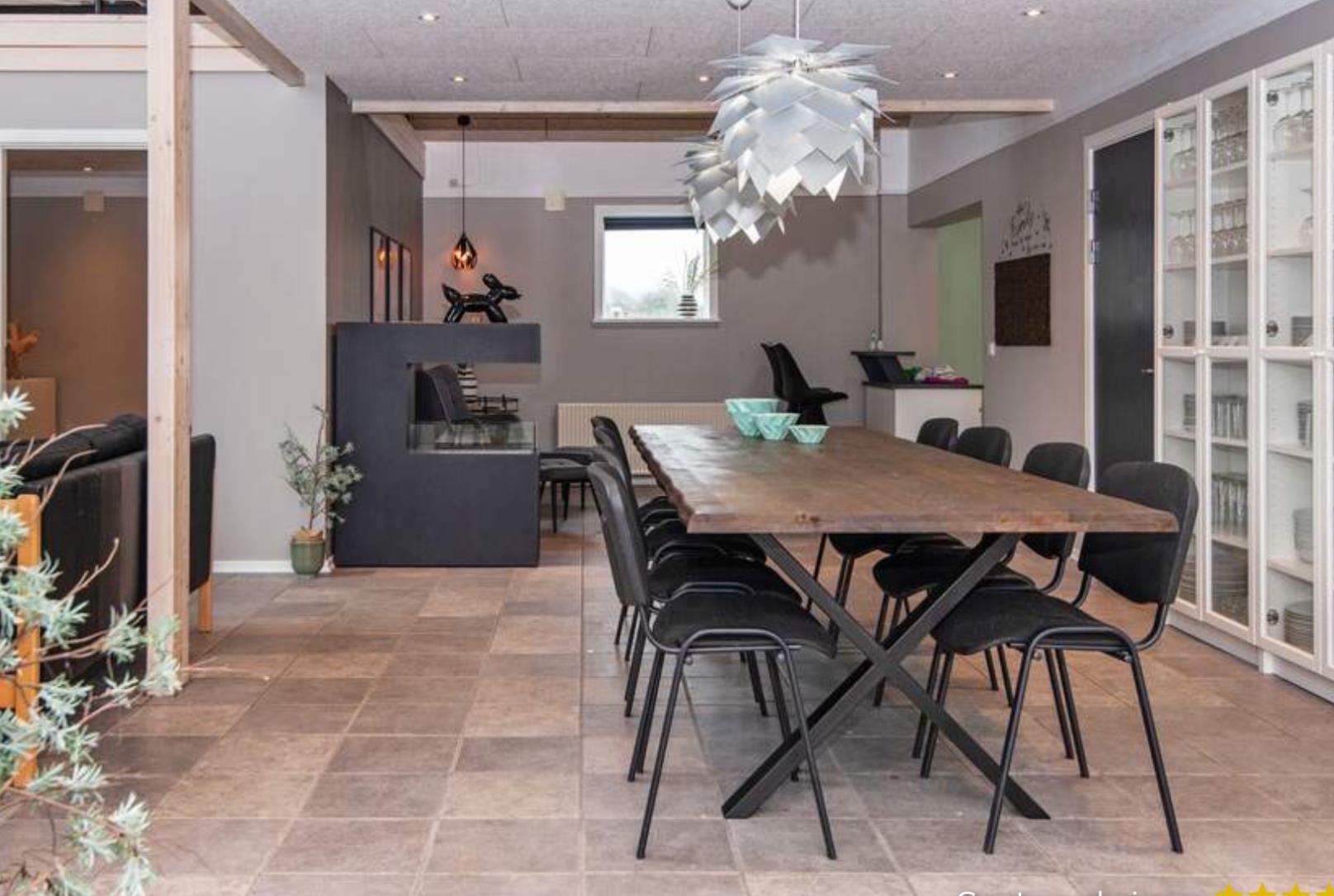 Huset har en dejlig stor stue med sofa- og hyggekroge, stor spiseplads med god plads til alle samt en biopejs.