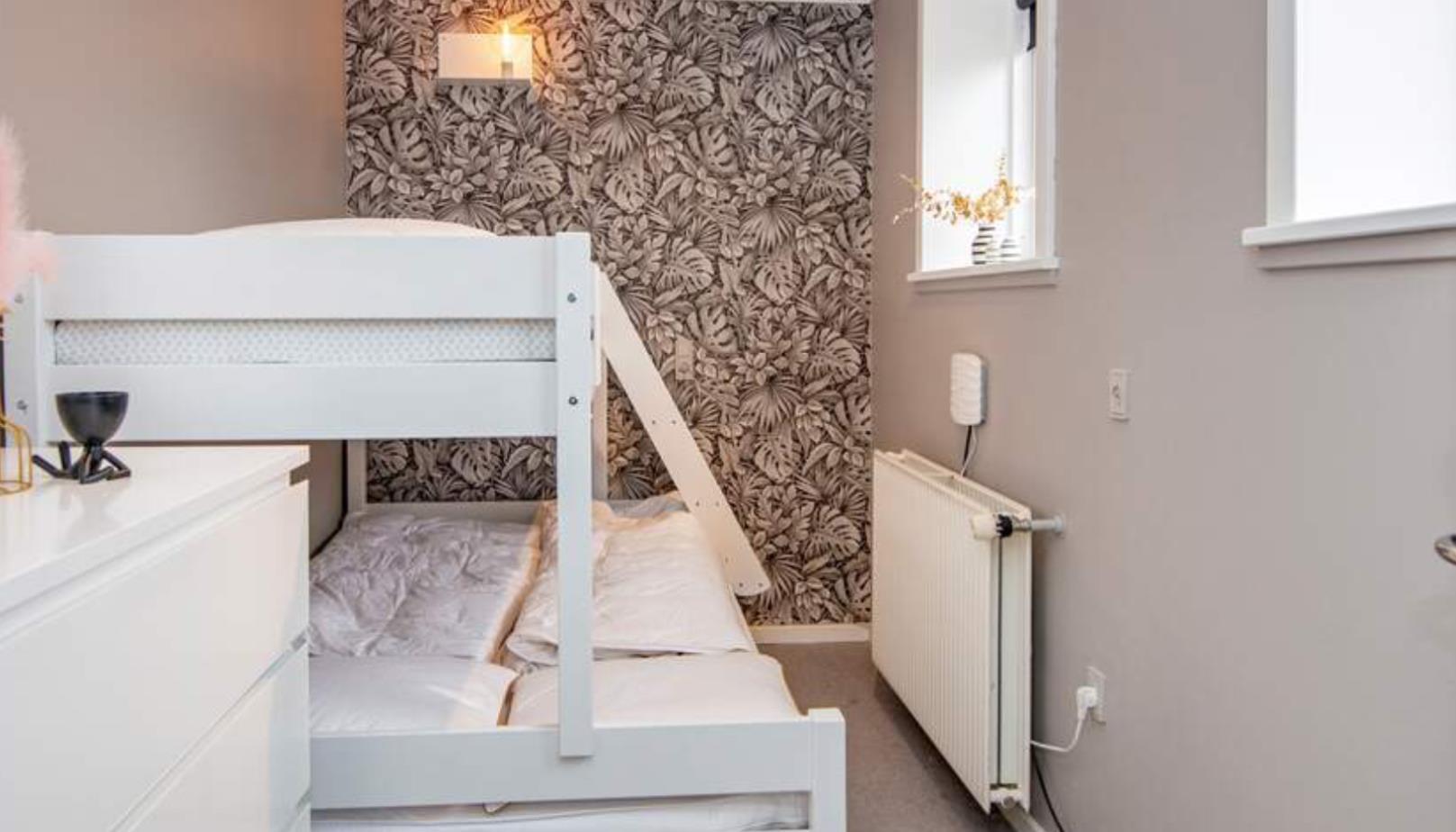 Her er tre soveværelser, to med dobbeltsenge på 180x200 cm og et med en dobbeltseng på 120x200 cm med en køjeseng ovenover til 1 person (80x200 cm). Derudover er der 2 store hemse, 1 med dobbeltseng (180x200 cm). Og den anden med foldemadras. Her er 1 badeværelse, 2 toiletter og et dejligt, renoveret køkken.