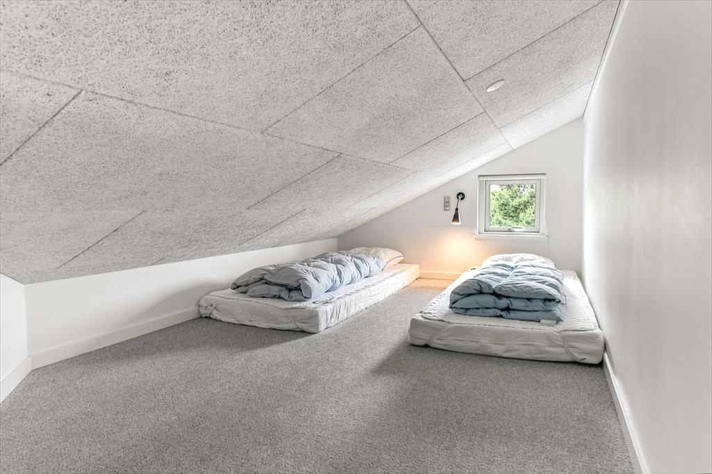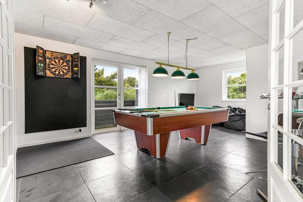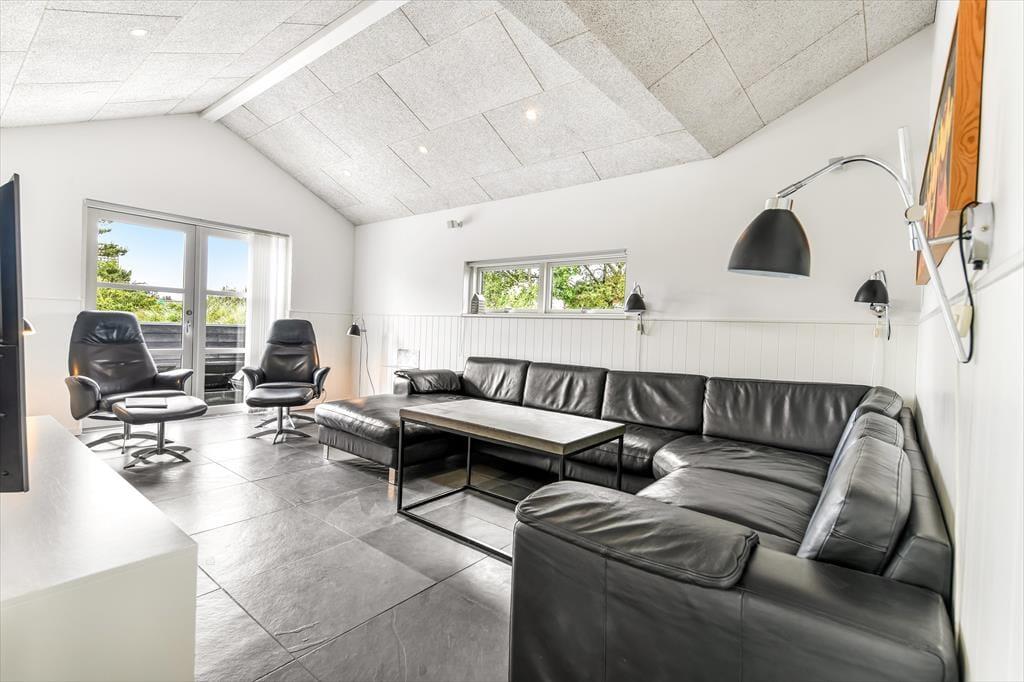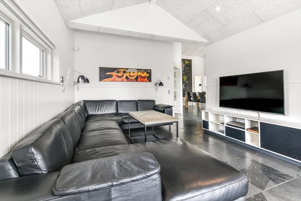 Træd ind i et lyst og imødekommende sommerhus, hvor feriestemningen hurtigt indfinder sig. Hjertet i huset er det store opholdsrum med åbent køkken og spiseplads, hvor der er masser af plads til at være sammen – uanset om der skal kokkereres, hygges med spil eller deles grin over dagens oplevelser. Store terrassedøre trækker lyset helt ind og skaber en harmonisk overgang mellem ude og inde, mens de grønne omgivelser bliver en naturlig del af indretningen. Huset byder også på et hyggeligt aktivitetsrum, hvor der kan dystes i spil og leg, og hvor både store og små kan lade sig rive med i timevis – perfekt til en regnvejrsdag eller aftenhygge. Indretningen er varm og afslappet, og du vil hurtigt føle dig hjemme i de komfortable og stemningsfulde omgivelser.