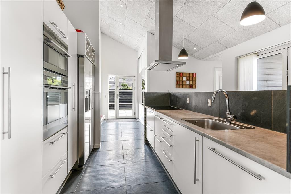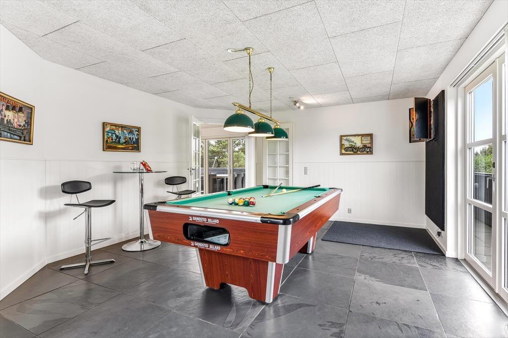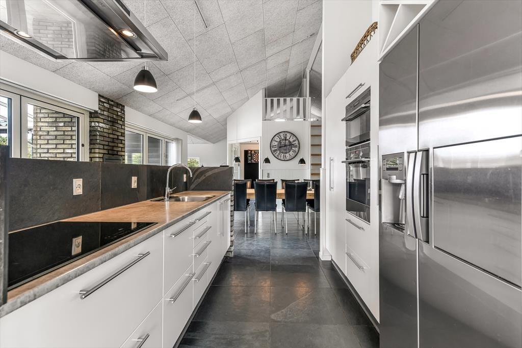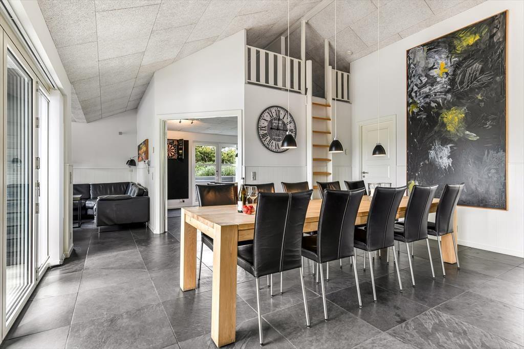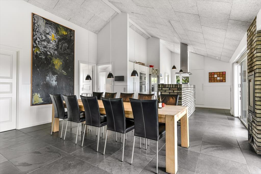Træd ind i et lyst og imødekommende sommerhus, hvor feriestemningen hurtigt indfinder sig. Hjertet i huset er det store opholdsrum med åbent køkken og spiseplads, hvor der er masser af plads til at være sammen – uanset om der skal kokkereres, hygges med spil eller deles grin over dagens oplevelser. Store terrassedøre trækker lyset helt ind og skaber en harmonisk overgang mellem ude og inde, mens de grønne omgivelser bliver en naturlig del af indretningen. Huset byder også på et hyggeligt aktivitetsrum, hvor der kan dystes i spil og leg, og hvor både store og små kan lade sig rive med i timevis – perfekt til en regnvejrsdag eller aftenhygge. Indretningen er varm og afslappet, og du vil hurtigt føle dig hjemme i de komfortable og stemningsfulde omgivelser.