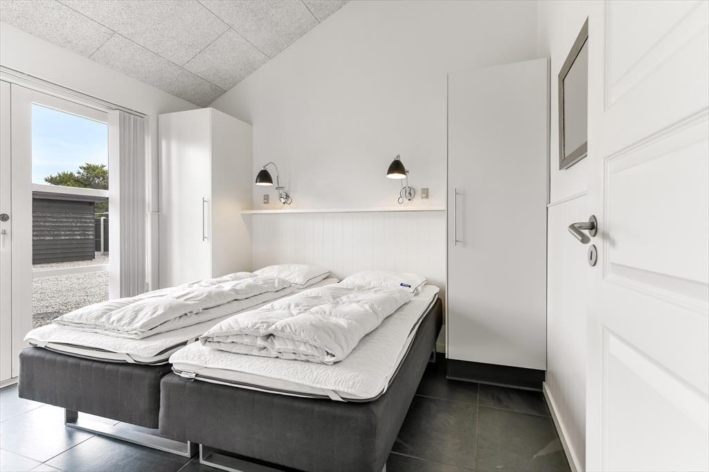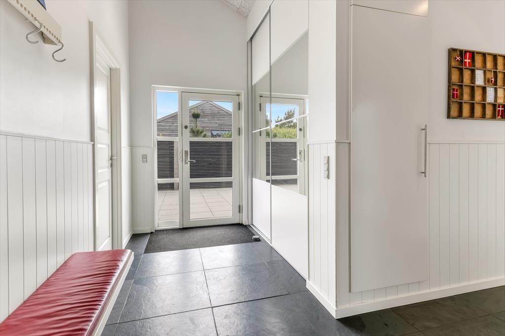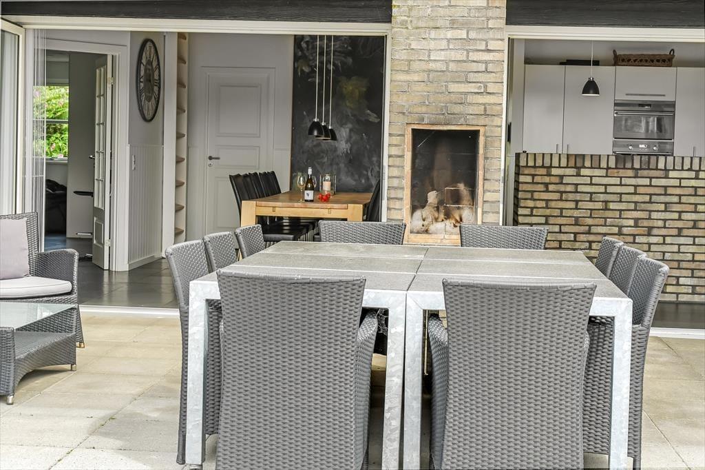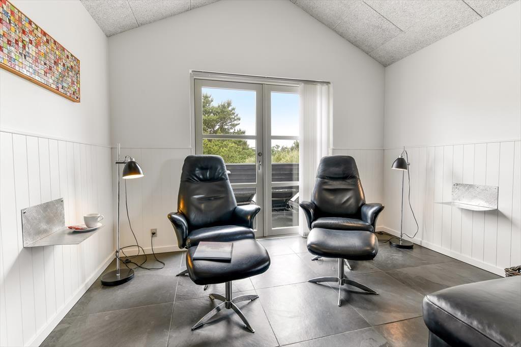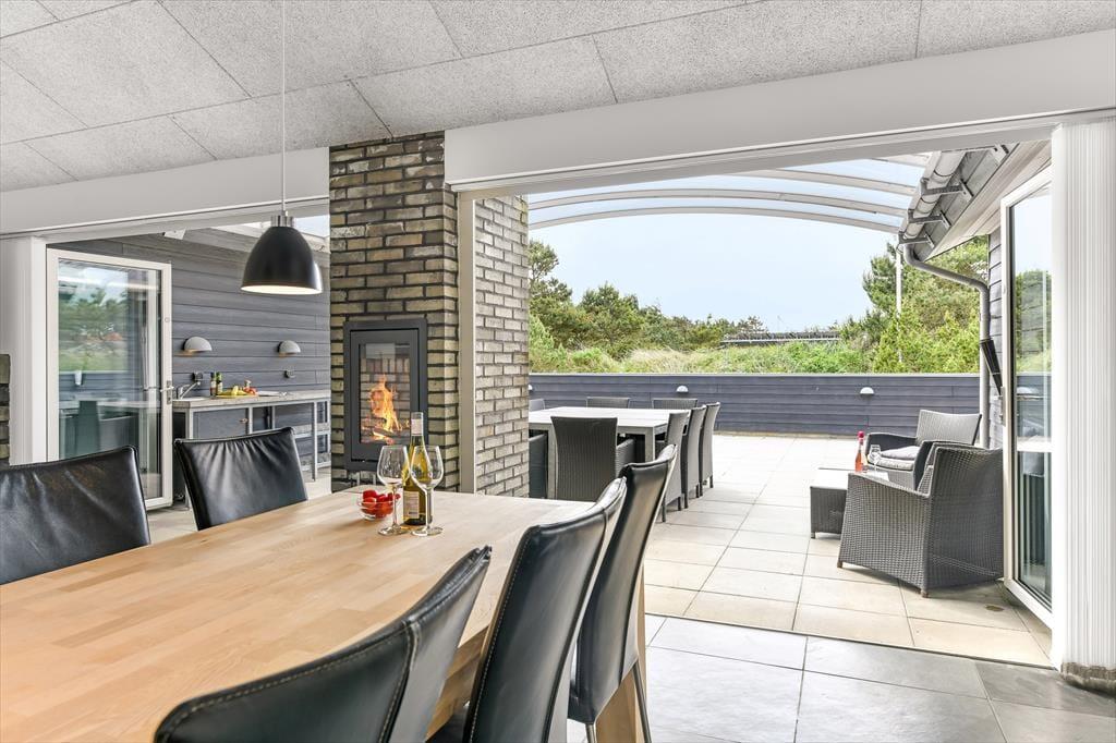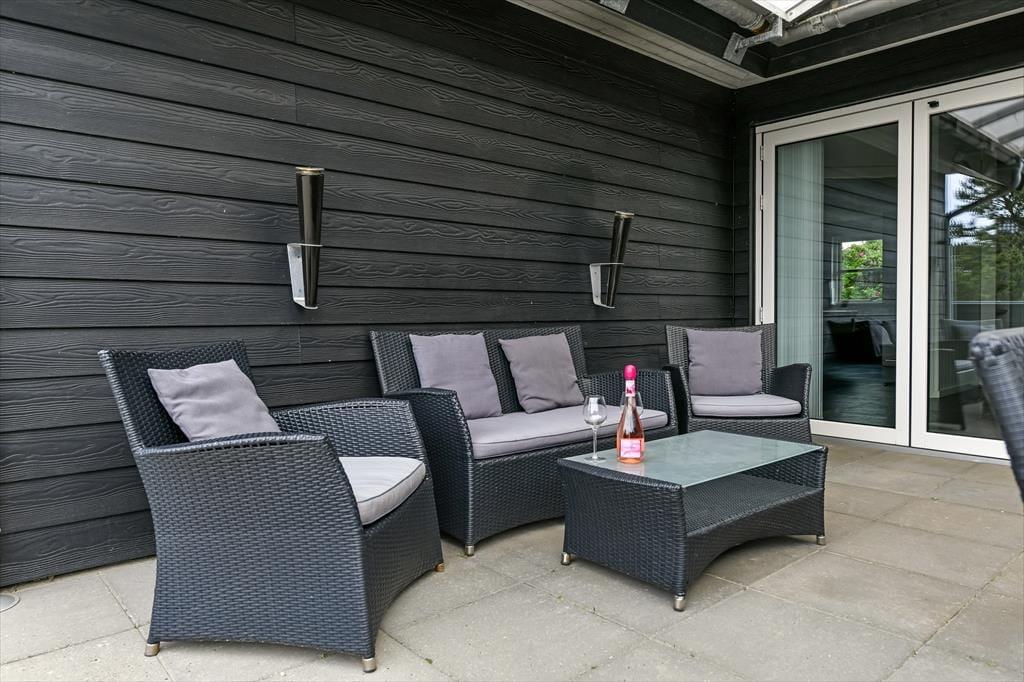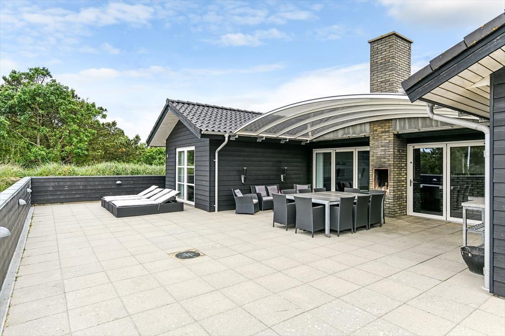 Når solen skinner, og himlen står blå over Henne Strand, er det oplagt at trække ud på den dejlige terrasse, som omkranser sommerhuset. Her kan du nyde morgenkaffen i ro og mag, mens dagens planer langsomt tager form. De store terrassedøre åbner op til en oase under åben himmel, hvor udemiljøet bliver en naturlig forlængelse af opholdsrummet indenfor. Her kan du finde en god plads i solen, læne dig tilbage i havemøblerne og lade roen falde over dig, mens fuglene kvidrer og duften af sommer fylder luften. Når dagen går på hæld, er det oplagt at tænde op i grillen og samle familien omkring et lækkert måltid – og når mørket falder på, kan du nyde stilheden og det smukke aftenlys under stjernehimlen. Her er plads til både leg, afslapning og nærvær i det fri.