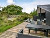 Udenfor venter en dejlig terrasse, som både er delvist overdækket og ligger godt i læ af klitterne – perfekt til udeliv i al slags vejr. Her kan du nyde din morgenmad, mens fuglene kvidrer i baggrunden, eller finde skygge under overdækningen med en god bog på de varme sommerdage. Den ugenerede beliggenhed gør det let at slappe helt af, og du har rig mulighed for at være dig selv i naturens stille selskab. Når solen står højt, kan liggestolene trækkes frem, og du kan læne dig tilbage med udsigt over det bølgende landskab. Aftensmaden smager ekstra godt under åben himmel, og grillen er oplagt at tænde, når du vil forkæle smagsløgene efter en lang dag med strandture og oplevelser. Uanset om du søger ro og fordybelse eller tid med dem, du holder af, skaber terrassen rammen om mange gode feriestunder.