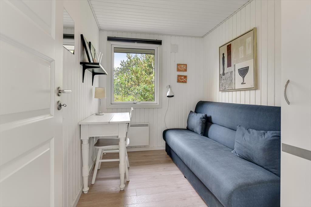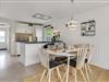 Når du træder ind i sommerhuset, bliver du mødt af en lys og behagelig atmosfære, hvor indretningen inviterer til både afslapning og samvær. Husets naturlige hjerte er det skønne køkken-alrum. Her er der plads til at samle hele familien om morgenbordet, brætspil og ferielivets små stjernestunder. De store vinduespartier trækker lyset indenfor og giver dig mulighed for at nyde den fantastiske udsigt over det omkringliggende klit- og hedelandskab – selv på dage, hvor vejret inviterer til indendørs hygge. Farverne i huset er lyse og naturlige, hvilket understreger fornemmelsen af ro og rummelighed. Uanset om du starter dagen med en stille kop kaffe ved spisebordet eller slutter den i sofaen med en god film og stearinlys på bordet, er der altid udsigt til naturen og plads til fordybelse.