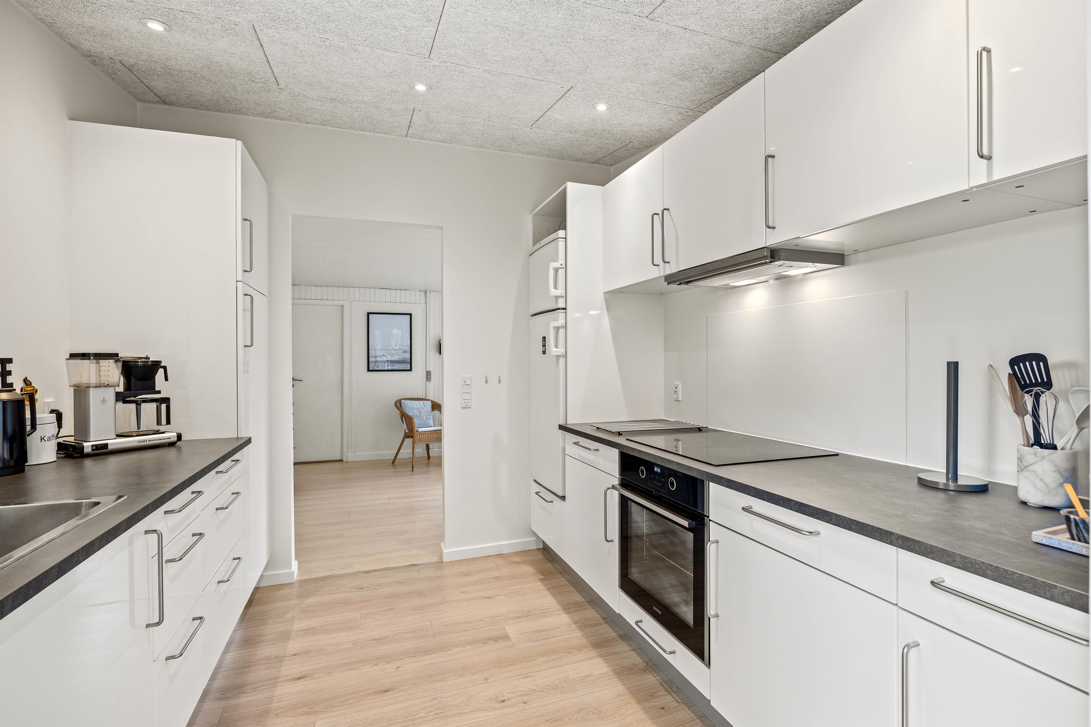 I vil føle jer hjemme, straks I træder ind i det hyggelige sommerhus på 50 m2. I opholdsstuen kan I hygge jer i sofaen med TV eller en god bog. Ved spisebordet vil de fleste af jeres hjemmelavede måltider nok blive indtaget. Køkkenet indeholder alt, hvad I har brug for, for at forkæle hinanden med lækre måltider. Der er 2 soveværelser med dobbeltsenge til rådighed, så I kan blive godt udhvilede i den friske vesterhavsluft. Badeværelse med gulvvarme, så I ikke behøver at få kolde fødder. Moderne faciliteter, som opvaskemaskine, vaskemaskine og energibesparende varmepumpe er også til rådighed for jer i ferien.