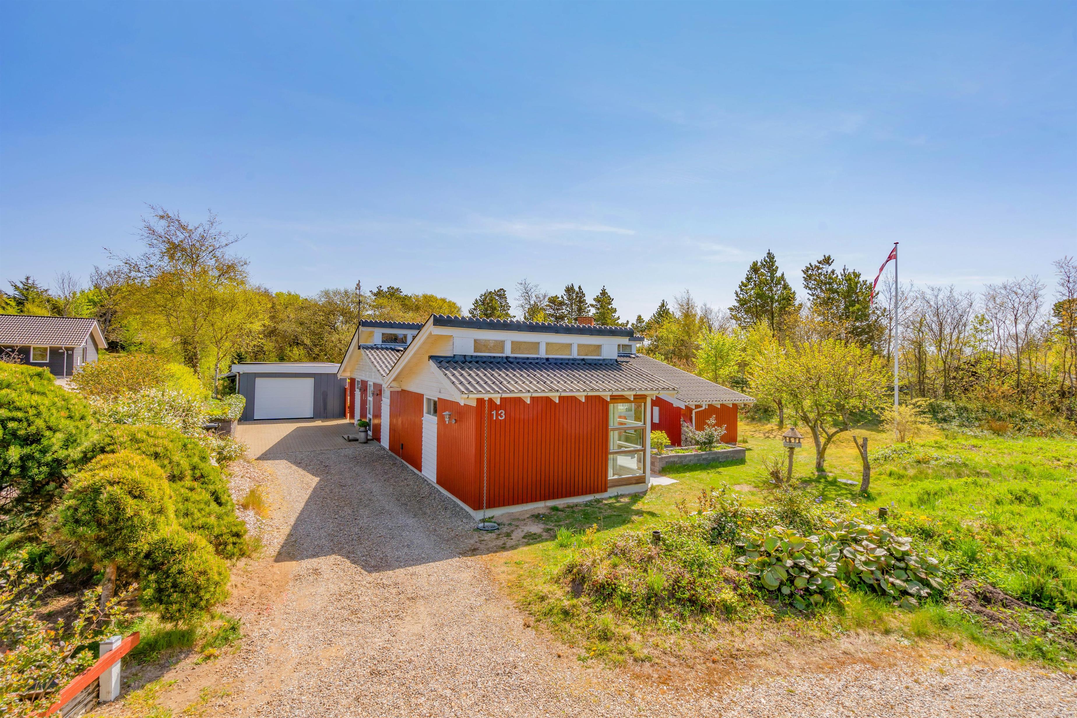 I det hyggelige, røde sommerhus på Stendyssevej 13 i Henne By venter jer en lys og indbydende indretning, der danner rammen om en skøn ferie for jer!