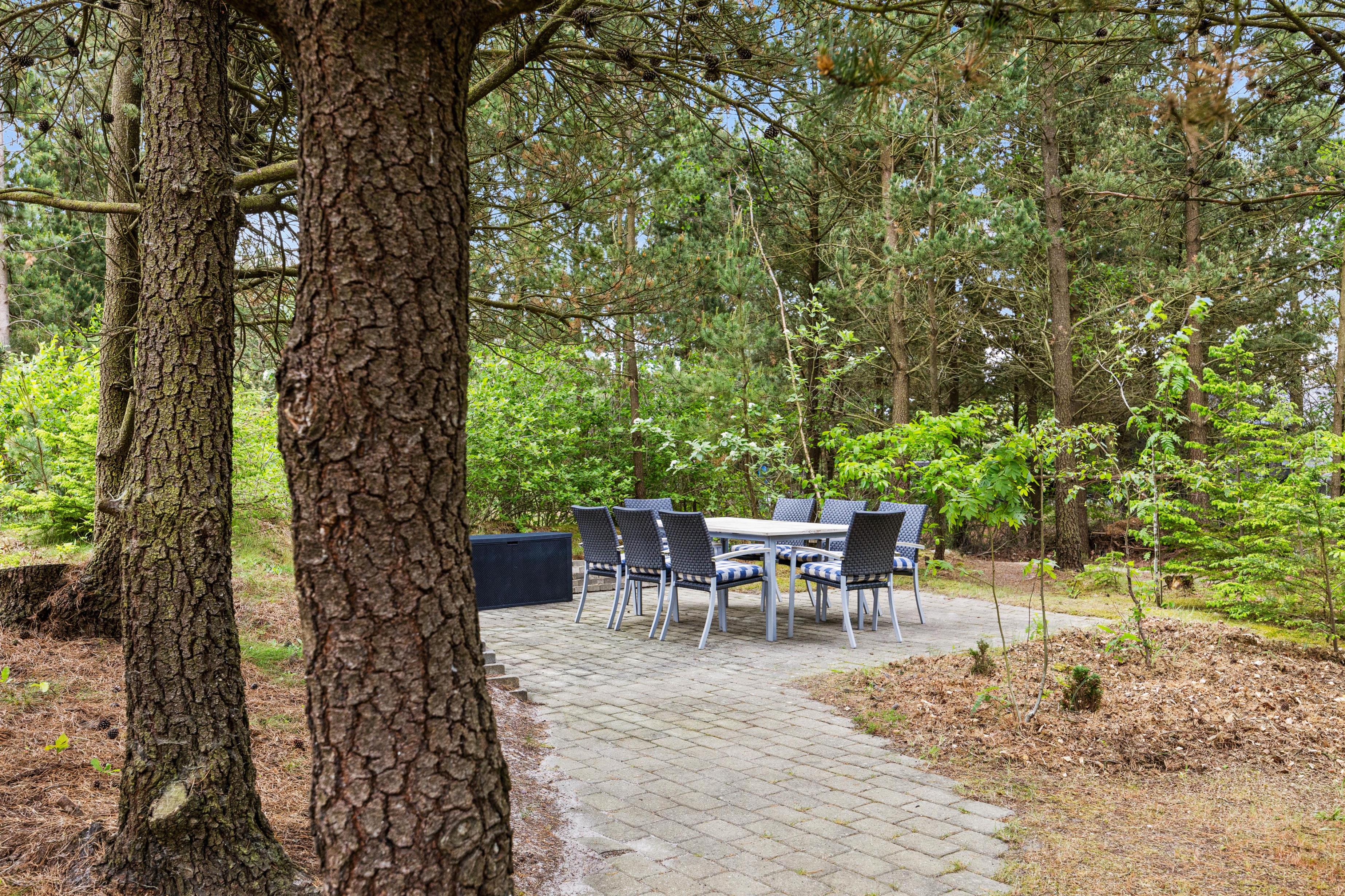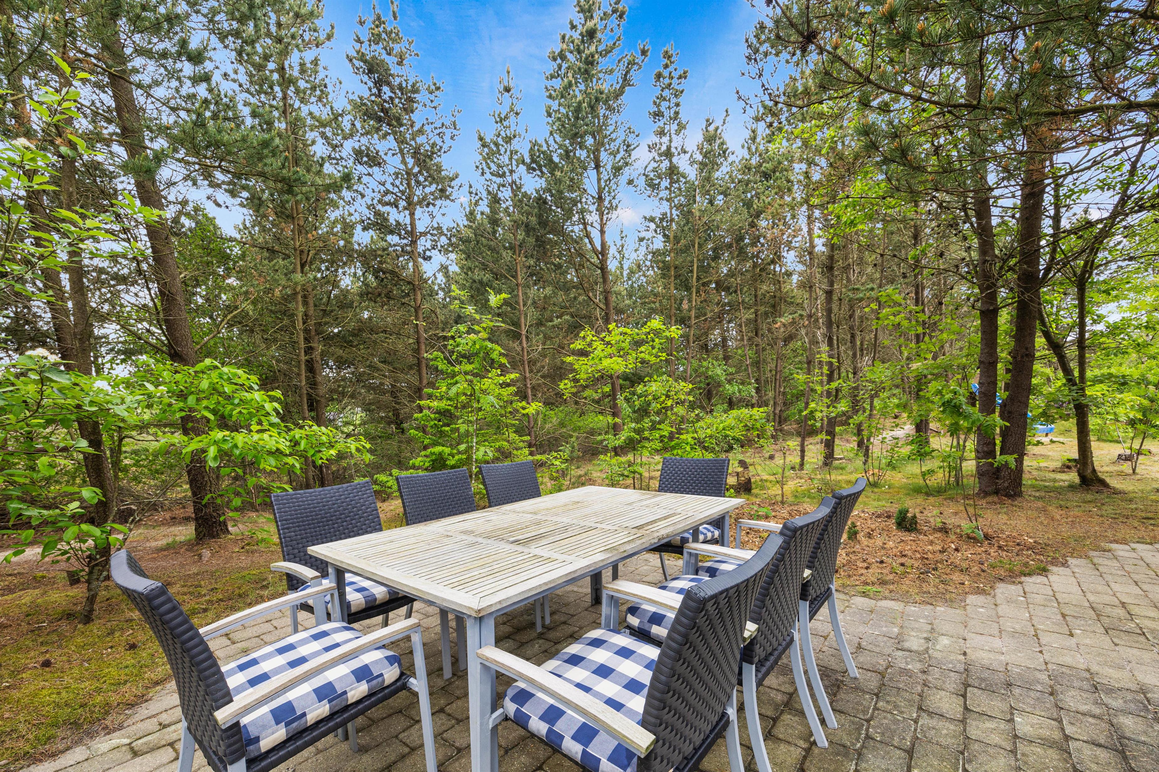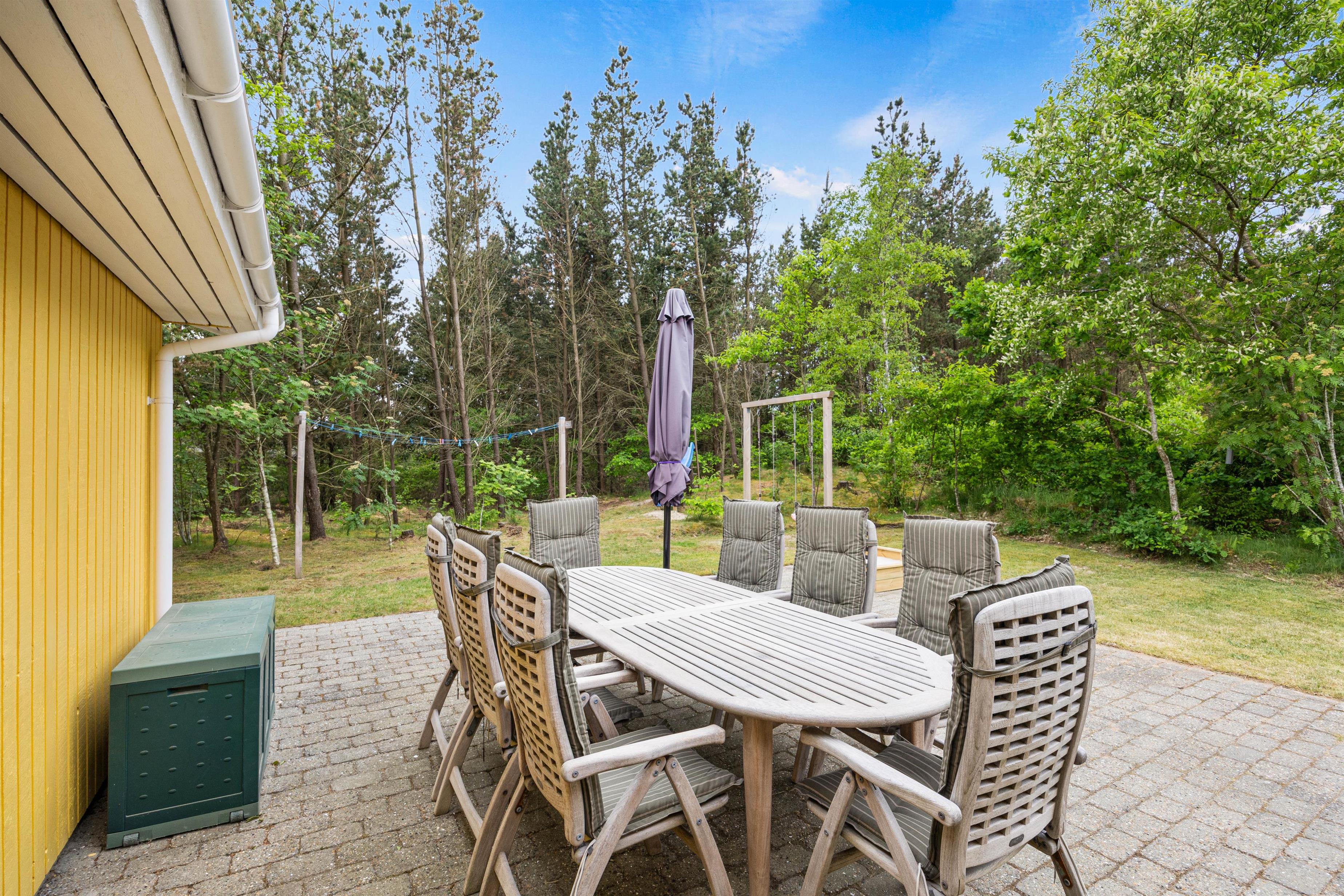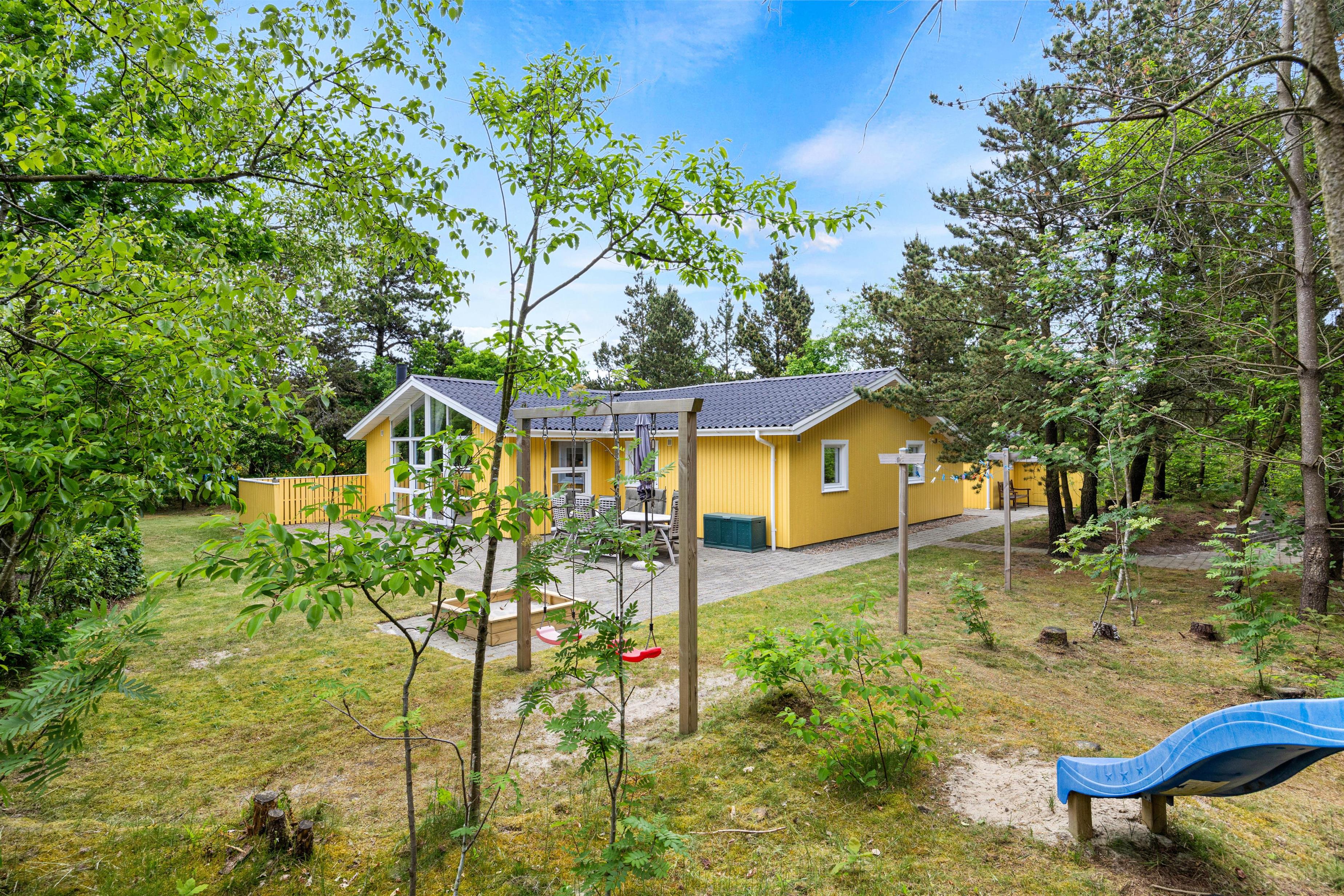 Udenfor kan både voksne og børn finde masser af aktiviteter. På den store plænegrund på 1870m2 er der både gynge og sandkasse til børnene, imens I slapper af i de komfortable havemøbler, der er stillet frem rundt omkring sommerhuset.