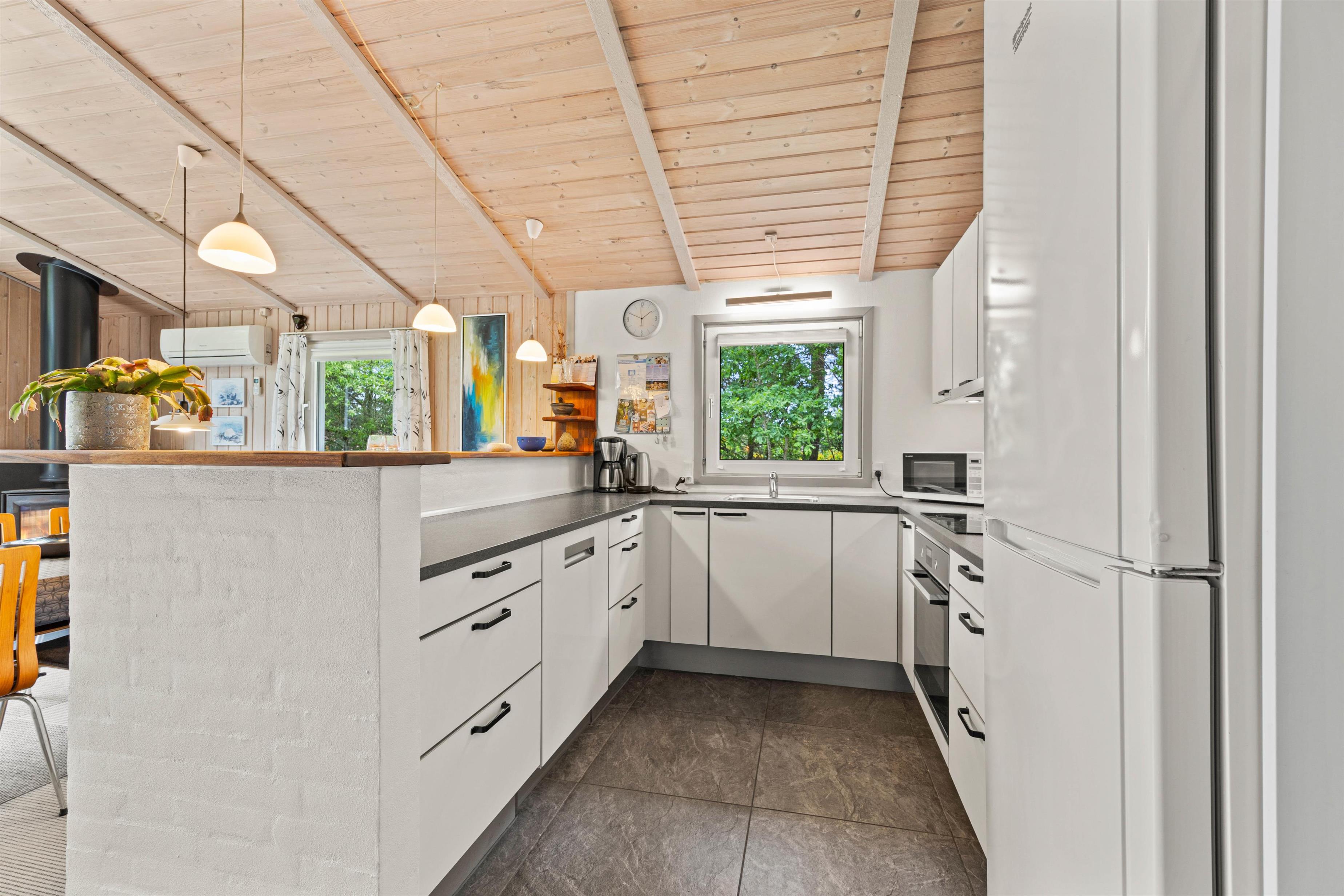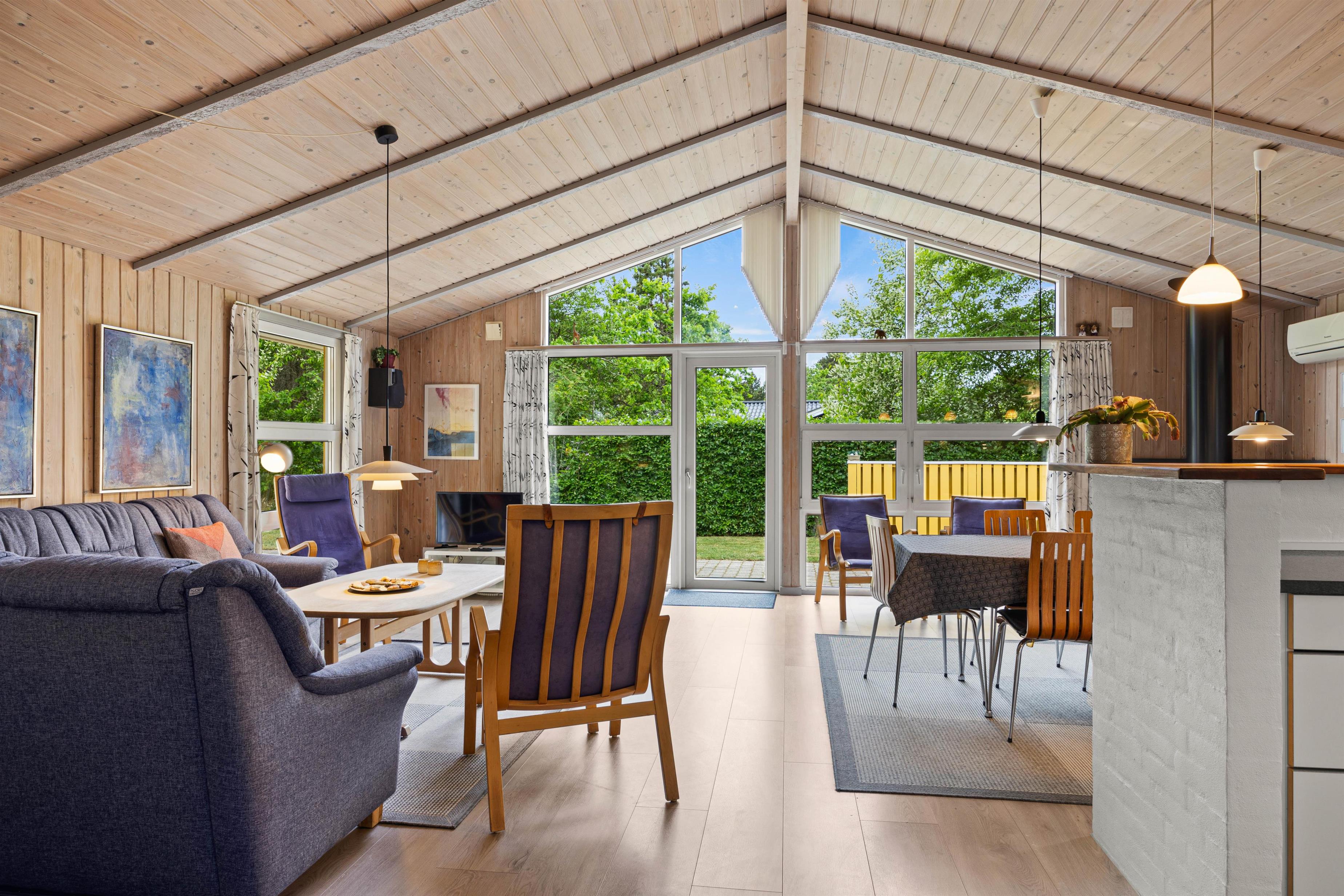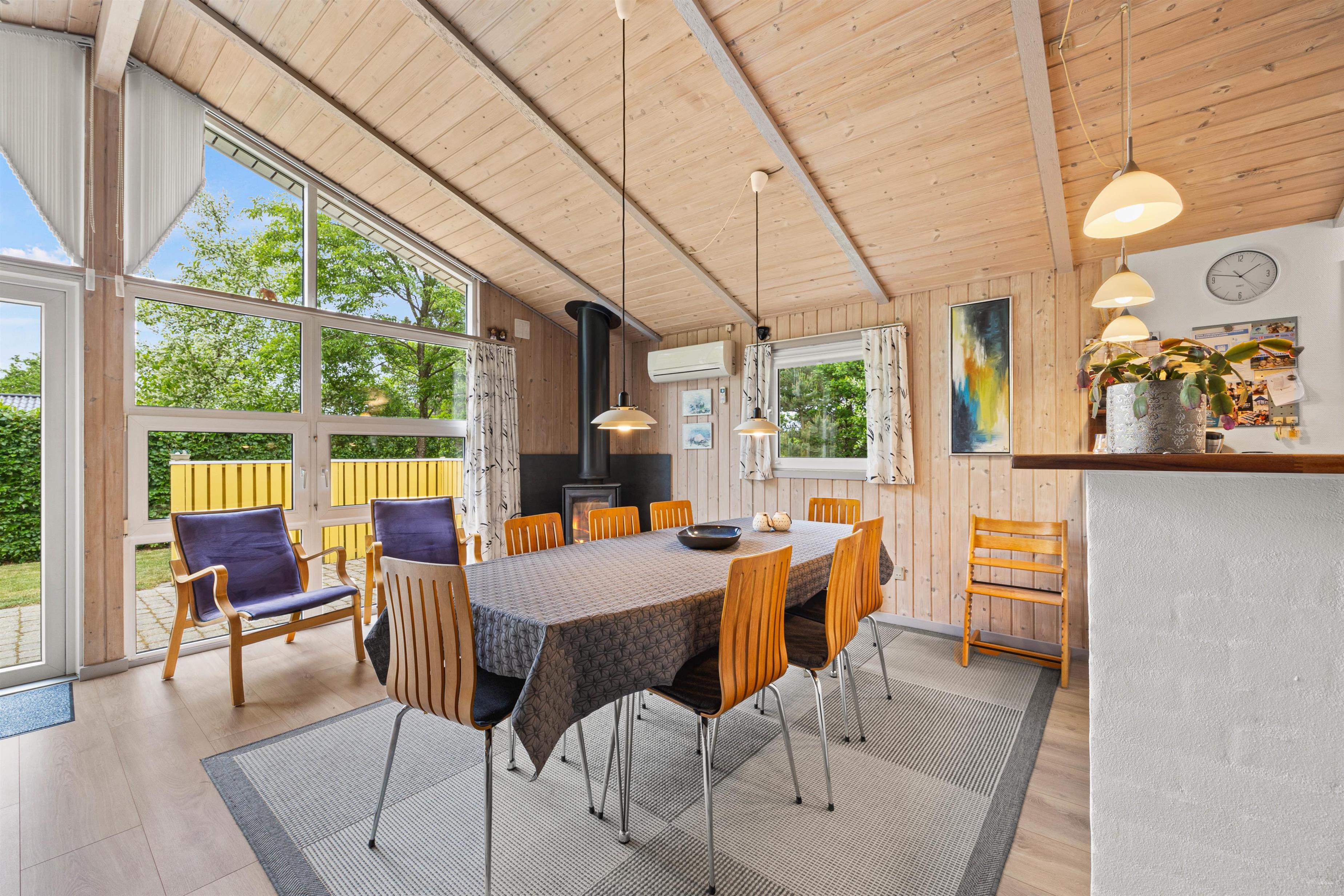 Med plads til op til 6 personer er der rigelig plads til hele familien. Sommerhuset byder på 4 velindrettede soveværelser, så alle kan få en god nats søvn. I kan hygge jer foran den hyggelige brændeovn på kølige aftener eller drage fordel den energibesparende og effektive luft-til-luft varmepumpe, der sikrer et behageligt indeklima året rundt. Det veludstyrede køkken har en opvaskemaskine, der gør oprydningen i køkkenet til en leg, og frigiver tid til at se jeres yndlingsfilm, som I kan streame via Chromecast.