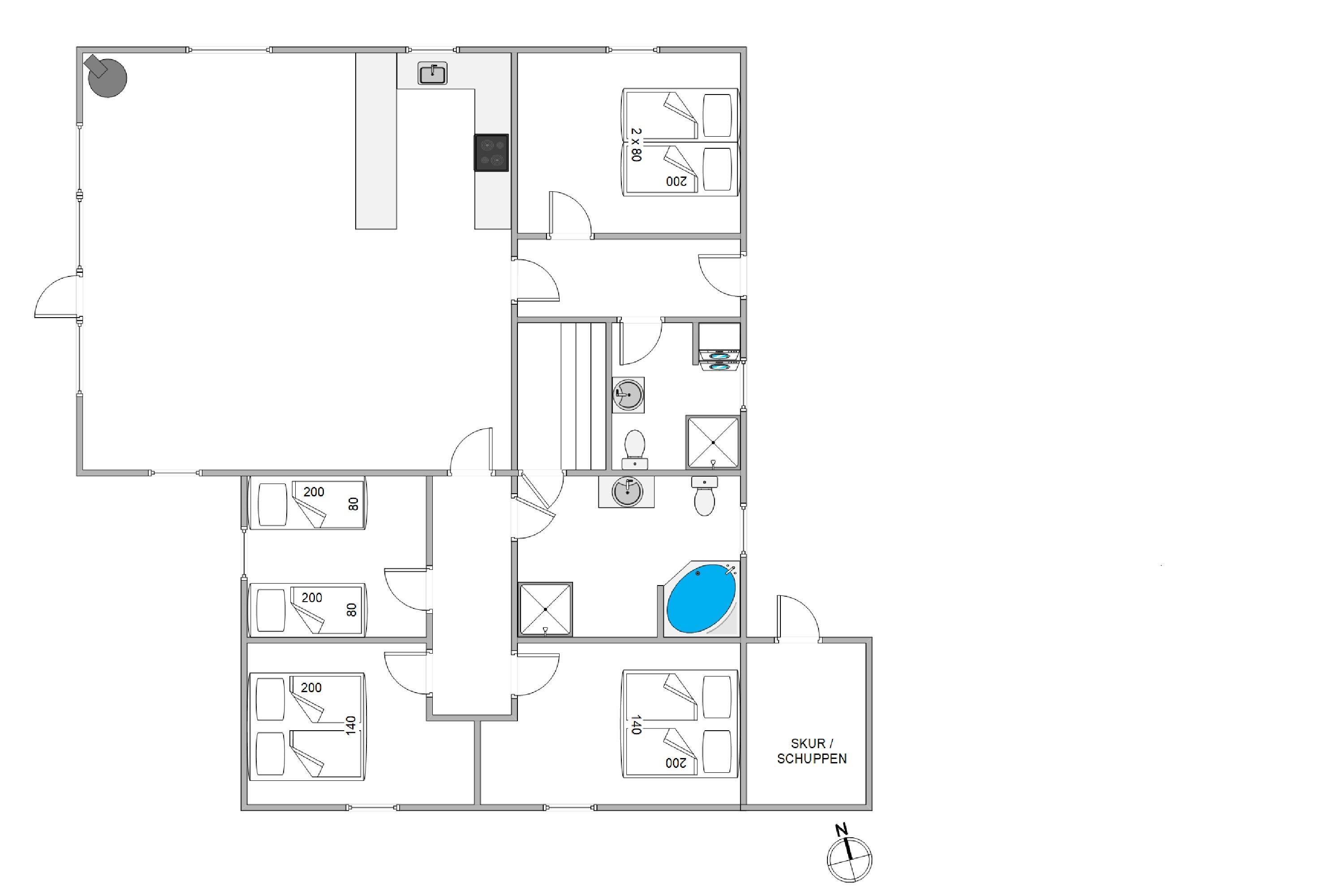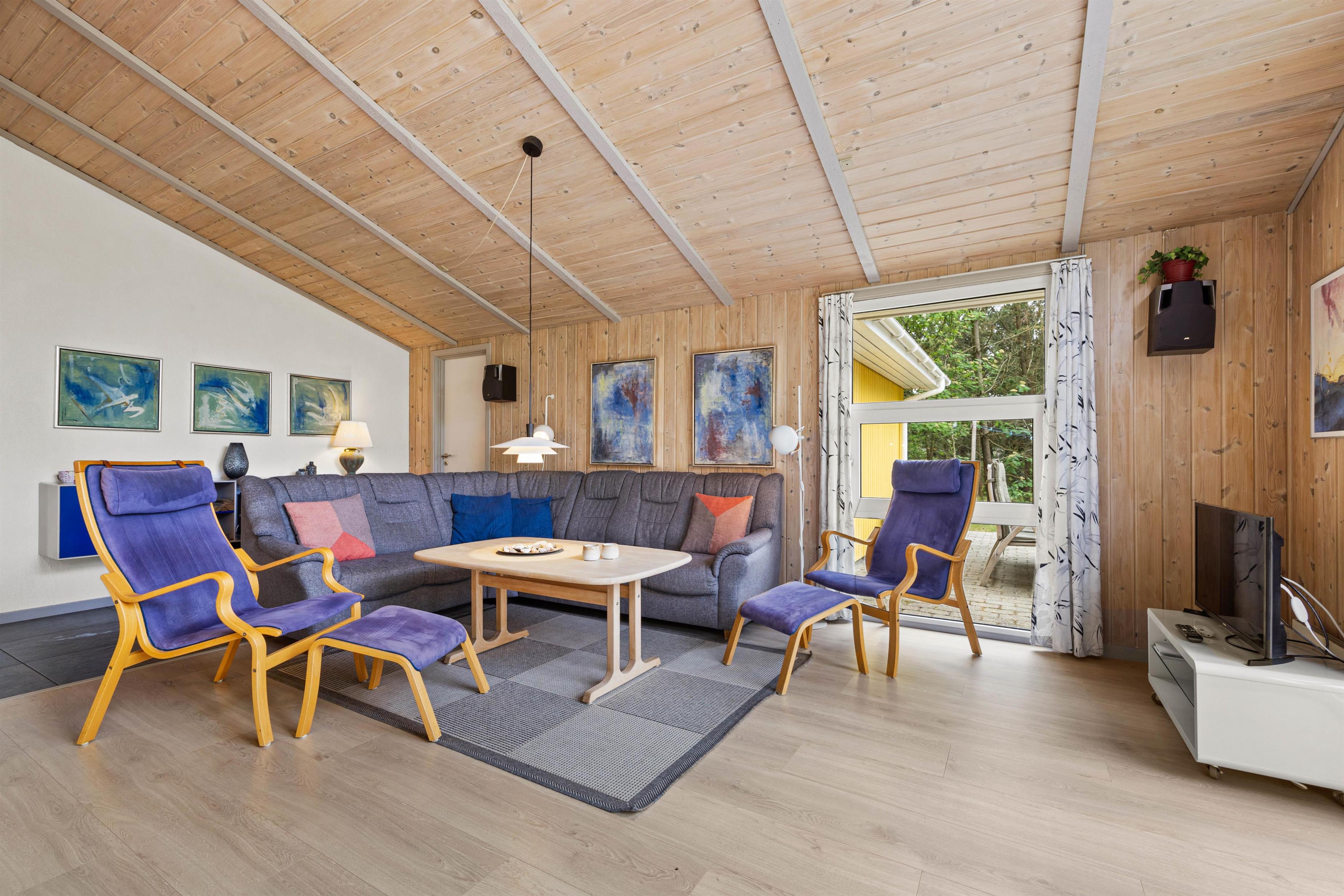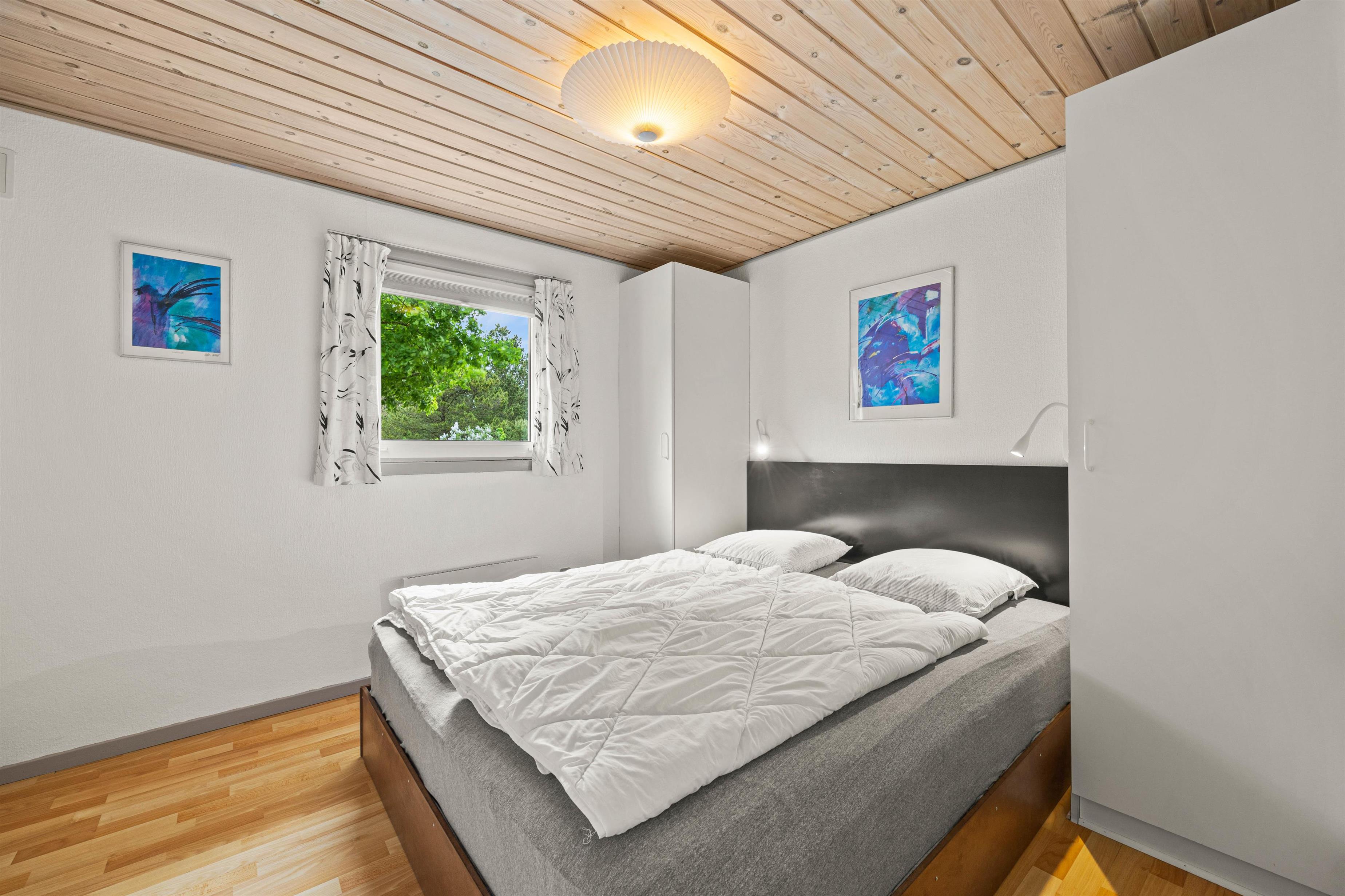 Med plads til op til 6 personer er der rigelig plads til hele familien. Sommerhuset byder på 4 velindrettede soveværelser, så alle kan få en god nats søvn. I kan hygge jer foran den hyggelige brændeovn på kølige aftener eller drage fordel den energibesparende og effektive luft-til-luft varmepumpe, der sikrer et behageligt indeklima året rundt. Det veludstyrede køkken har en opvaskemaskine, der gør oprydningen i køkkenet til en leg, og frigiver tid til at se jeres yndlingsfilm, som I kan streame via Chromecast.